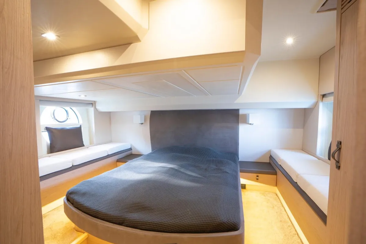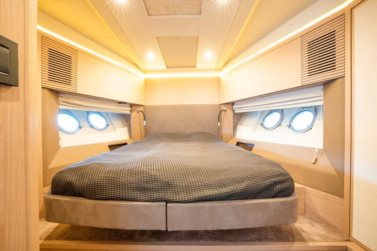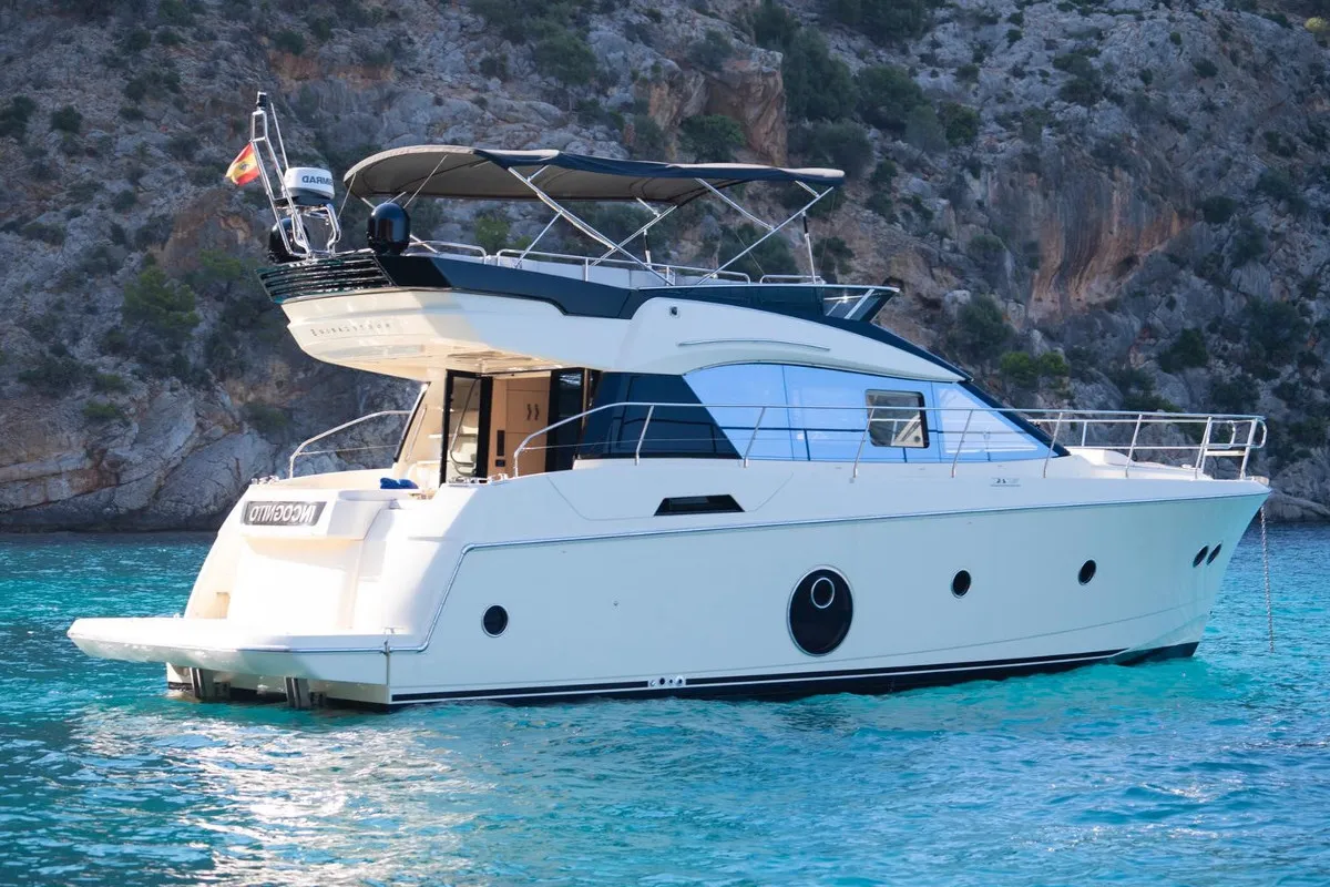 Luxus, pohodlí a výkon se setkávají na palubě Monte Carlo 5 – Incognito. S délkou 15 metrů a elegantním profilem nabízí velkorysý prostor, vytříbený design a špičkové vybavení pro nezapomenutelné dny na vodě. Užijte si prostorný flybridge (s volitelnou Bimini), hydraulickou koupací plošinu a světlý, klimatizovaný salon. Tři stylové kajuty poskytují přenocování až pro 6 osob, zatímco denní plavby jsou ideální pro až 12 hostů. Poháněna dvojicí motorů Volvo (celkem 870 HP), tato jachta zajišťuje hladkou a spolehlivou plavbu. Vybavení zahrnuje dvě koupelny, plně vybavenou kuchyňku, gril, tender, zvukový systém Bose, plochou obrazovku, palubní chladič a generátor – nabízející naprostou svobodu na palubě. Aktuálně se nachází na Mallorce, Incognito je k dispozici jak k pronájmu, tak k prodeji. Ať už sníte o týdnu na moři nebo o vlastní soukromé jachtě, tato Monte Carlo 5 nabízí nadčasový styl, chytré inženýrství a čistou relaxaci.