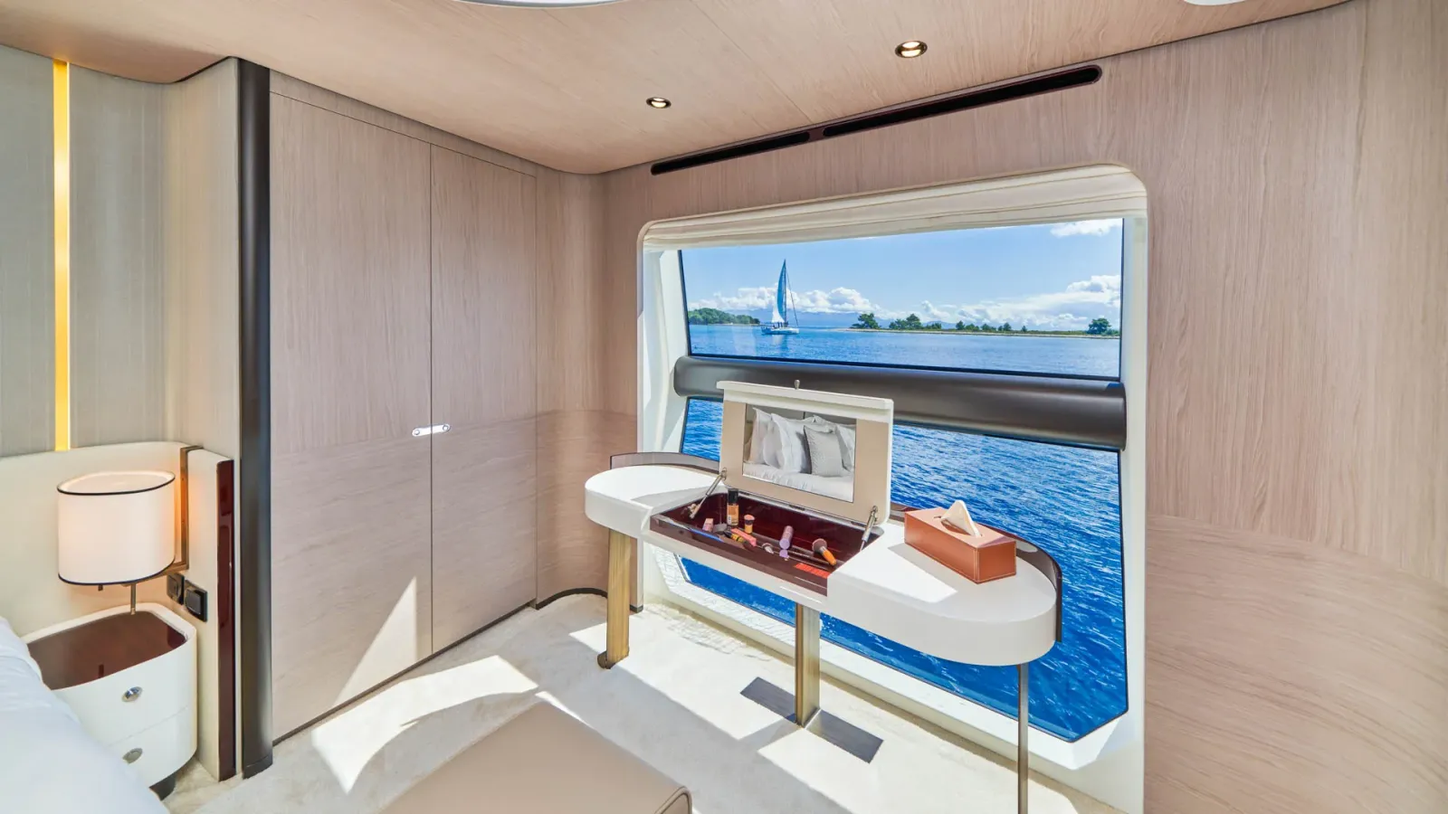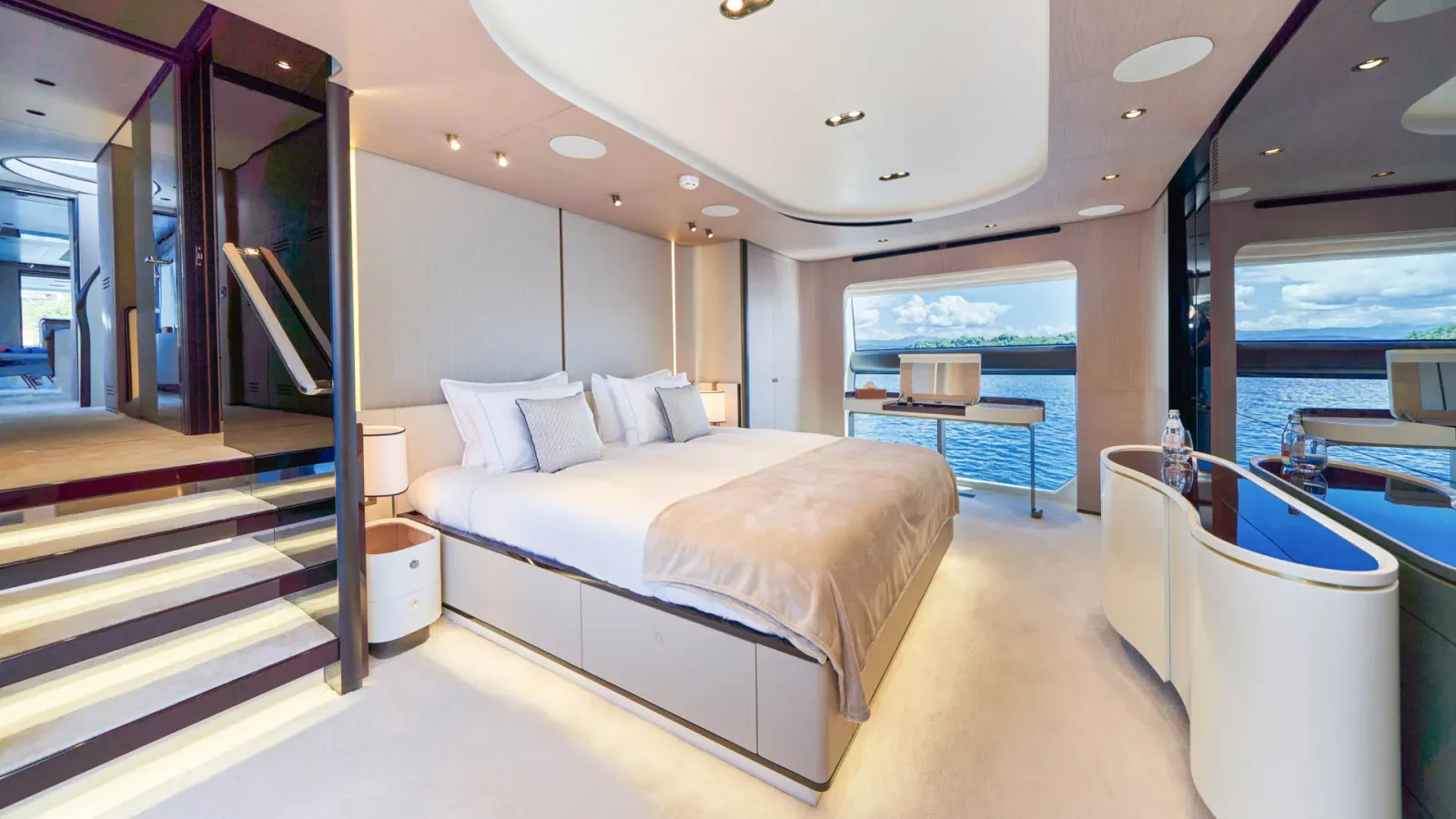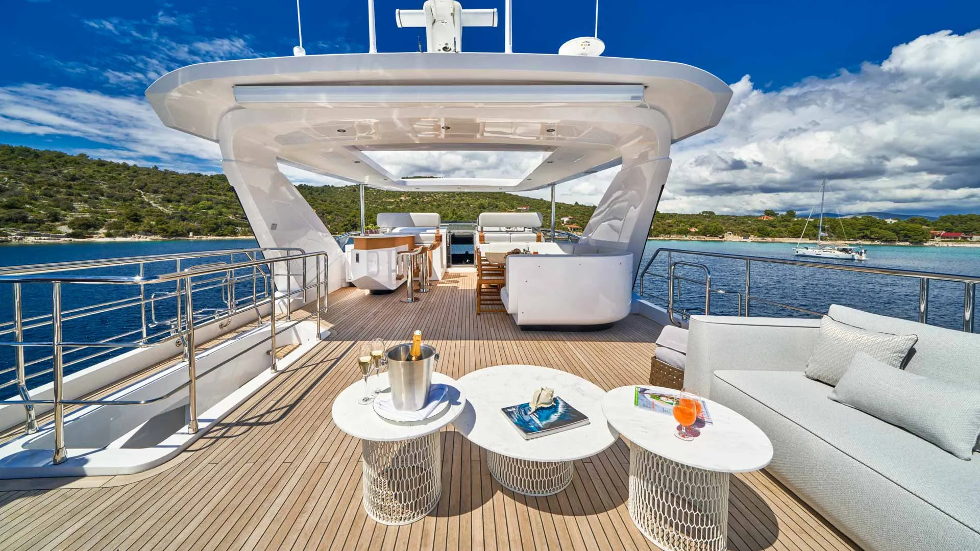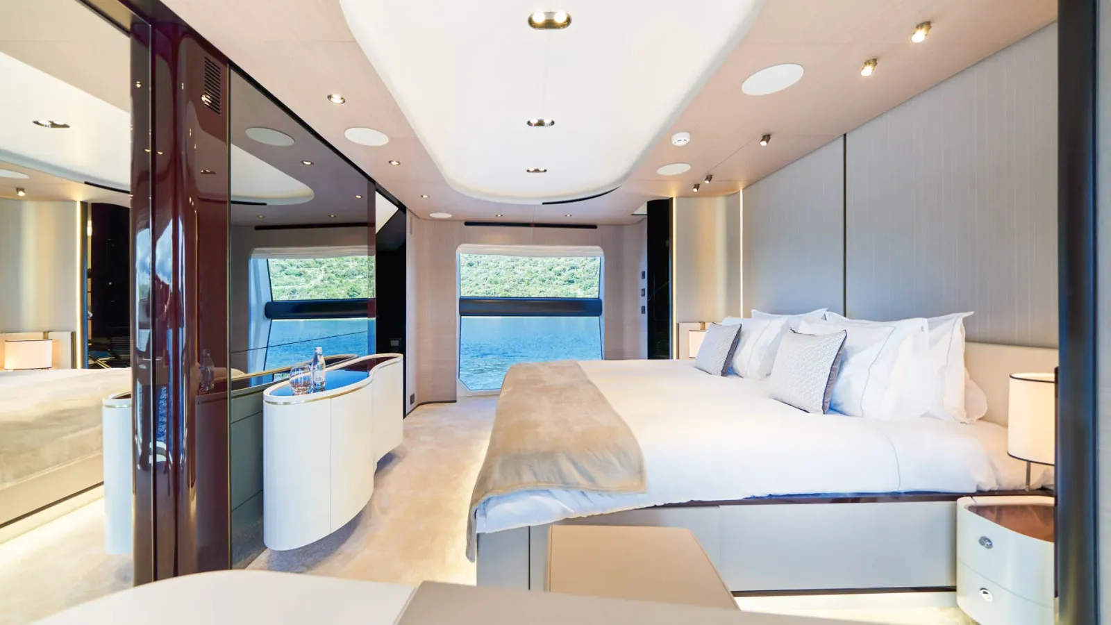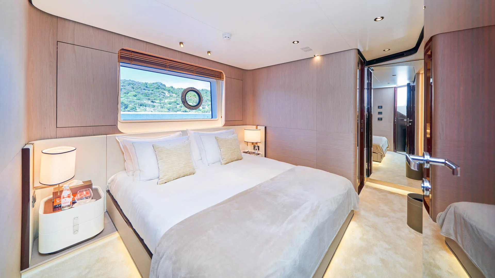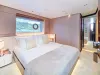 Dieses wegweisende Boot definiert die Umgebung neu, indem es den Raum optimal nutzt und die Eignersuite auf dem Hauptdeck sowie vier Gästekabinen darunter einführt. Die Yacht bietet Platz für 10 Gäste in 5 Kabinen.
