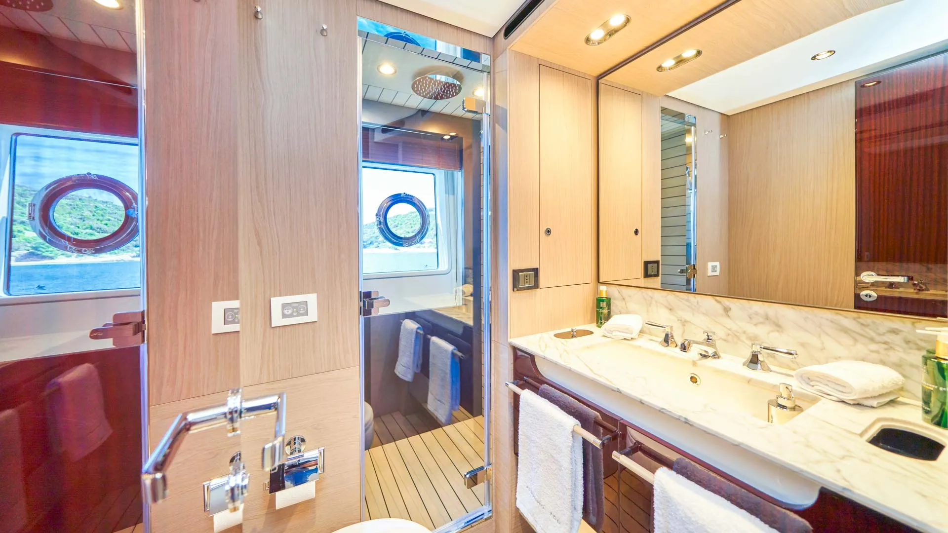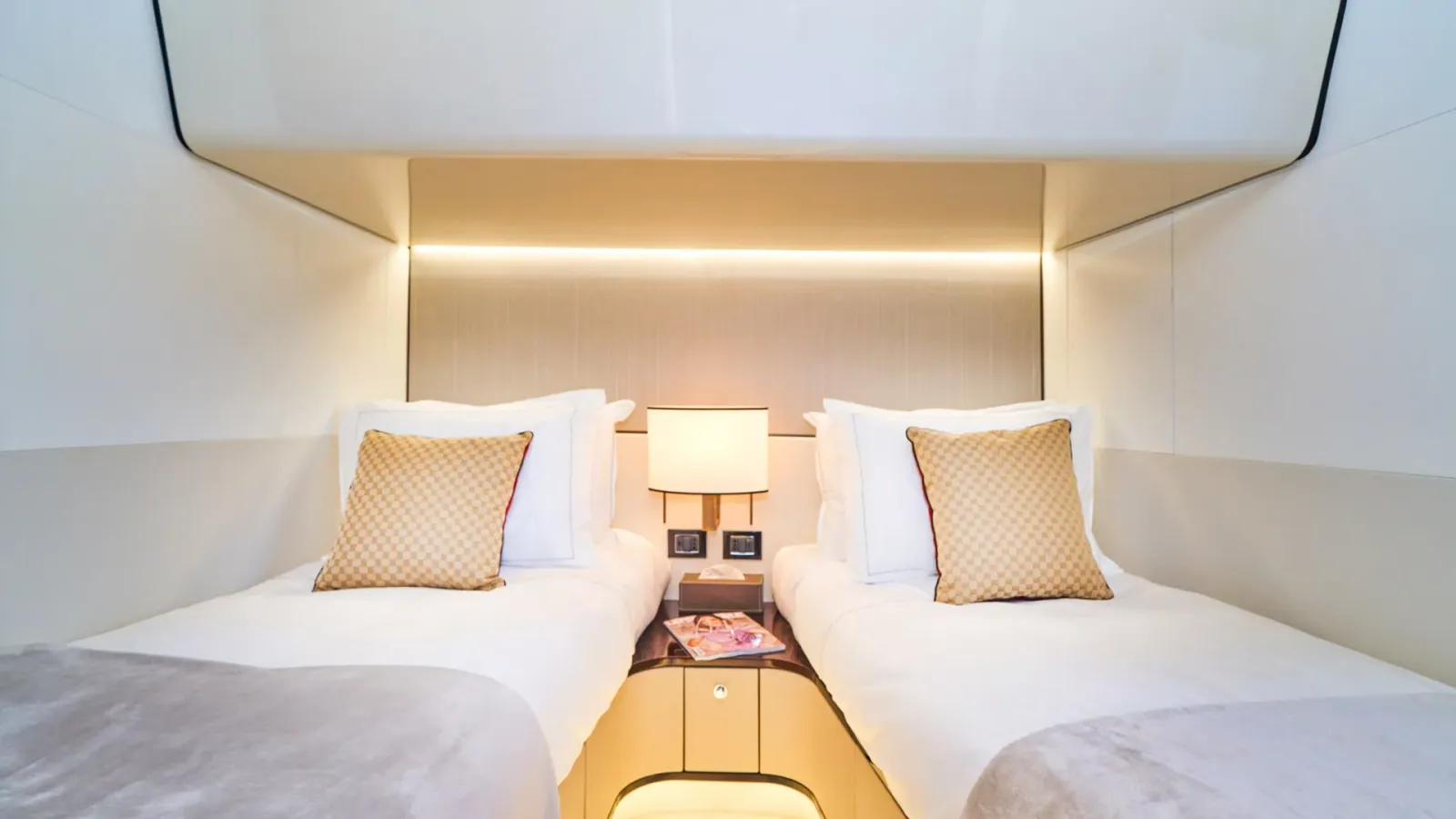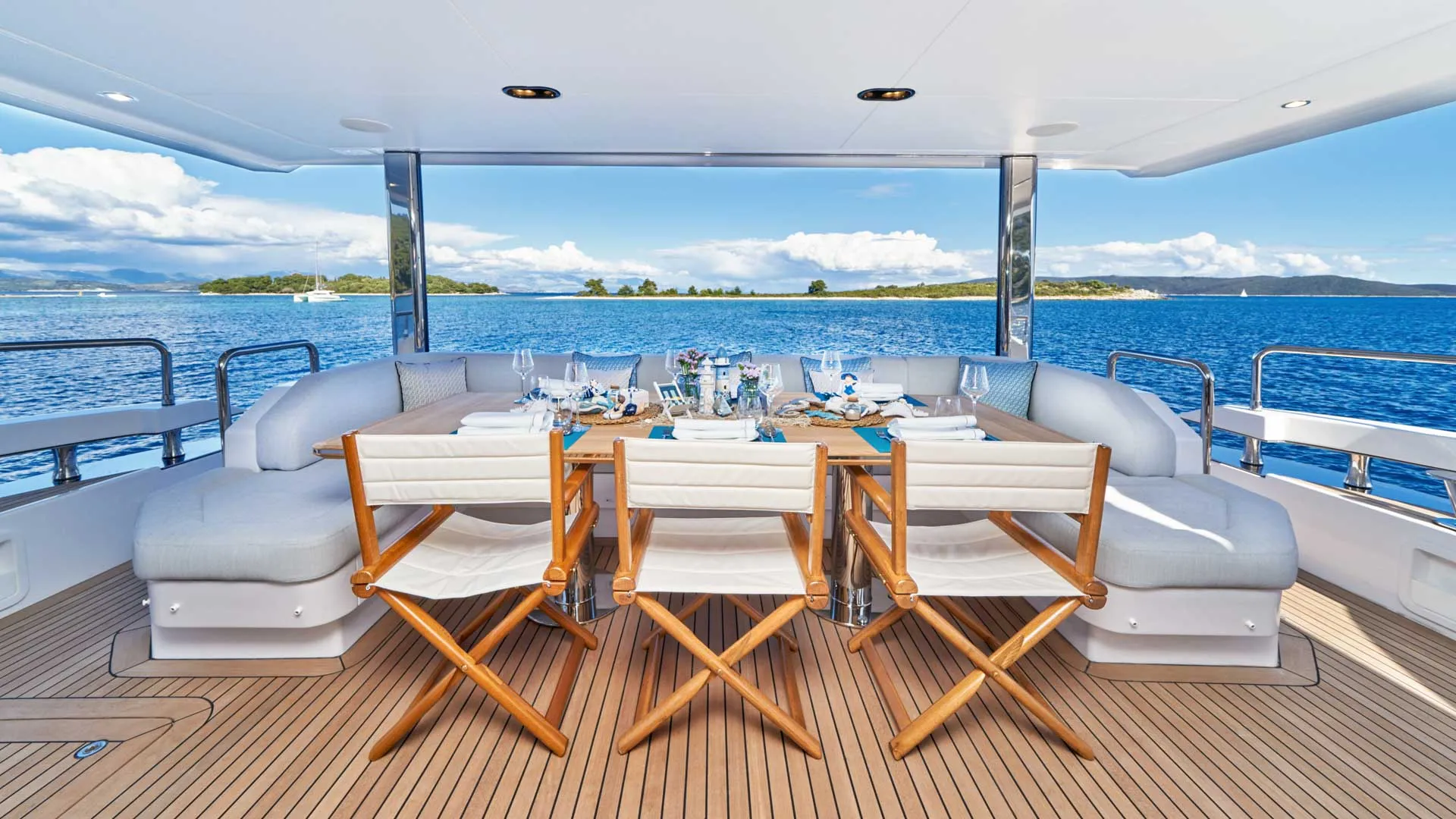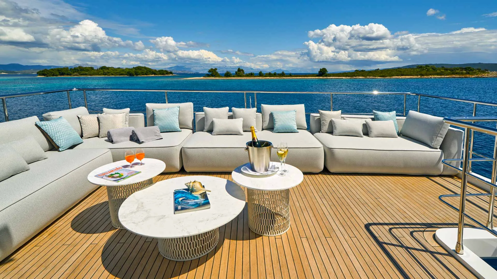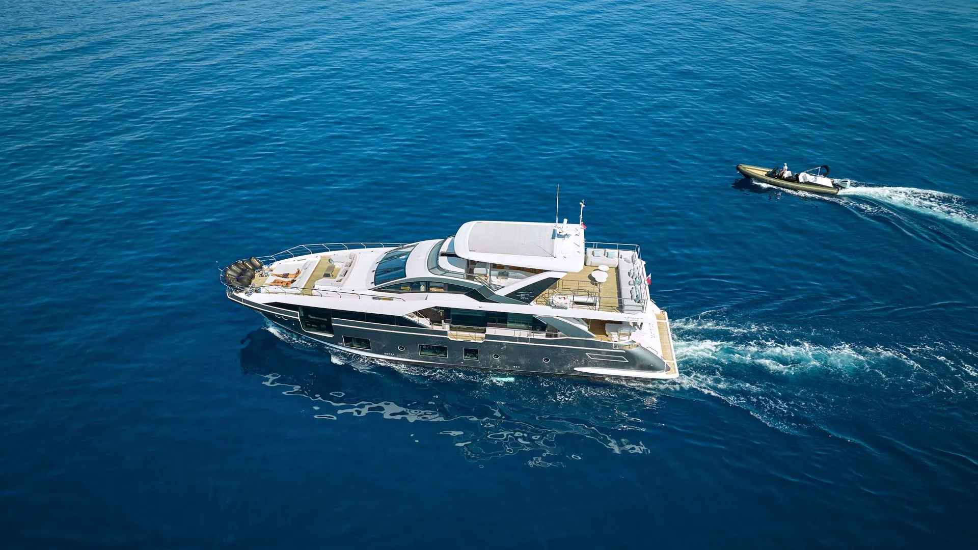 Dieses wegweisende Boot definiert die Umgebung neu, indem es den Raum optimal nutzt und die Eignersuite auf dem Hauptdeck sowie vier Gästekabinen darunter einführt. Die Yacht bietet Platz für 10 Gäste in 5 Kabinen.