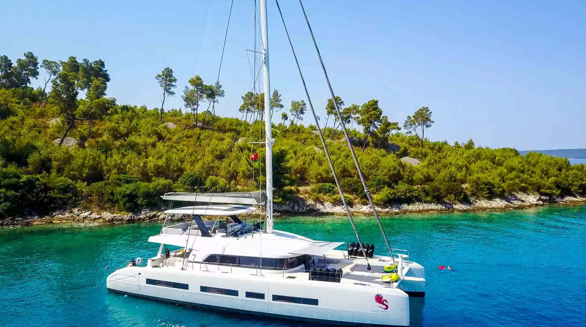 Der Luxuskatamaran Lagoon Seventy 7 stellt ein bahnbrechendes Konzept im Bereich der Superyachten dar. Während er die charakteristische Großzügigkeit und Wärme beibehält, die mit Lagoon Katamaranen verbunden sind, führt diese Yacht eine neue Dimension von Luxus und Raffinesse ein. 2019 vom Stapel gelaufen und von einer Crew aus vier engagierten Fachleuten – einem Kapitän, einer Stewardess, einem Koch und einem Decksmann – professionell verwaltet, bietet die Lagoon Seventy 7 eine Vielzahl von Annehmlichkeiten, die ein unvergleichliches Erlebnis an Bord gewährleisten.