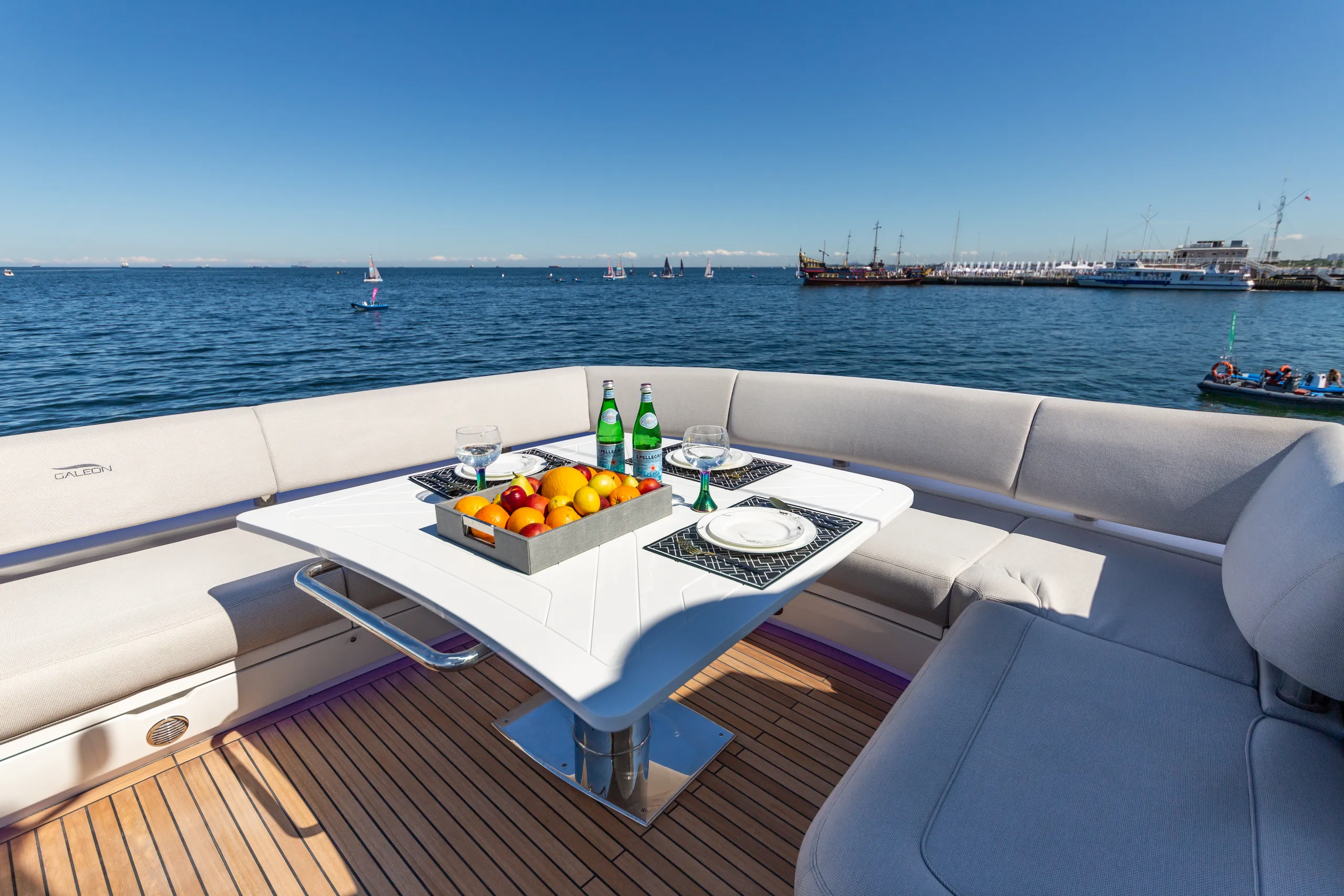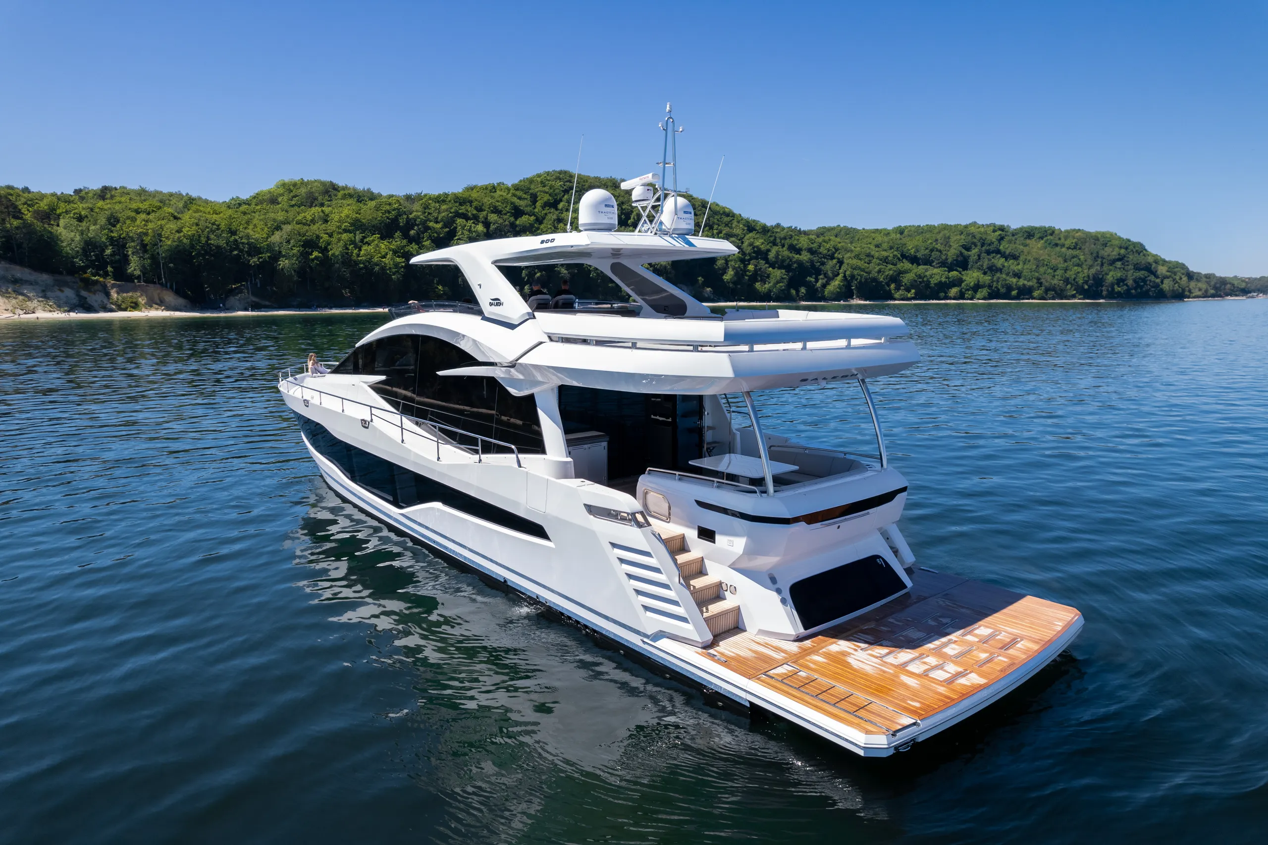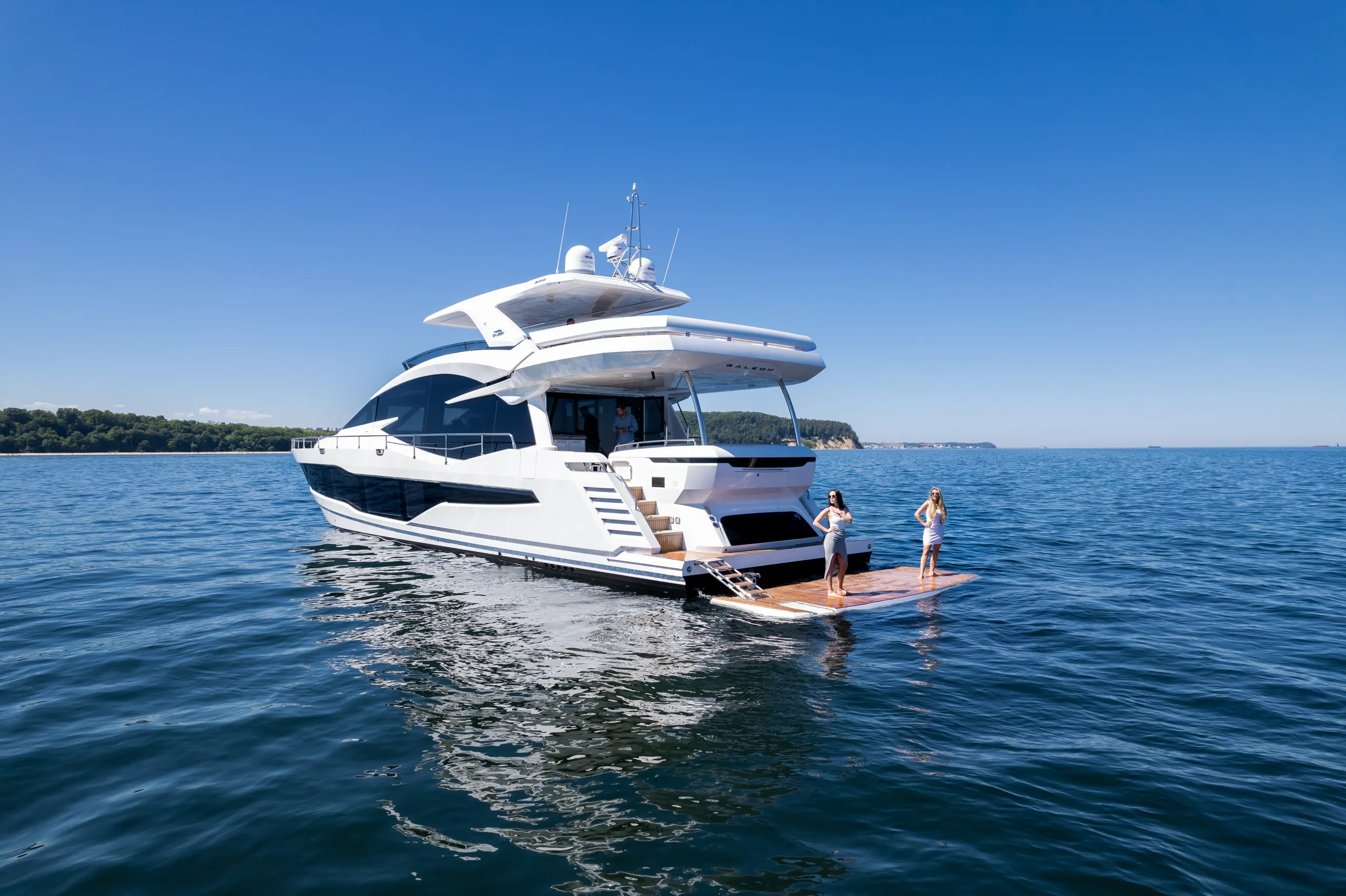 Dank jahrzehntelanger Erfahrung, die in unserem Unternehmen von Generation zu Generation weitergegeben wurde, haben wir die Galeon 800 FLY geschaffen, die eine sportliche Silhouette und beeindruckende Leistung mit einem Gefühl von Raum und Luxus verbindet, das zuvor nur Megayachten vorbehalten war. Das subtile Design, das auf den ersten Blick auffällt und sich in sanften Linien und abgerundeten Strukturelementen ausdrückt, verdanken wir den unvergleichlichen Designmeistern von Tony Castro. Darüber hinaus sorgen die fortschrittliche Navigationselektronik und die neuesten Technologien, die auf dieser Yacht der vierten Generation verwendet werden, für die Sicherheit und den Komfort aller Passagiere.