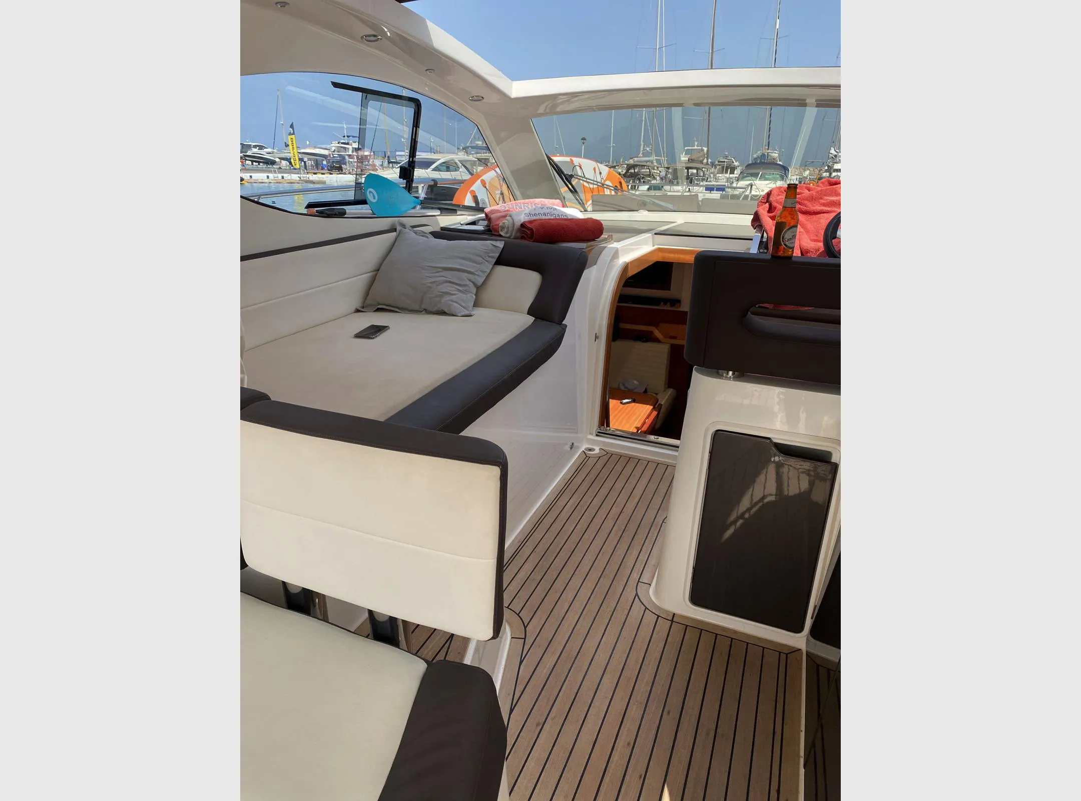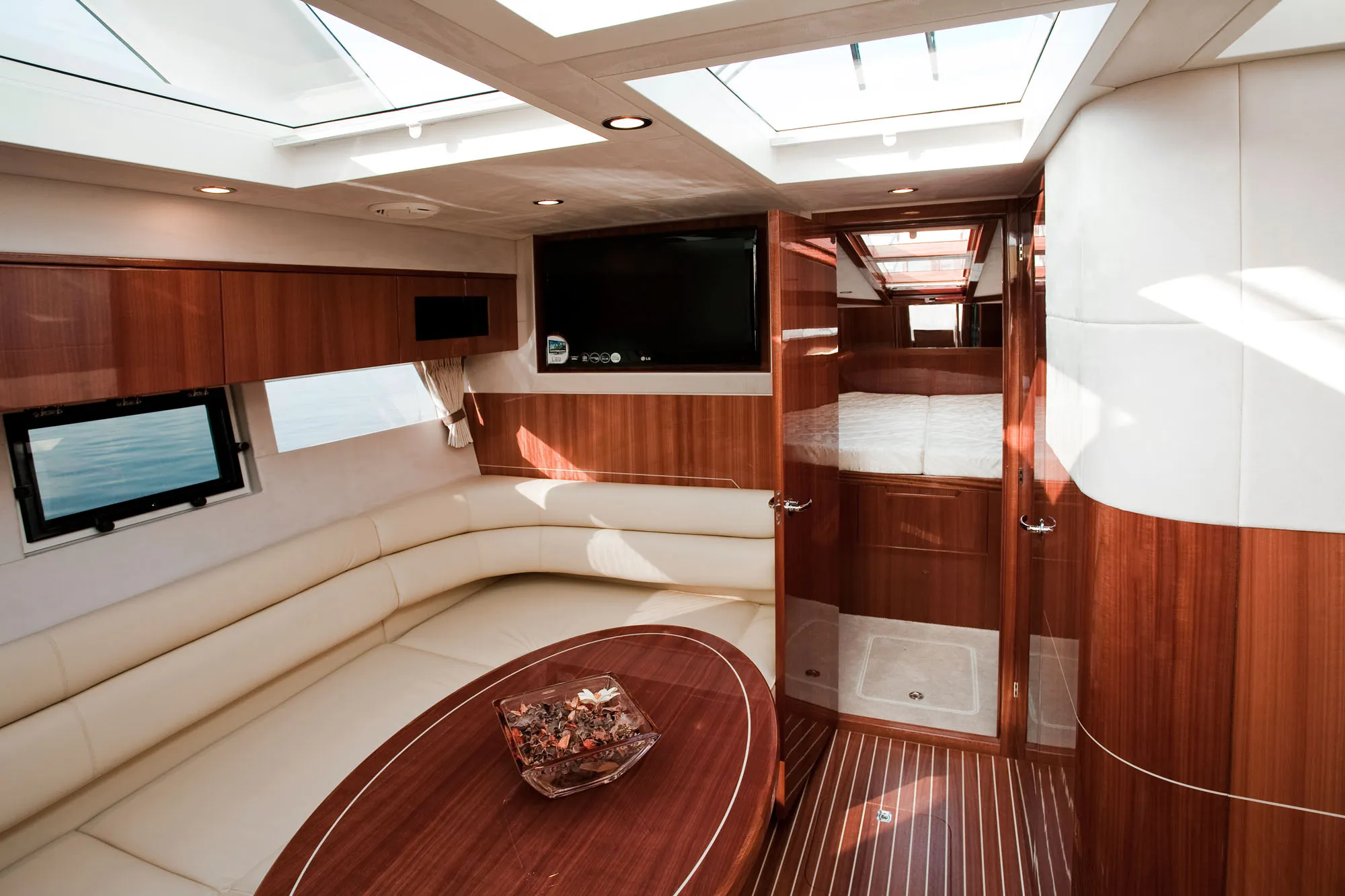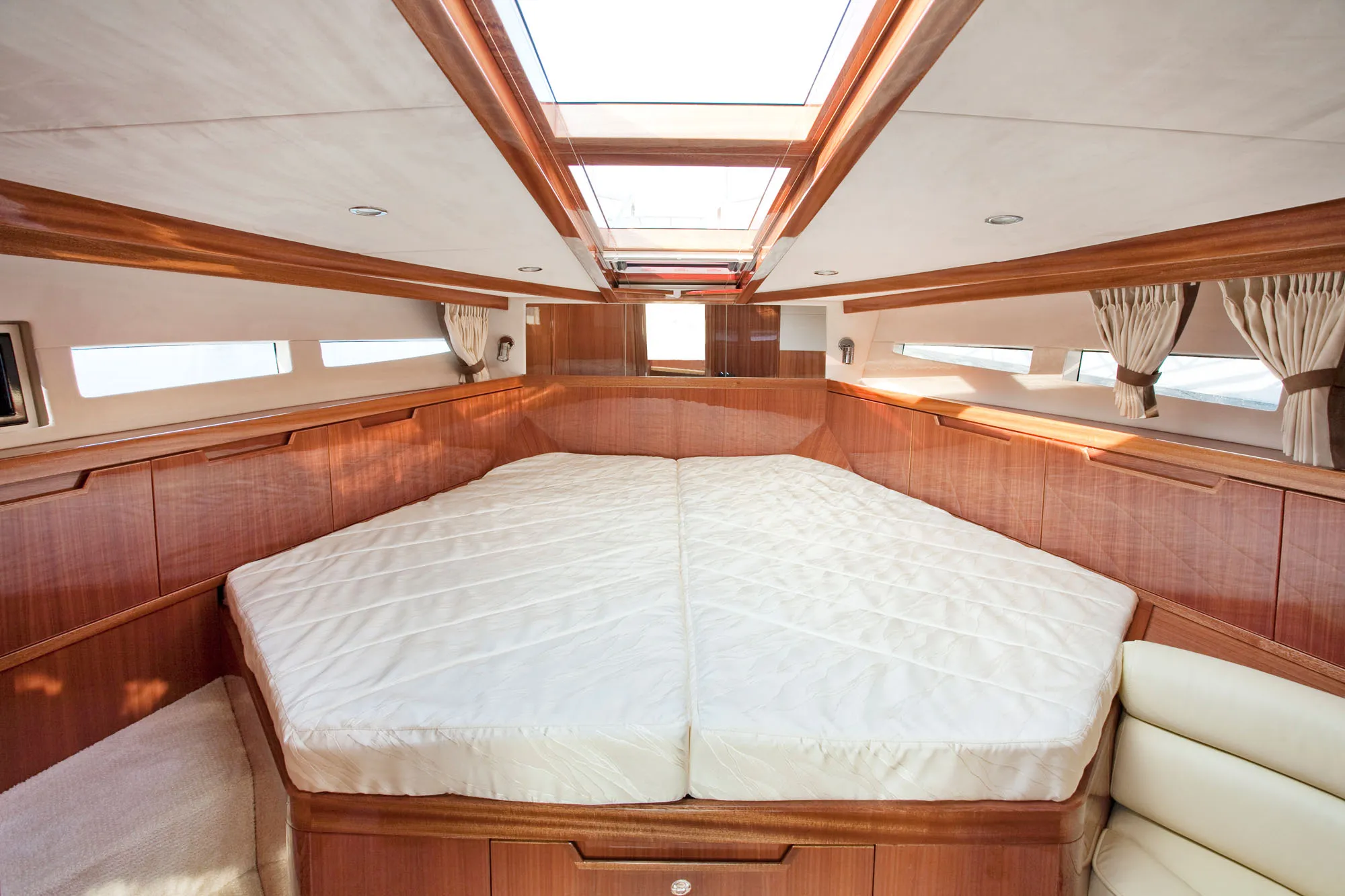 Mit Standardausstattung basierend auf dem Modelljahr 2011 und zusätzlichen Optionen: Joystick Cummins, Bugstrahlruder, Neue Kissen und Sonnenliegen, Neue elektrische Toiletten, Neues Fusion Stereo-System und Lautsprecher, Neue Jalousien und Teppiche, Raymarine Kartenplotter mit Autopilot und VHF, Raymarine Radar, Webasto Heizung, Victron 3000A Wechselrichter, Fernseher im Salon, Fernseher in beiden Kabinen, Trim Tab, Elektrischer Grill im Cockpit, Keramikteller in der Küche, Elektrische Ankerwinde, Cockpitabdeckung, Cockpitdusche, Erweiterte Badeplattform.</p>
