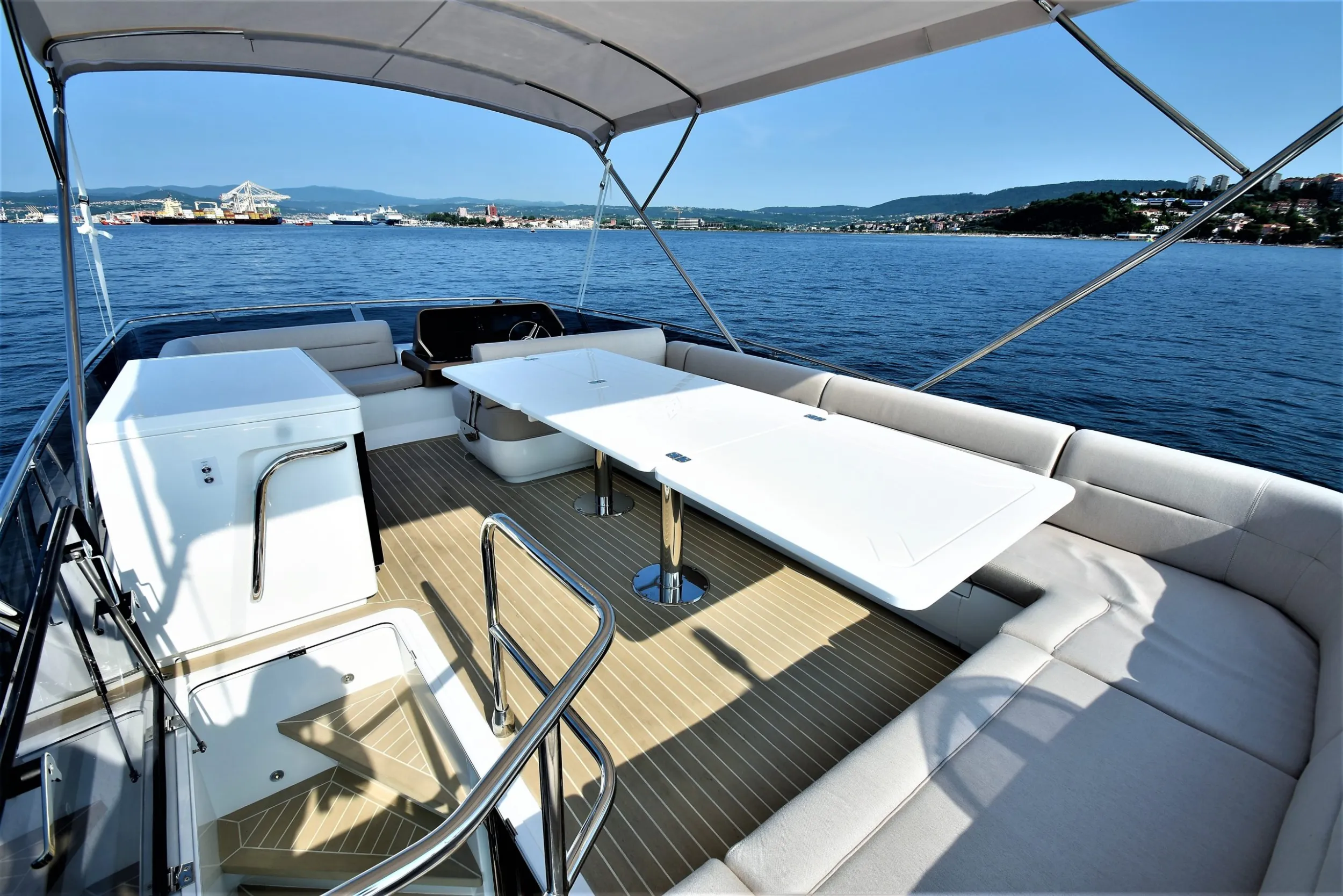 Der Preis beinhaltet die Bootskomplettierung (Bootsmontage, Flybridge-Montage, Motorservice vor der Auslieferung)