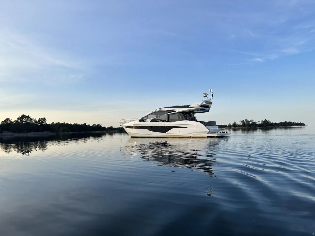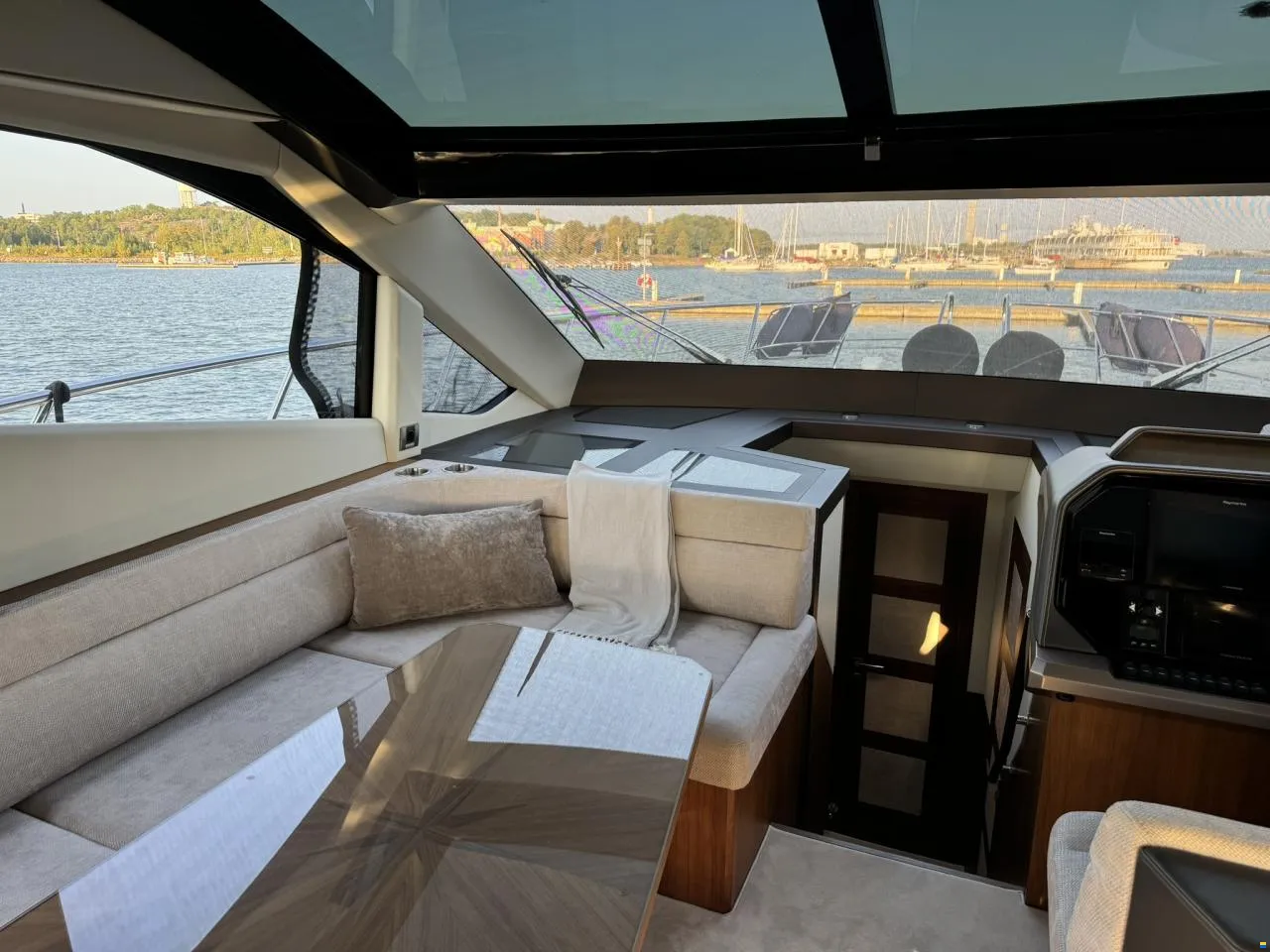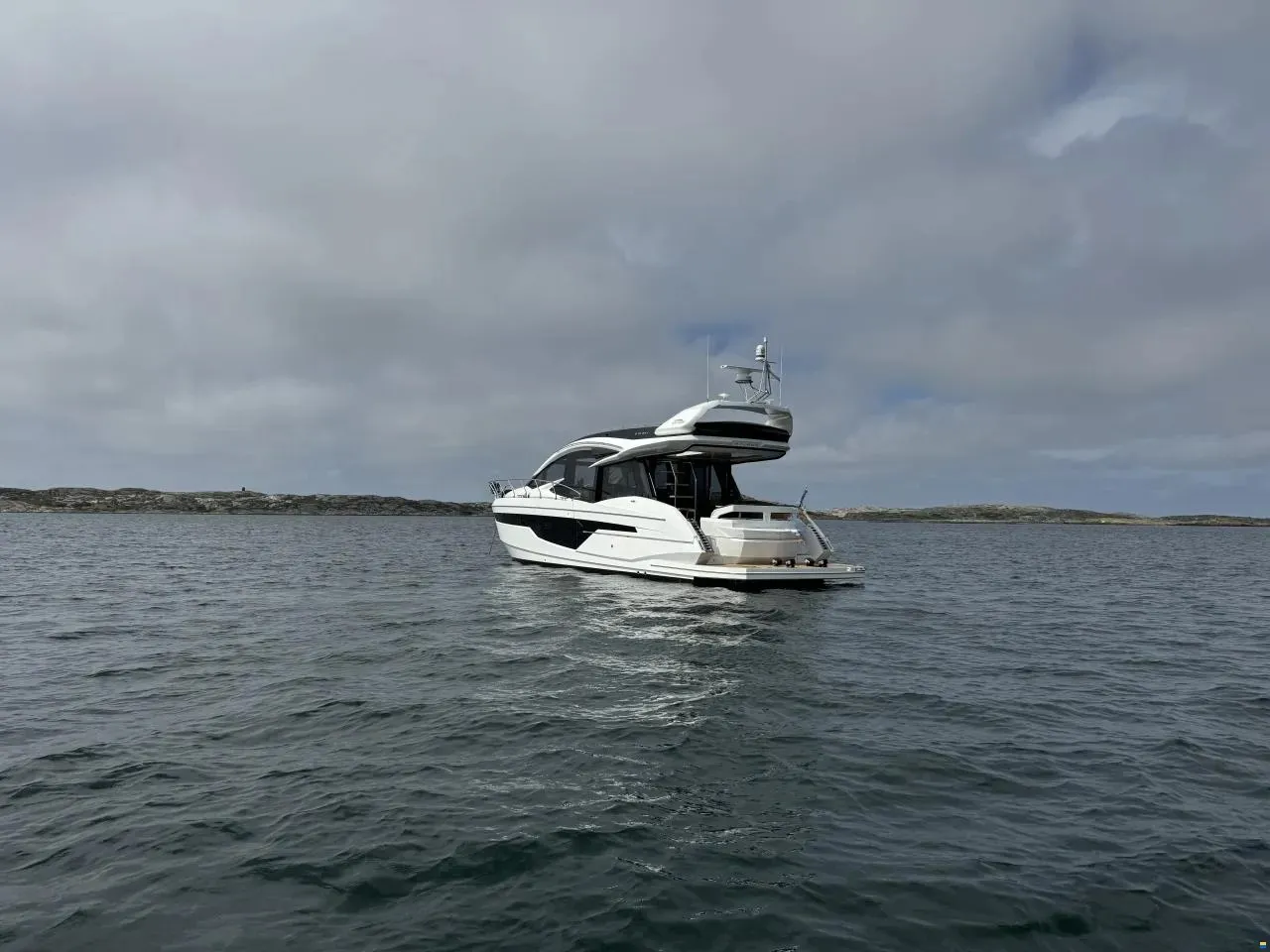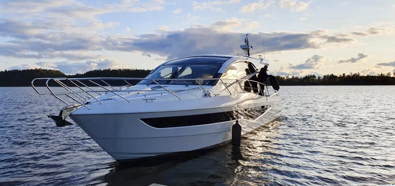 Hier haben Sie die Gelegenheit, ein Boot in absolut neuwertigem Zustand mit voller Ausstattung zu erwerben. Der Eigentümer hat sich pedantisch um das Boot gekümmert. Das Boot verfügt über ein Skydeck (kleiner Flybridge), das mit einem elektrischen Sonnendach ausgestattet ist. Wenn Sie drinnen sitzen und fahren, können Sie ein großes Dachfenster elektrisch öffnen. So erleben Sie gleichzeitig das Gefühl von drinnen und draußen. Oben auf dem Skydeck, wo Sie auch sitzen und fahren können, gibt es Sitzgruppen für 12 Personen. Wenn es anfängt zu regnen, drücken Sie einfach einen Knopf und schließen das gesamte Skydeck. So praktisch für schwedische Verhältnisse.
