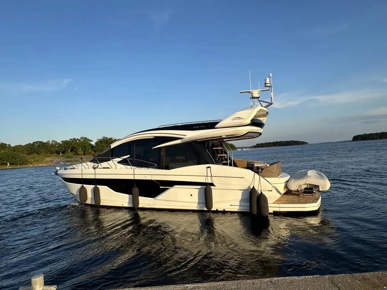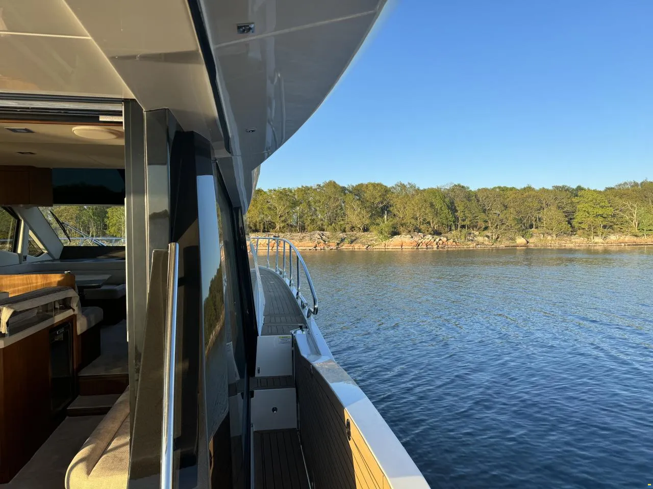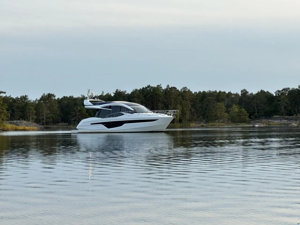 Hier haben Sie die Gelegenheit, ein Boot in absolut neuwertigem Zustand mit voller Ausstattung zu erwerben. Der Eigentümer hat sich pedantisch um das Boot gekümmert. Das Boot verfügt über ein Skydeck (kleiner Flybridge), das mit einem elektrischen Sonnendach ausgestattet ist. Wenn Sie drinnen sitzen und fahren, können Sie ein großes Dachfenster elektrisch öffnen. So erleben Sie gleichzeitig das Gefühl von drinnen und draußen. Oben auf dem Skydeck, wo Sie auch sitzen und fahren können, gibt es Sitzgruppen für 12 Personen. Wenn es anfängt zu regnen, drücken Sie einfach einen Knopf und schließen das gesamte Skydeck. So praktisch für schwedische Verhältnisse.