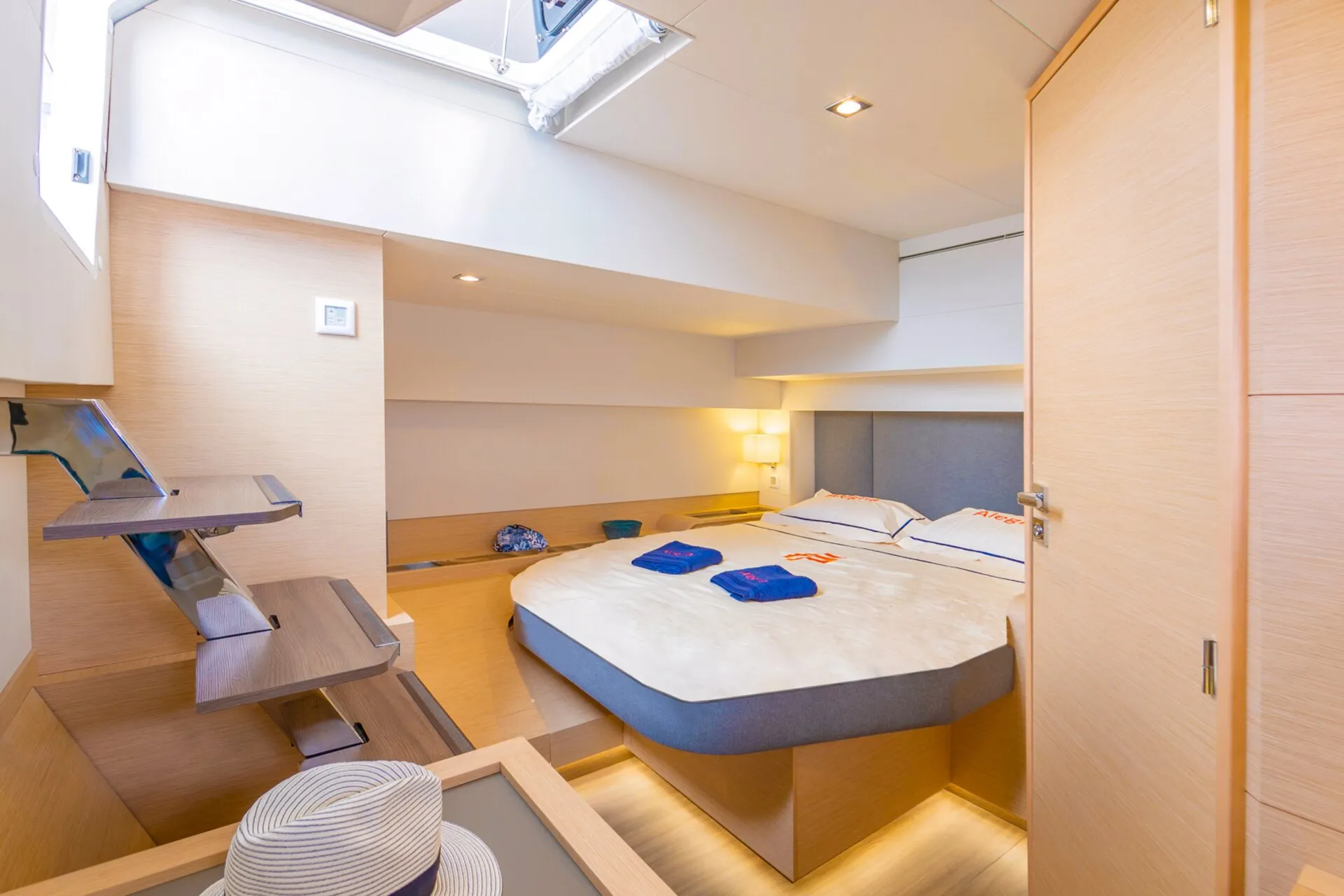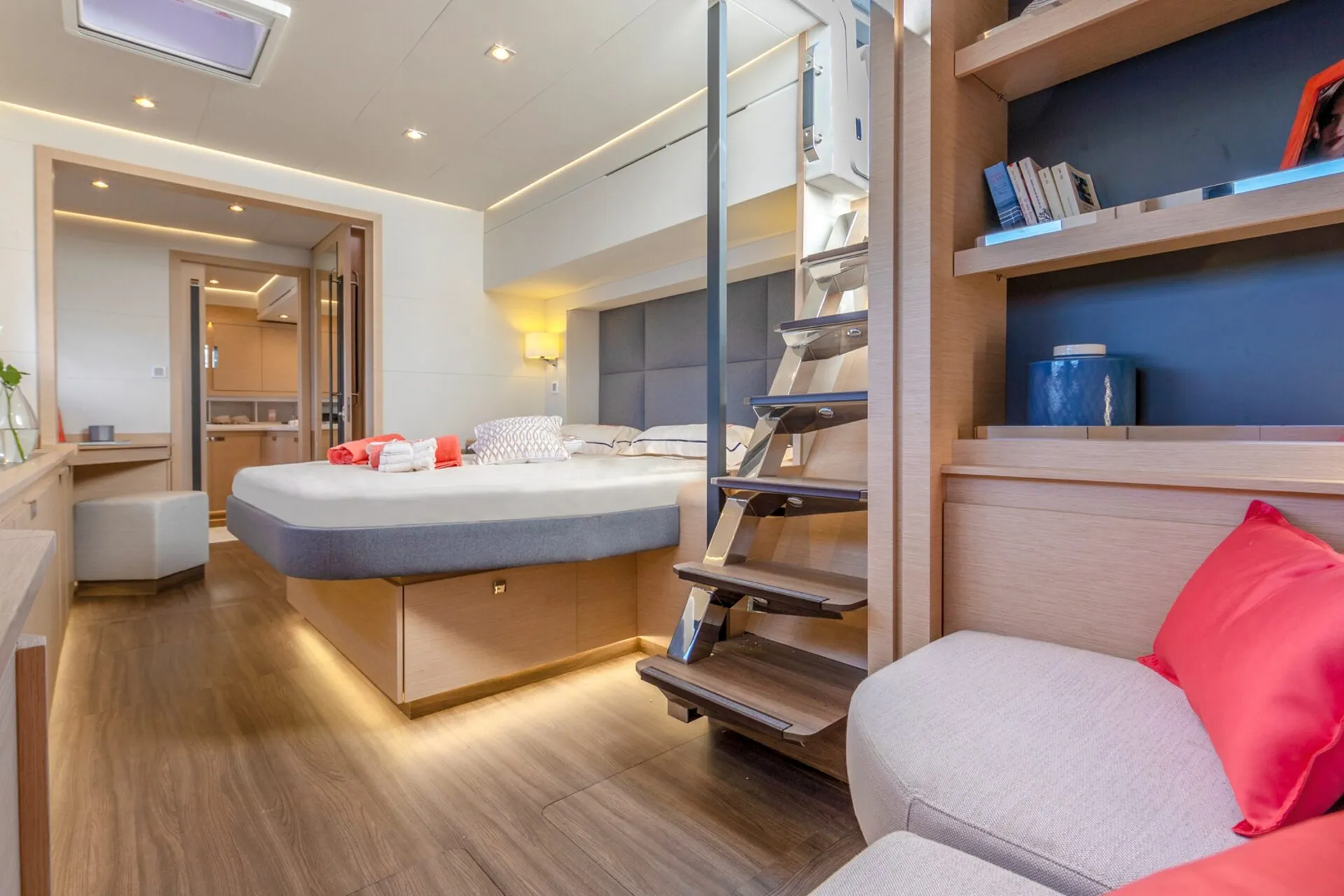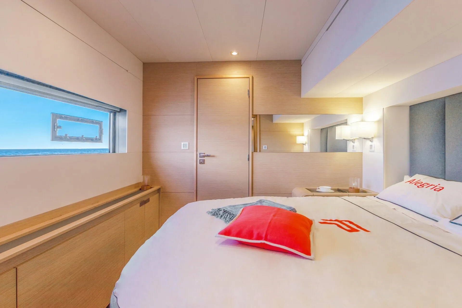 El interior del FP67 Alegria ofrece una mezcla perfecta de elegancia y comodidad, creando una atmósfera refinada pero relajante. La destacada suite principal y las tres elegantes cabinas dobles cuentan con camas tamaño queen y baños privados en suite, asegurando privacidad y lujo para cada huésped. Con distribuciones espaciosas y comodidades modernas en todo el yate, se ofrece una experiencia a bordo verdaderamente de 5 estrellas.