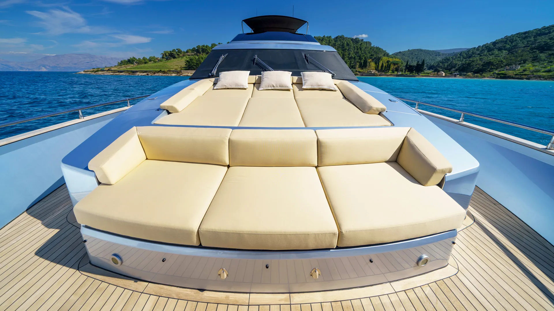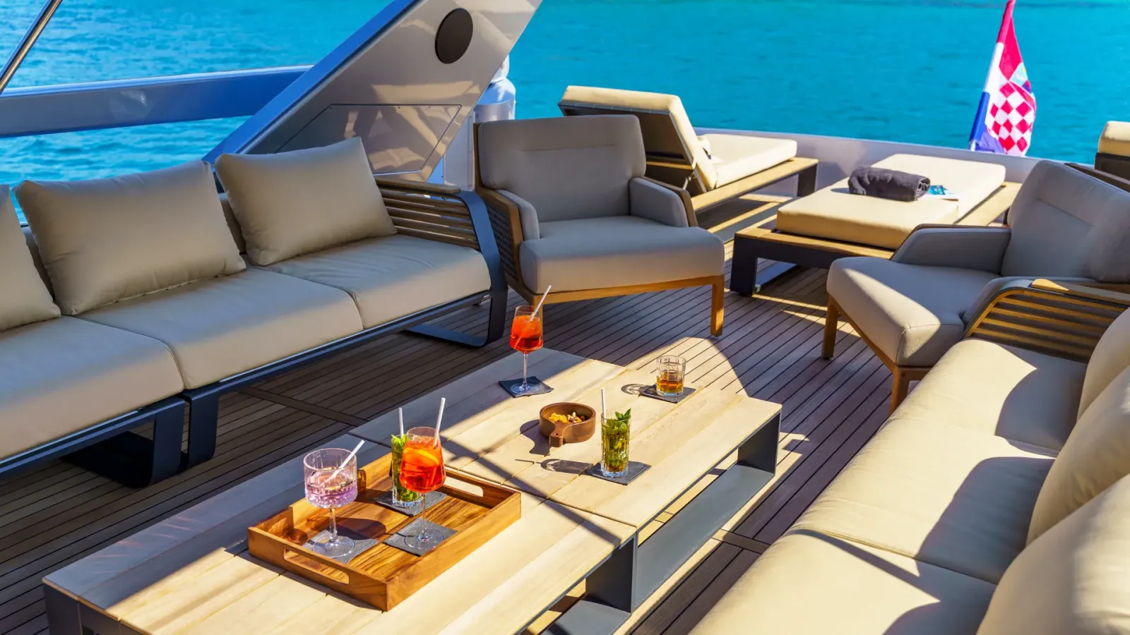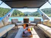 - FLYBRIDGE: Amplio flybridge con área de salón y solárium, espaciosa área de solárium en la proa y cabina de popa