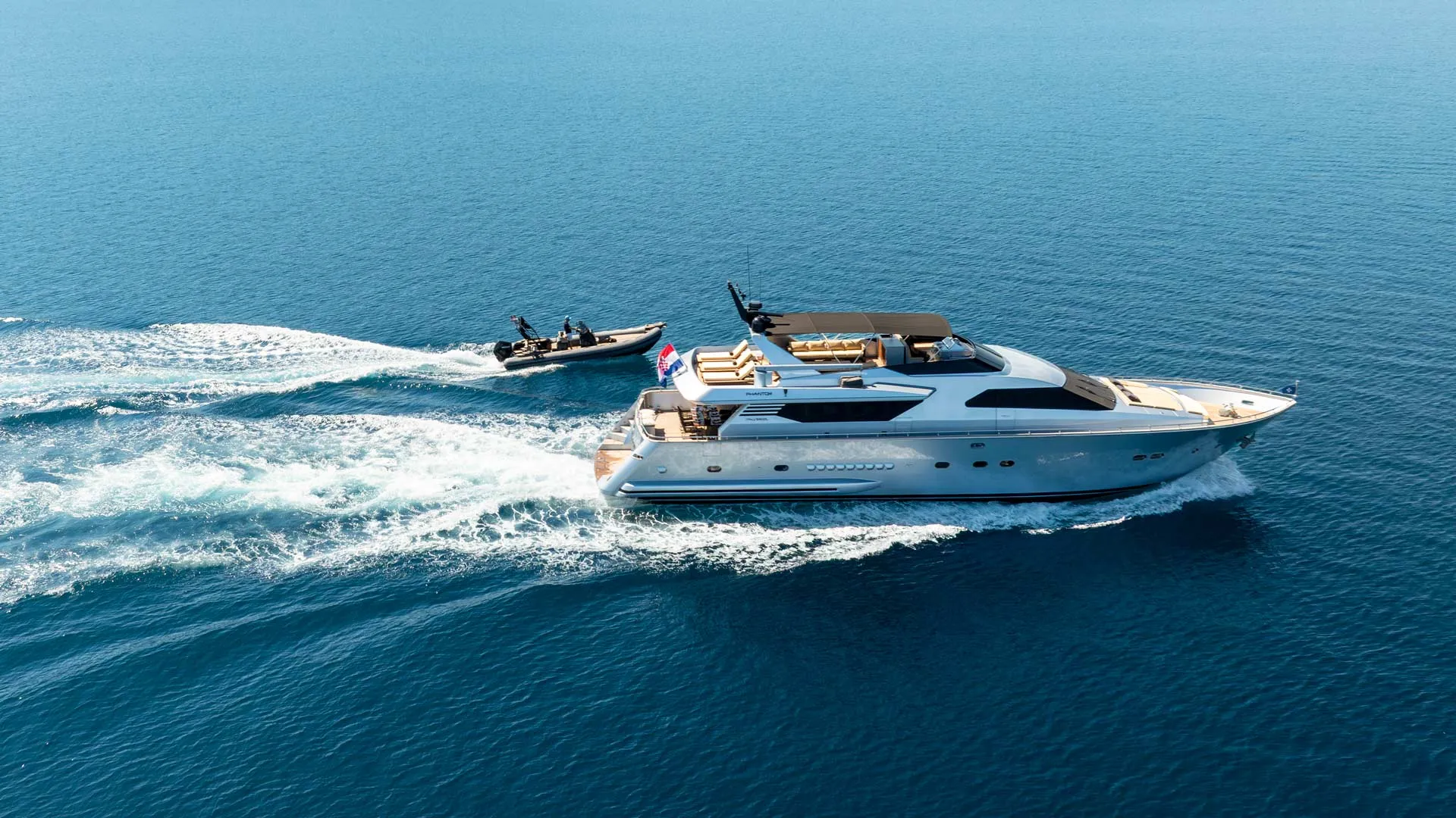 El yate Phantom, una impresionante embarcación que no solo encarna la opulencia, sino que también ofrece una emocionante experiencia en el mar. Phantom es un yate elegante y lujoso que destila sofisticación. Este magnífico yate cuenta con interiores espaciosos y elegantes y exteriores de arquitectura naval afilada, ofreciendo un estilo de vida al más puro estilo James Bond en el agua. Con una eslora de 85 pies, es perfecto para una navegación íntima explorando calas escondidas e islas majestuosas de Croacia, todo con el excelente apoyo de una tripulación profesional lista para consentirte, incluyendo un talentoso Chef privado.