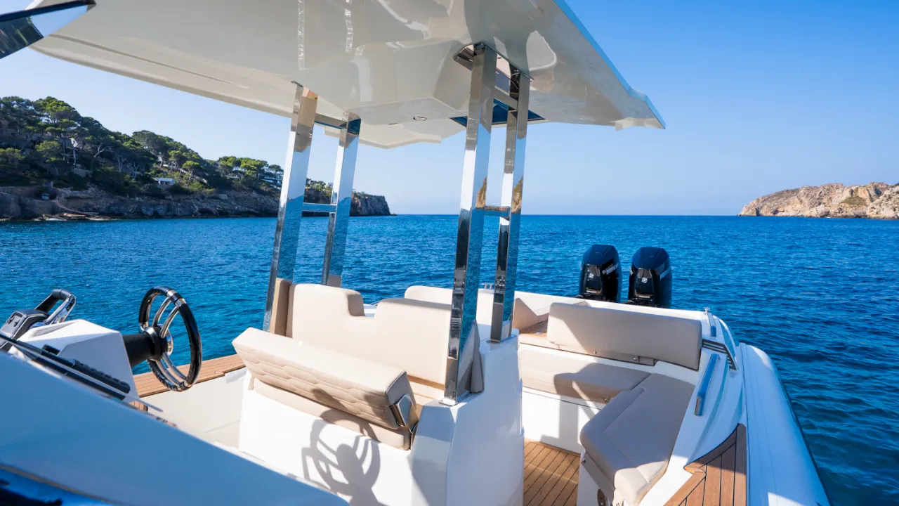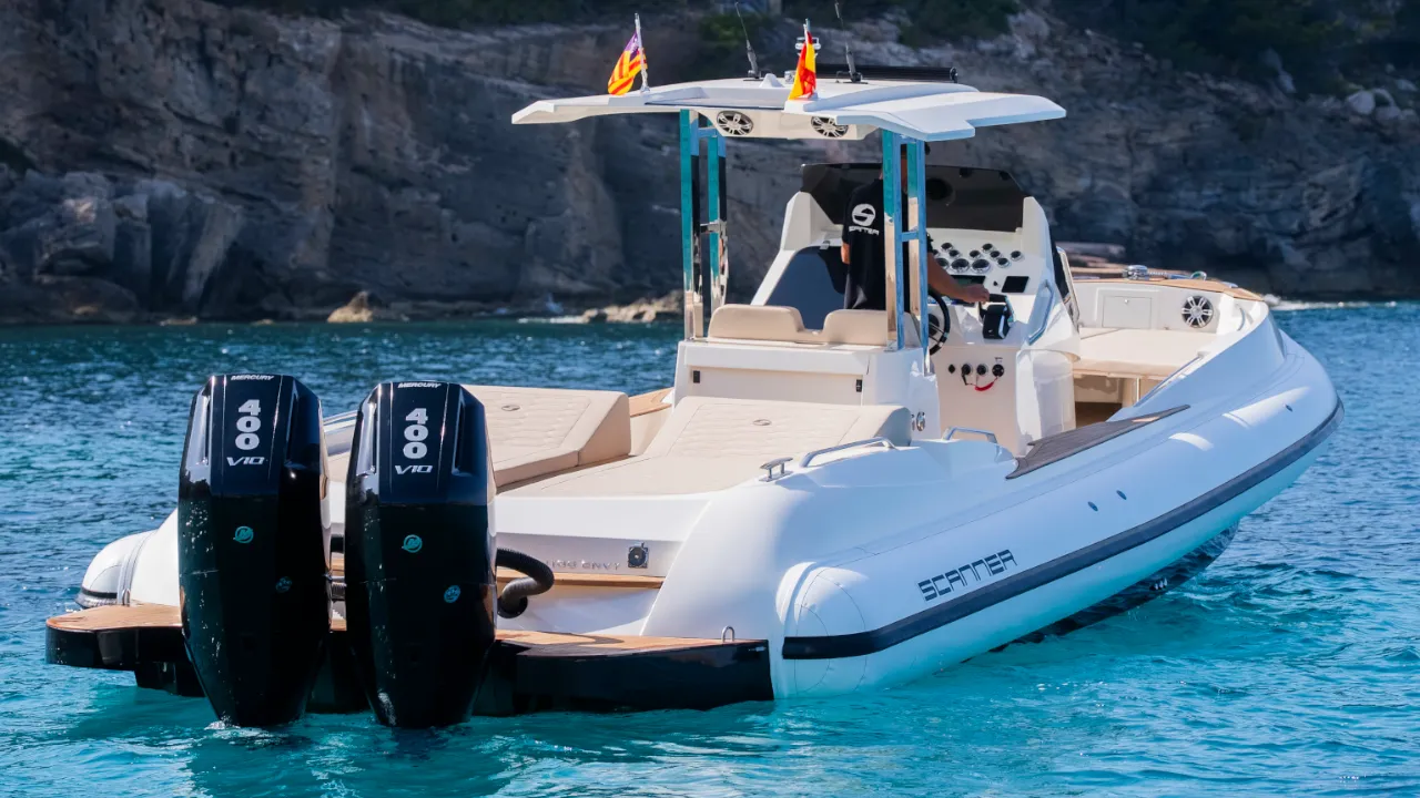 El Scanner ENVY 1100, modelo del año 2025, redefine la elegancia deportiva en el agua. Fabricado en Italia y diseñado con precisión, este RIB (Bote Inflable Rígido) premium de 11 metros combina un rendimiento excepcional con lujo, ofreciendo una experiencia tan emocionante como refinada. Con sus líneas audaces, casco en V profunda y construcción impecable, el ENVY 1100 ofrece un manejo superior, incluso en condiciones marítimas exigentes. Ya sea que busques recorridos costeros a alta velocidad, un día relajado en anclaje, o un elegante auxiliar para un yate más grande, este barco responde a cada llamada con estilo sin esfuerzo. El diseño inteligente de la cubierta presenta generosas áreas para tomar el sol en la proa y popa, un refinado salón comedor y un bar húmedo totalmente integrado, creando un espacio ideal para entretenerse o relajarse. Bajo cubierta, el Scanner ENVY 1100 sorprende con una cabina espaciosa, litera doble y baño privado, proporcionando el confort justo para estancias nocturnas o descansos tranquilos durante el día. Ya sea utilizado como un lujoso crucero de día o como un potente y versátil auxiliar, esta embarcación está diseñada para aquellos que exigen más de su tiempo en el agua. Ahora disponible para visitas privadas en Mallorca – contáctanos para un folleto detallado o más información.