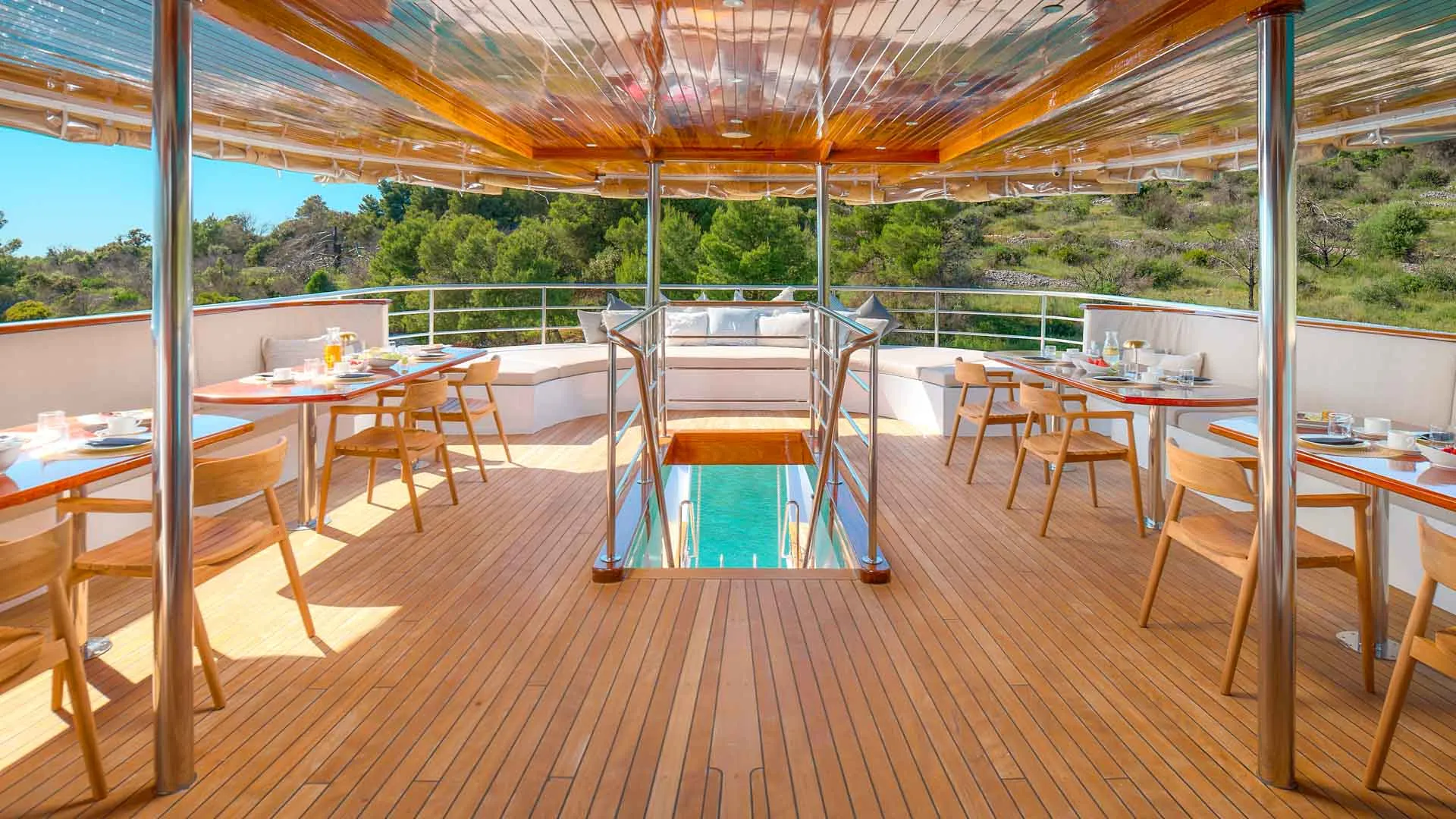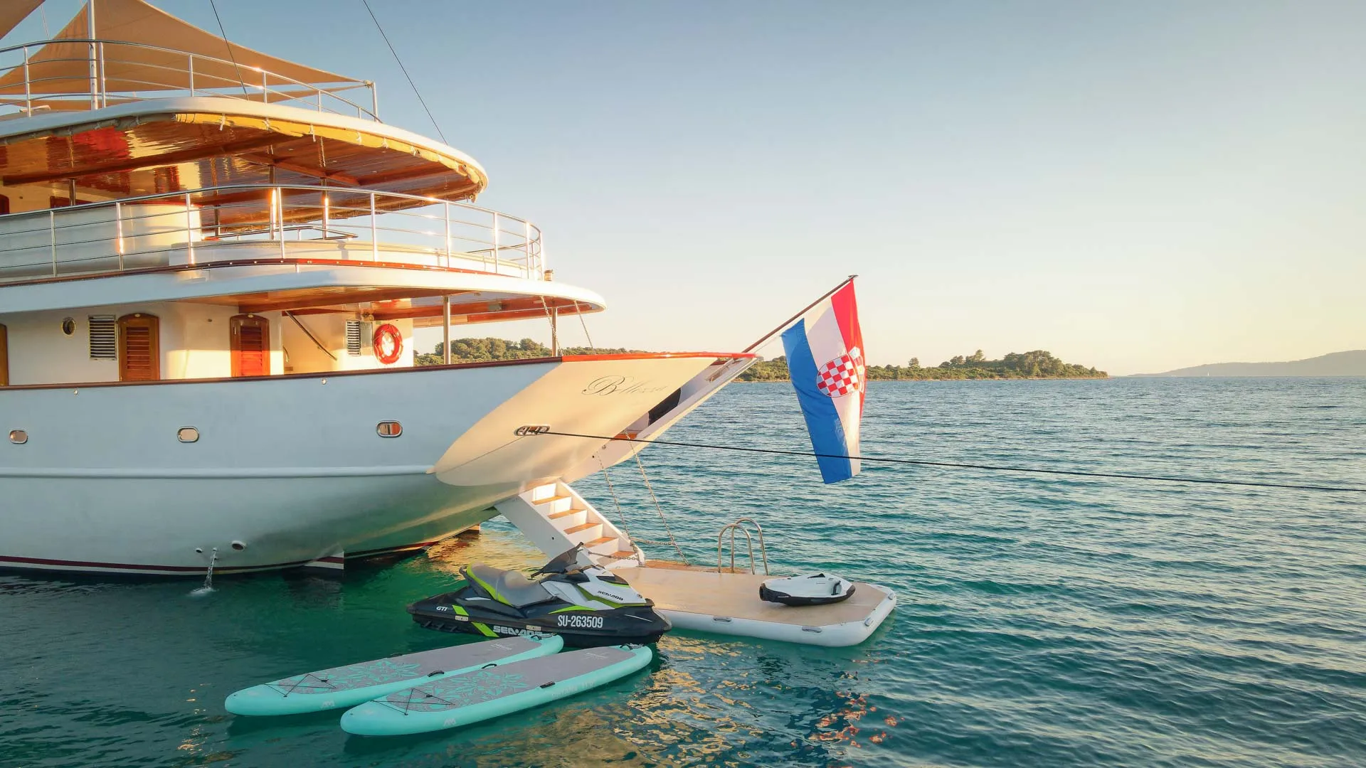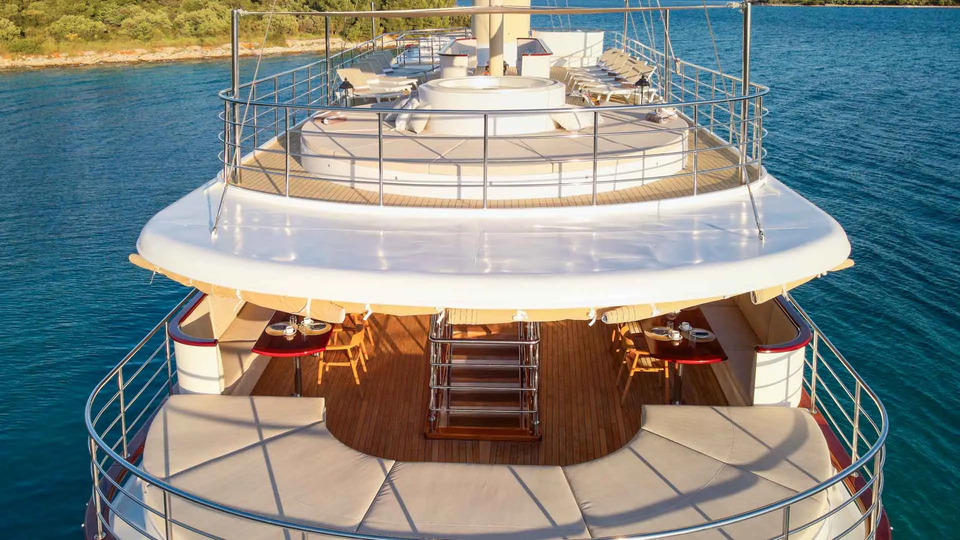 Il lussuoso cruiser Bellezza affascina con la sua estetica senza tempo in legno e il suo fascino classico, offrendo ampi spazi all’aperto per godere della bellezza delle isole dalmate. Il ponte principale offre aree per prendere il sole e rilassarsi, con spazi ombreggiati perfetti per una pausa rinfrescante con un cocktail in mano. Per la stagione 2024, il ponte superiore presenterà una nuova area lounge e una jacuzzi, aggiungendo fascino allo yacht e invitando gli ospiti a immergersi nell’atmosfera adriatica con stile.