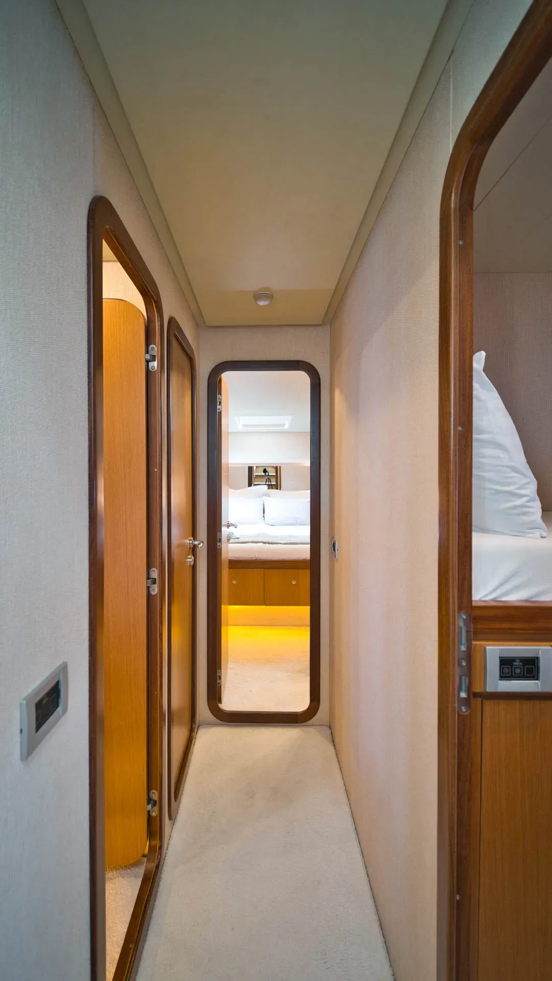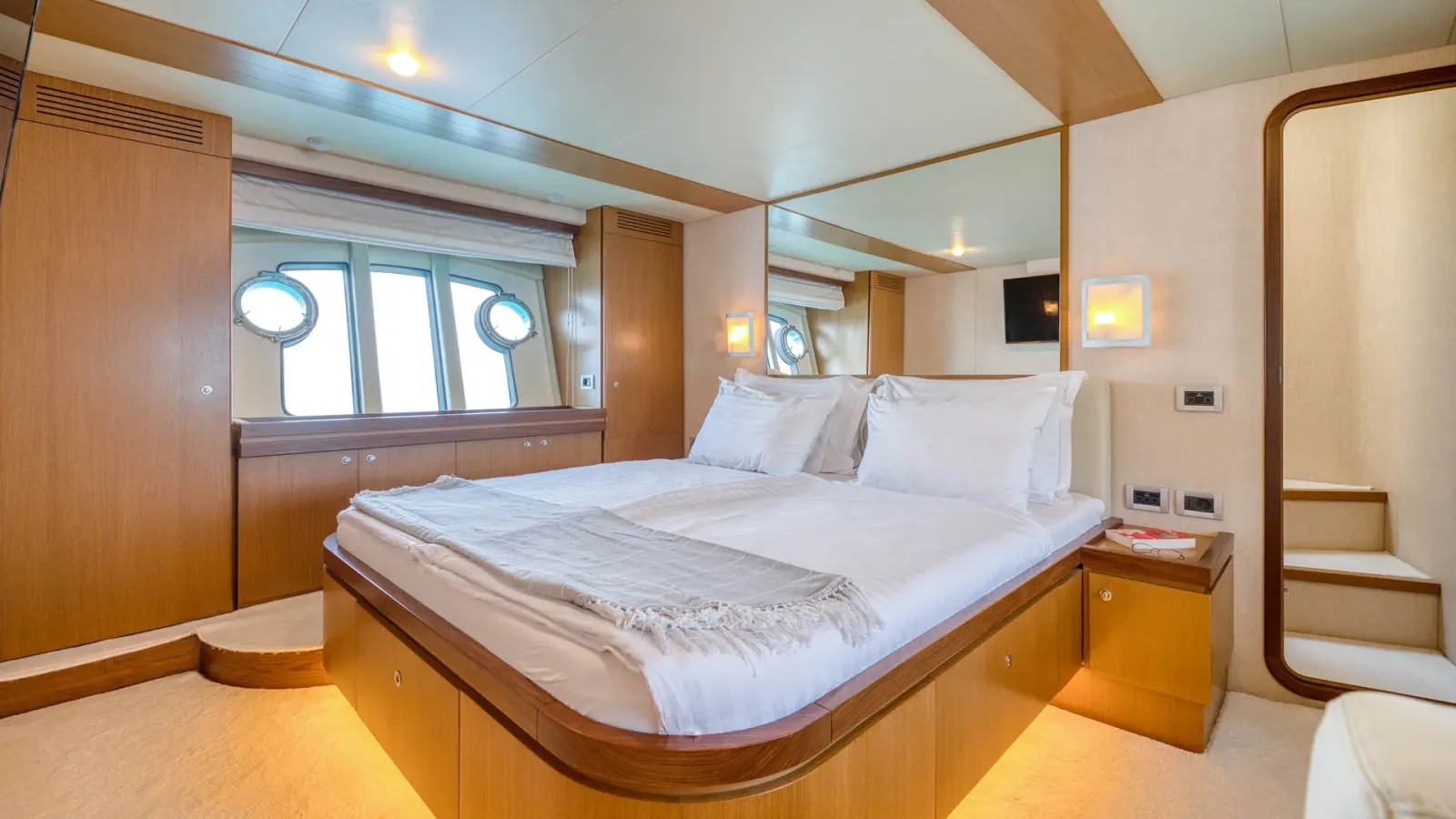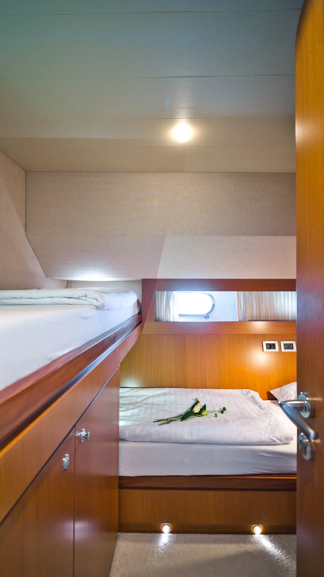 L’interno è progettato per essere accogliente e arioso, con finiture eleganti e luce naturale che esaltano la sensazione di spazio. Tutte le cabine sono completamente climatizzate, garantendo notti riposanti dopo giornate attive in mare. Con due membri dell’equipaggio professionale a bordo, ogni dettaglio è curato, permettendo agli ospiti di rilassarsi completamente e godersi la loro fuga nell’Adriatico.