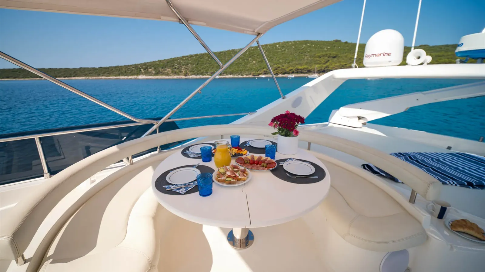 Il Ferretti 681 Dominique di 20,63 metri riflette perfettamente l’eleganza senza tempo dei Ferretti Yachts, fondendo il raffinato design italiano con prestazioni di crociera impressionanti. Il suo scafo planante e i potenti motori le permettono di navigare comodamente a 28 nodi, raggiungendo una velocità massima di 34 nodi, rendendo il salto tra le isole lungo la costa croata sia rapido che piacevole. Grazie al suo basso pescaggio, può facilmente accedere a baie appartate e incantevoli cittadine costiere, offrendo agli ospiti un’esperienza adriatica più intima.