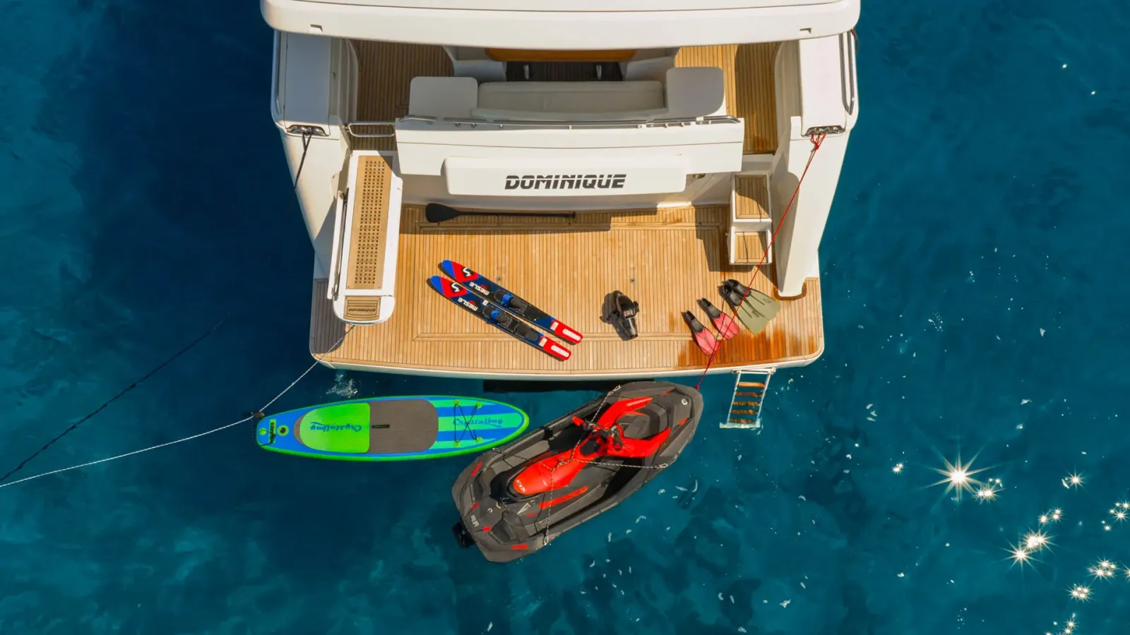 Progettata per una vita all’aperto rilassata, Dominique dispone di ampie aree sul ponte che invitano gli ospiti a rilassarsi, socializzare e godere di viste panoramiche sul mare durante tutto il loro charter.