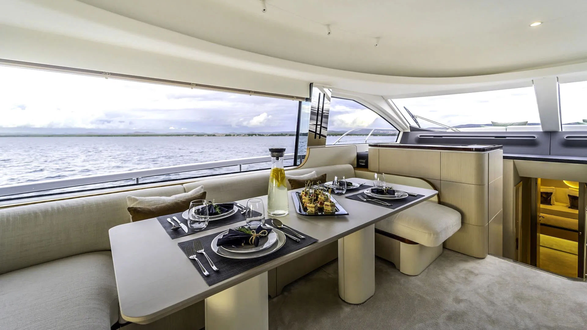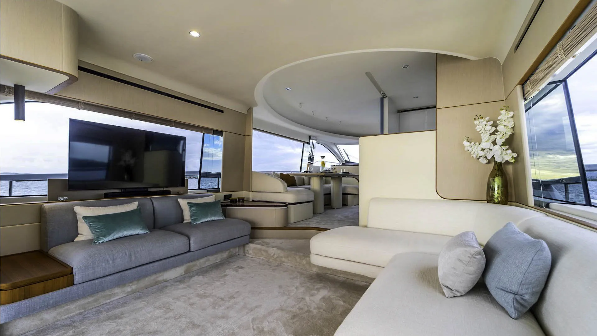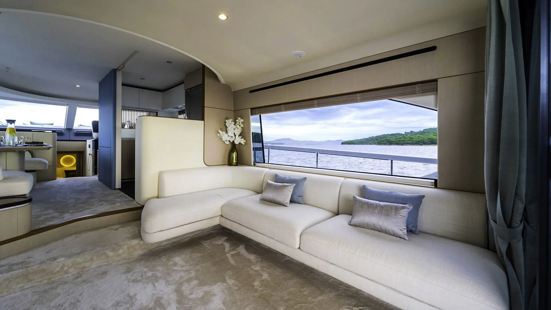 Achille Salvagni ha firmato l’interno con la sua scelta di materiali, colori, texture e forme dei mobili. Per far sentire gli ospiti come in una villa di lusso, questo iconico designer di interni e mobili di fama mondiale utilizza legni naturali, legni lucidi al 100% e tessuti raramente usati negli interni degli yacht. L’Azimut 68 Fly offre un’abbondanza di luce naturale grazie ai suoi grandi specchi e finestre che migliorano anche la sensazione di spaziosità.