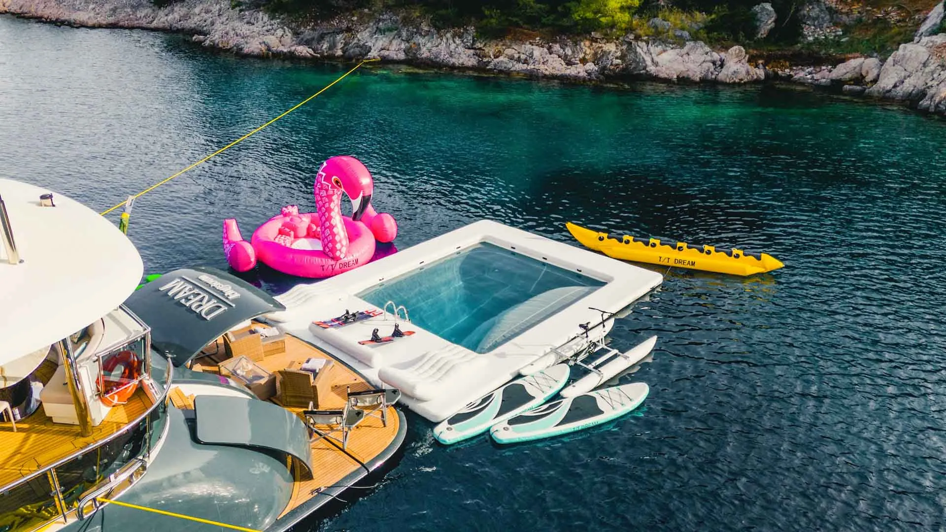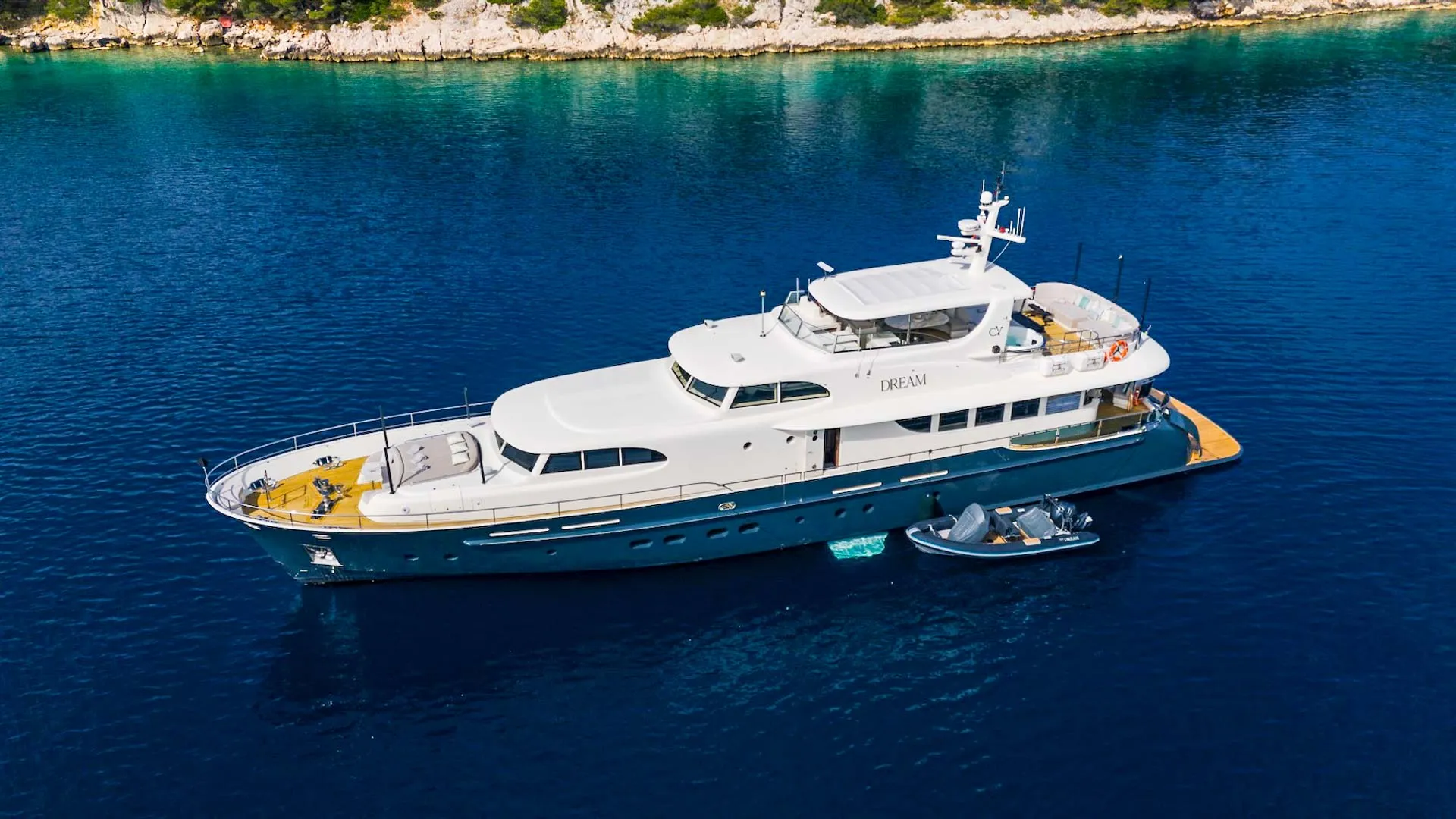 Dream offre ampie aree esterne progettate per il relax e il divertimento. Con il suo layout sapientemente studiato, aree per prendere il sole, aree sociali e tranquillità nelle cabine – c’è qualcosa per tutti. Costruita con uno scafo in GRP e dotata di stabilizzatori all’ancora e in navigazione, Dream garantisce il massimo comfort e stabilità anche sul mare agitato. Per chi ama gli sport acquatici, Dream è dotata di una selezione di giochi d’acqua e attrezzature, arricchendo l’esperienza a bordo.