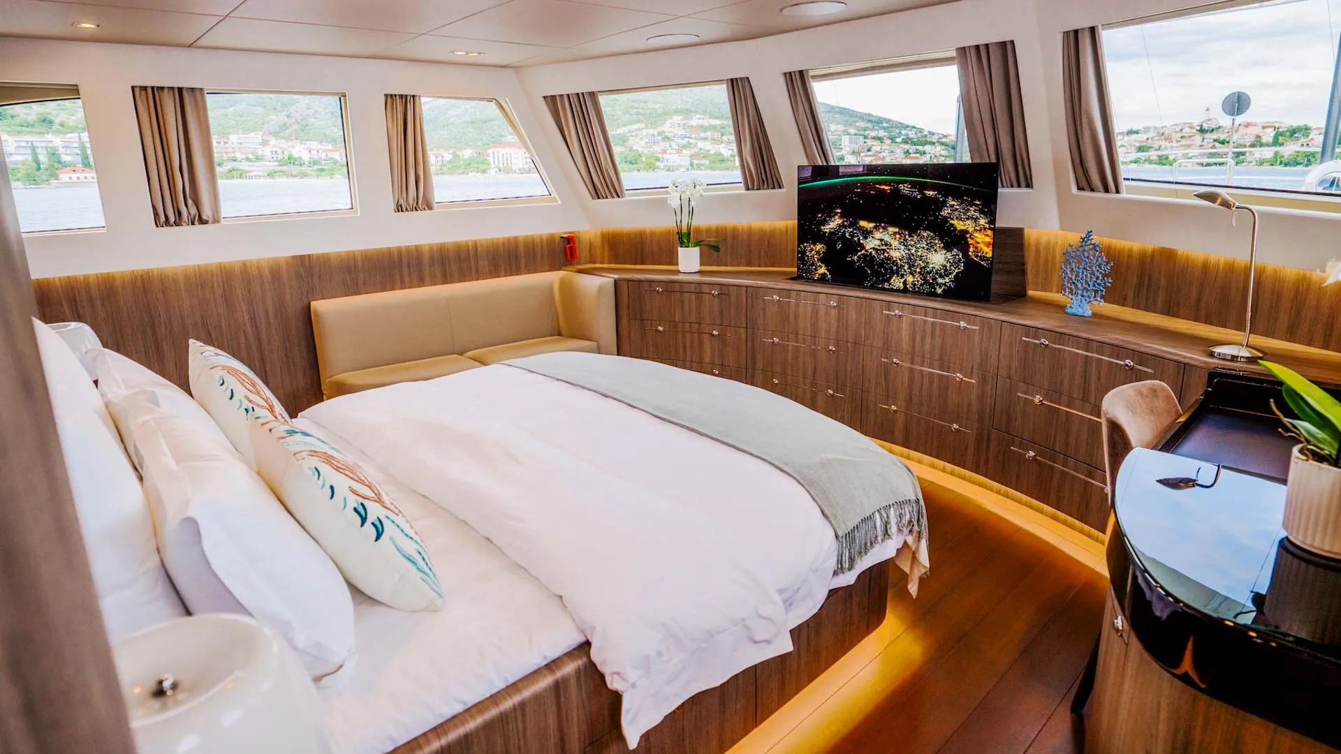 Dream offre cinque lussuose cabine che garantiscono un soggiorno confortevole a bordo. Gli ospiti possono rilassarsi nel bellissimo salone progettato per la tranquillità e il relax sul mare.