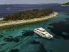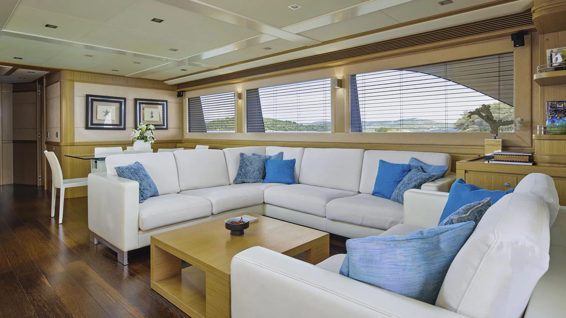 Sali a bordo della Friend’s Boat e lasciati accogliere da interni luminosi e ariosi, caratterizzati da linee pulite, mobili in rovere chiaro, arredi bianchi morbidi e ampie finestre in vetro che offrono viste mozzafiato del cielo e del mare circostanti.