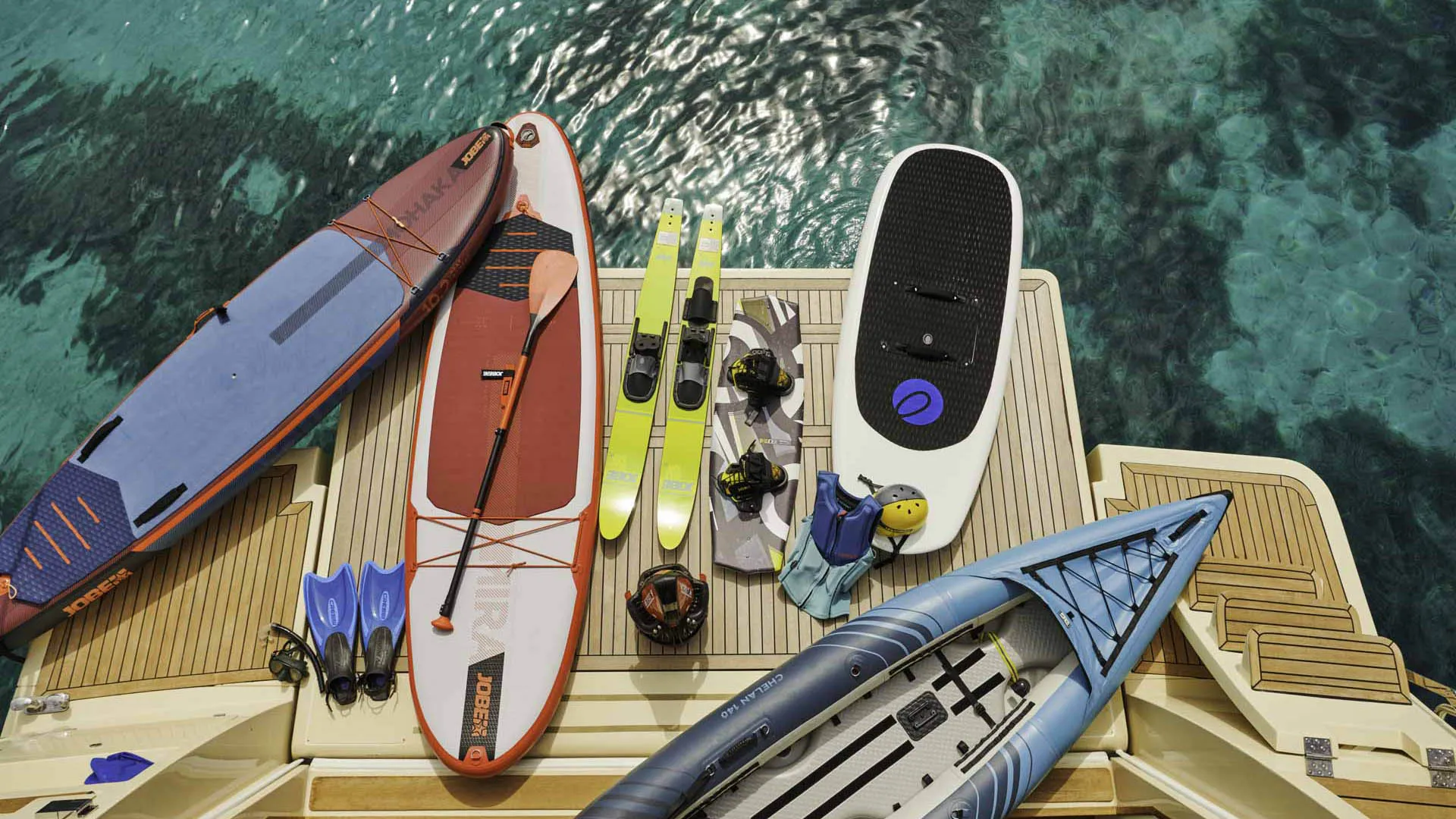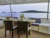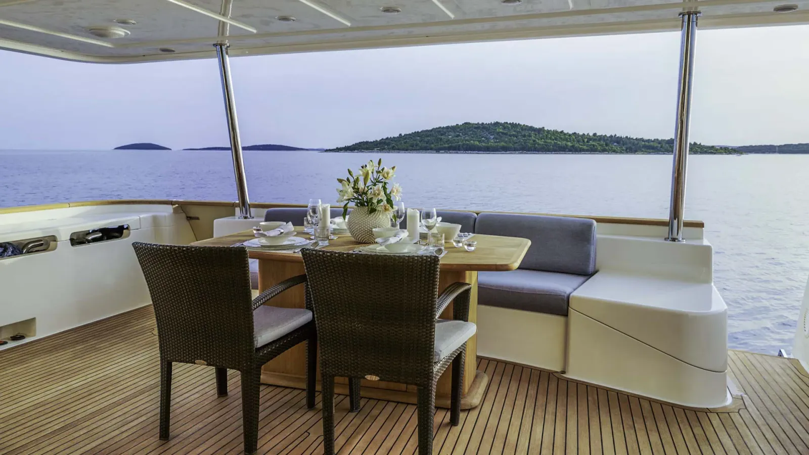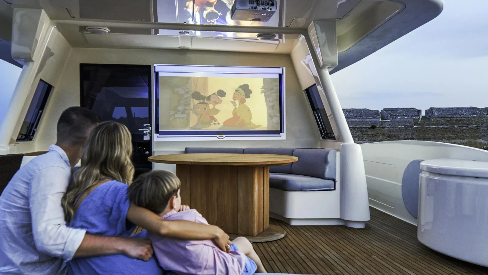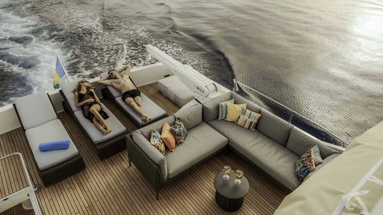 La Navetta 26, fedele al suo nome, eccelle in prestazioni nautiche, offrendo una navigazione fluida, un funzionamento silenzioso e una stabilità impressionante. Gli esterni sono progettati con cura per una vita da super yacht senza sforzo, con diverse aree per pranzare e rilassarsi. Goditi un pasto sul ponte di poppa o sali al flybridge, dove troverai uno schermo per proiettore cinema all’aperto, sistema audio SONOS, un tavolo per otto persone, area lounge e lettini prendisole.