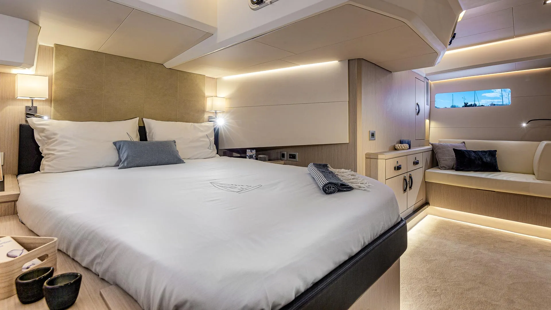 Jeanneau Yachts 60 offre alloggio per otto ospiti in charter in quattro cabine doppie. Ogni cabina è dotata di bagno privato ed è decorata lussuosamente. Oltre a uno skipper, gli ospiti possono scegliere di avere a bordo uno chef o una hostess. Indubbiamente, l’equipaggio locale offrirà momenti indimenticabili di crociera nell’Adriatico per gli ospiti.