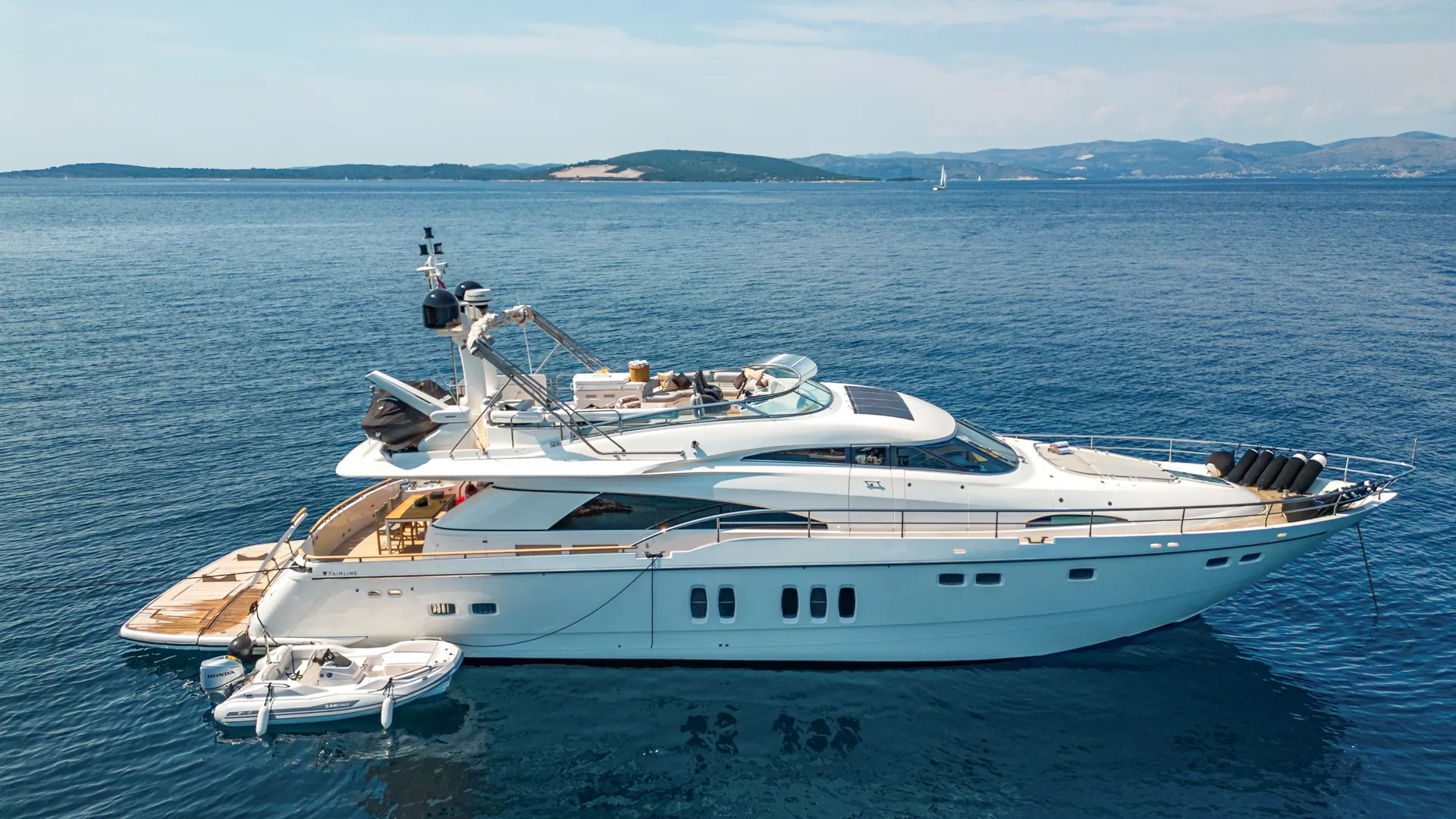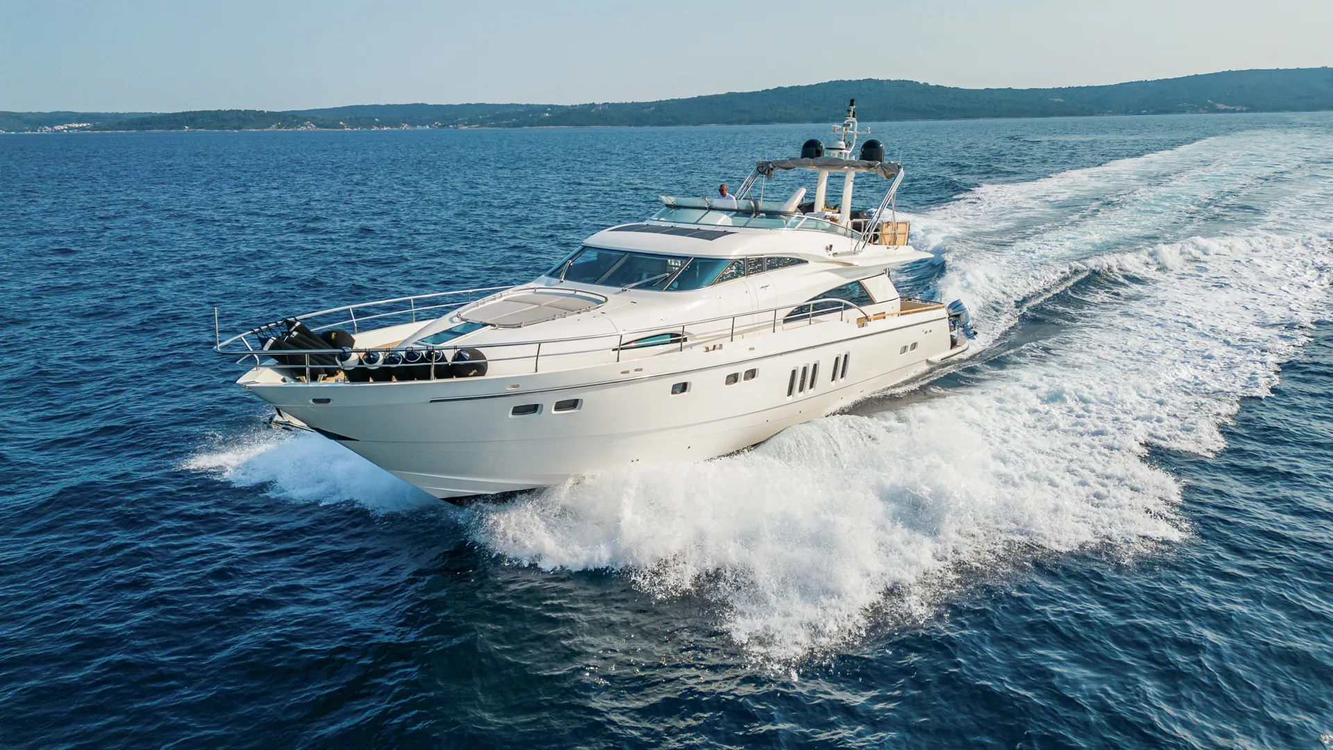 Lo yacht di lusso JoliDor, un impeccabile Fairline Squadron 78, unisce eleganza e velocità, offrendo ampie aree per prendere il sole e interni lussuosi. Può ospitare fino a 8 ospiti nelle sue quattro cabine. Progettato per una navigazione facile, offre un accesso rapido e confortevole ai porti dell’Adriatico.