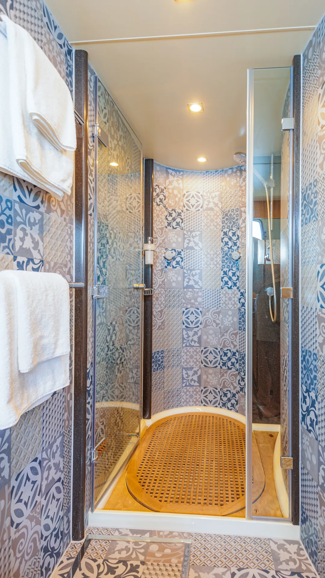 Questo yacht di lusso ospita fino a 8 ospiti in totale comfort. JoliDor dispone di una suite armatoriale, una cabina VIP e due cabine doppie. Gli alloggi per l’equipaggio si trovano a poppa. La suite armatoriale a tutta larghezza è situata centralmente sul ponte inferiore, offrendo un letto king-size e un ampio guardaroba walk-in. La cabina VIP a prua include un letto queen-size, mentre le cabine doppie si trovano a babordo e tribordo tra la suite armatoriale e quella VIP. Con arredi eleganti e spazi ben progettati, JoliDor garantisce un’esperienza di alto livello.