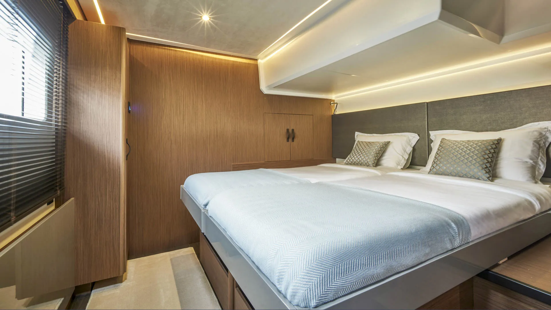 Prestige M48 può ospitare fino a 6 ospiti in 3 cabine. La cabina armatoriale è uno spazio lussuoso e attentamente progettato che offre un’esperienza straordinaria per il proprietario. Inoltre, la cabina è elegantemente arredata con un’attenzione ai materiali e alle finiture di alta qualità che migliorano l’atmosfera complessiva di lusso. È un rifugio accuratamente realizzato che riflette i più alti standard di design. Infine, ogni cabina di questo eccezionale catamarano Prestige ha accesso privato e vanta un’altezza impressionante, grandi finestre sullo scafo e layout ben studiati.