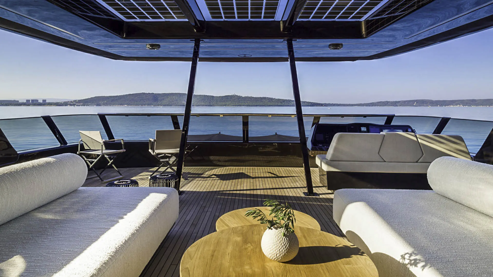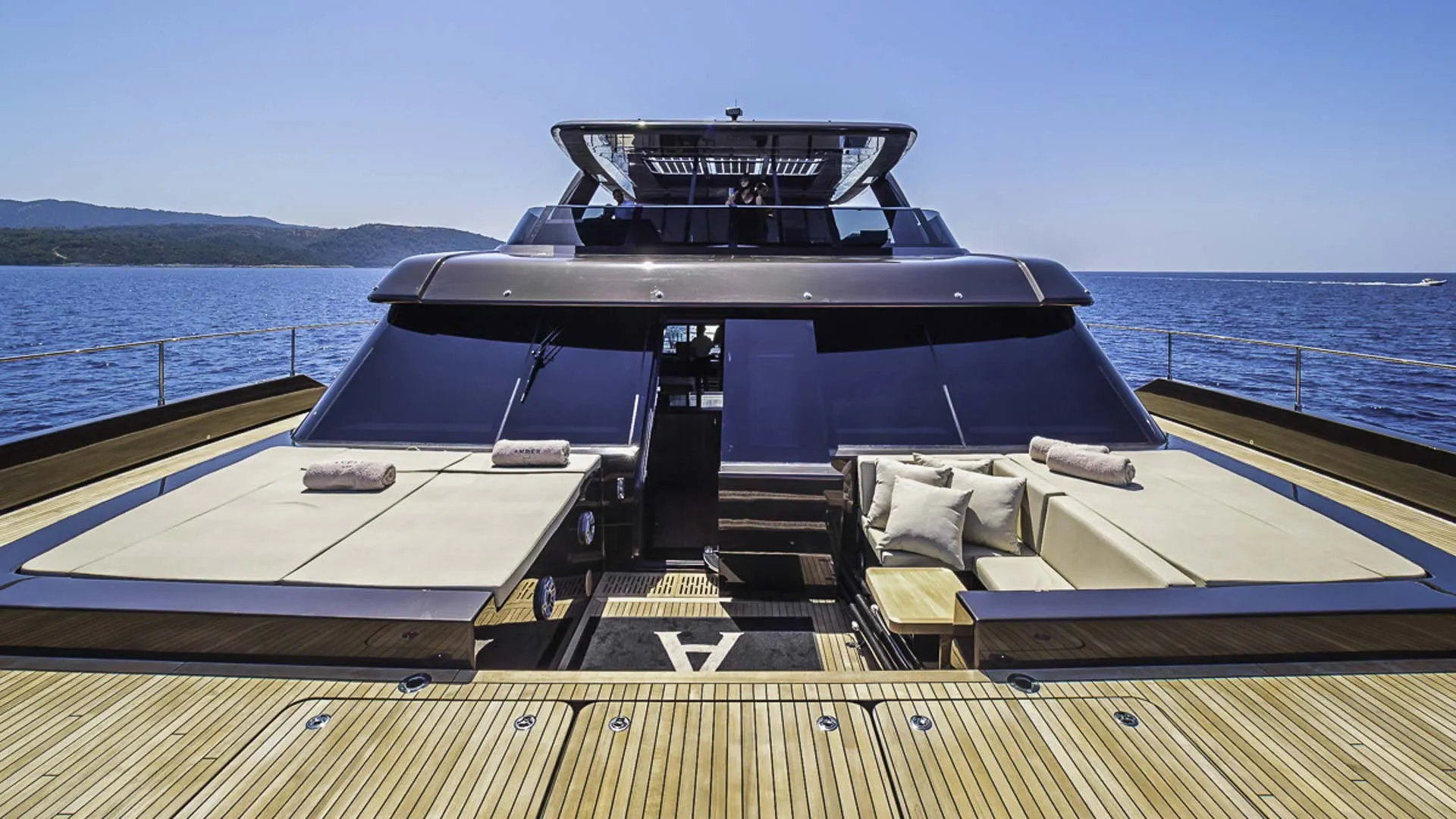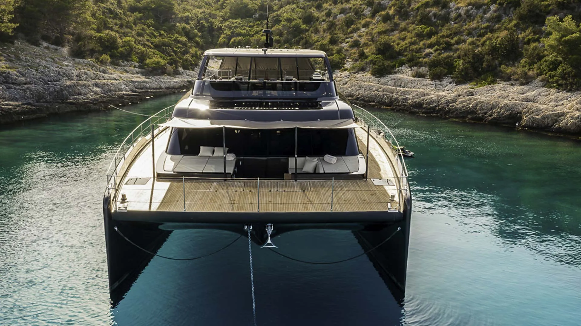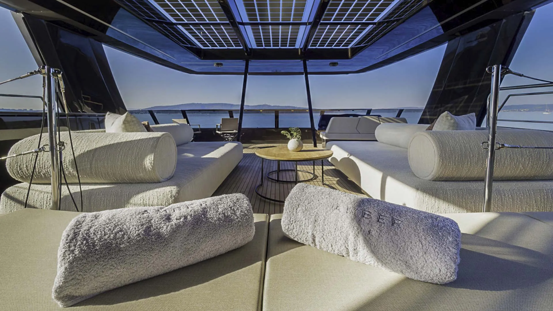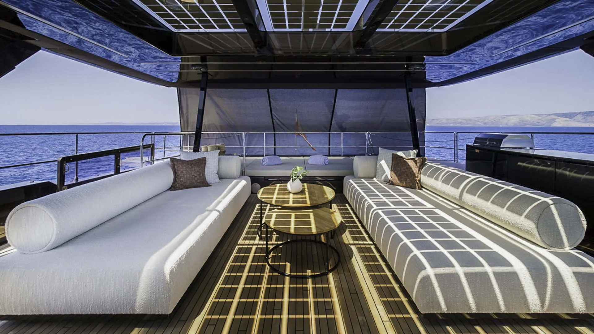 Il 70 Sunreef Power catamarano di lusso vanta un’ampia terrazza a prua con mobili indipendenti e un salotto protetto dal sole e dal vento. Il pozzetto di poppa offre un’area pranzo all’aperto vicino all’acqua e un ottimo punto per godersi gli sport acquatici. L’ampio flybridge di 36m² offre un livello di comfort senza pari, offrendo più che sufficiente spazio per un bar, un’area pranzo e grandi prendisole.