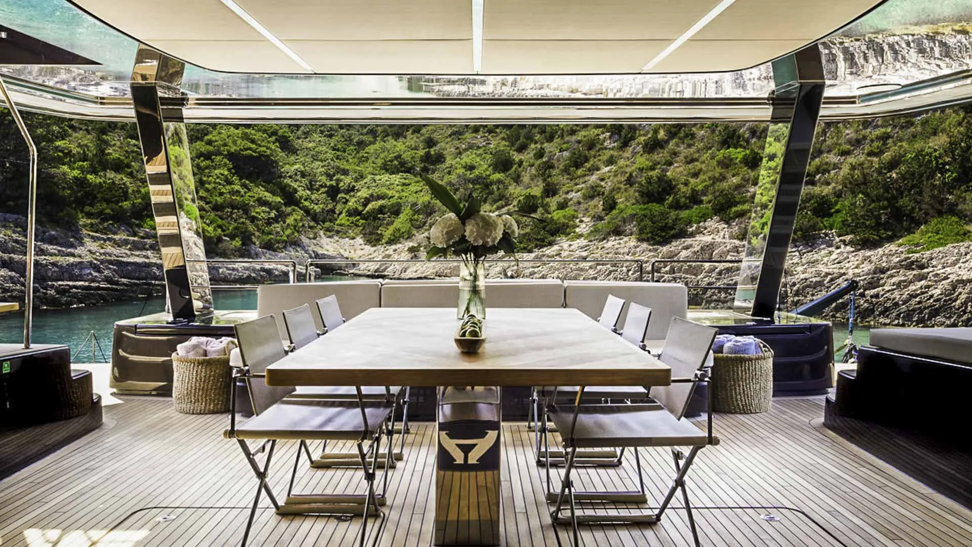 Il design della sovrastruttura del Sunreef 70 Power offre un livello superiore di comfort a bordo, mentre l’uso generoso del teak e le sue linee eleganti enfatizzano uno stile moderno con un tocco classico. Il salone del ponte principale di questo Sunreef Yacht si fonde perfettamente con il pozzetto di poppa, creando un’ampia area semi-aperta per pranzi e bagni di sole.