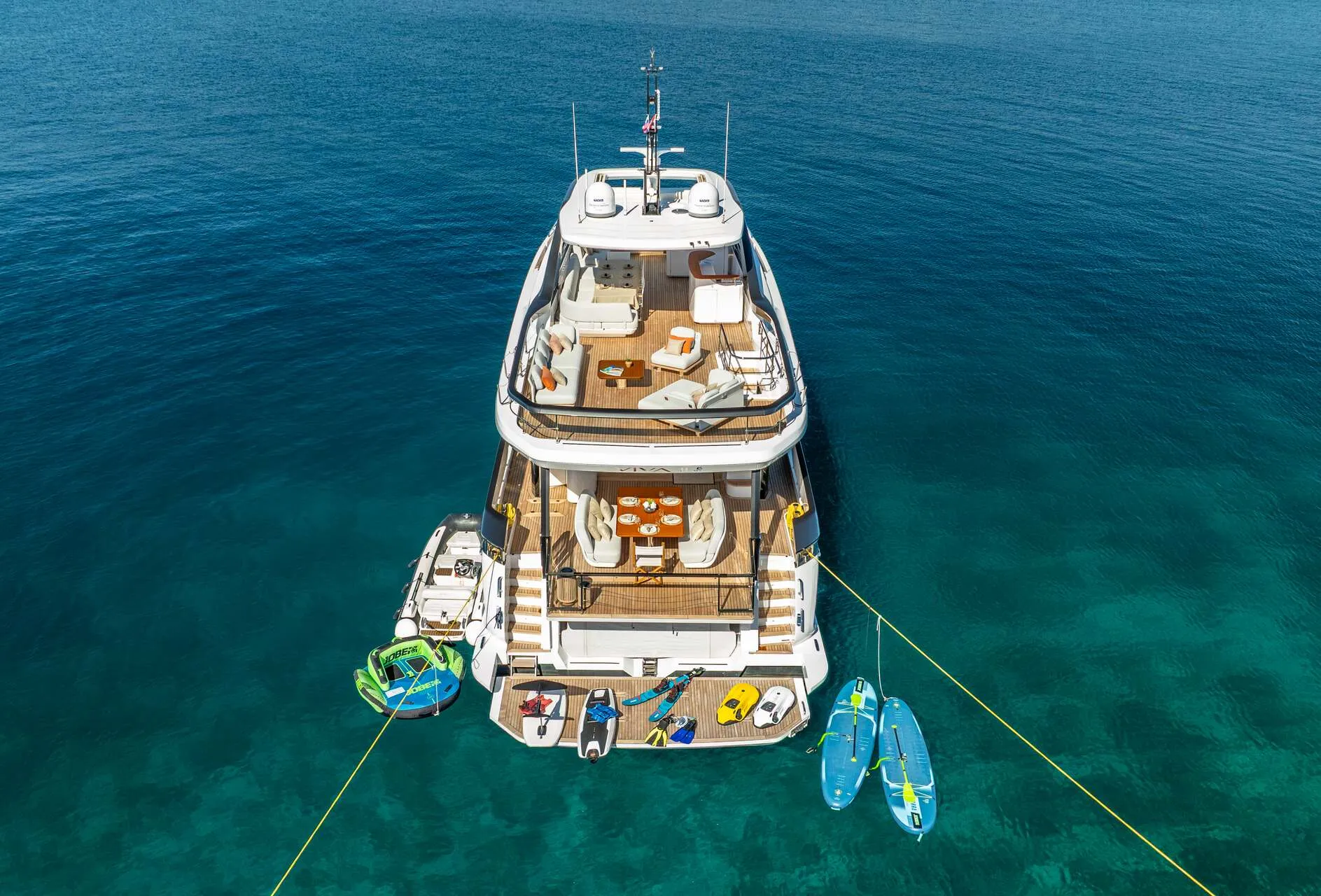 Il motoryacht Azimut Grande 26M Viva II rappresenta l’ultima innovazione di questa acclamata serie. Con interni firmati da Salvagni Architetti e un sistema di propulsione POD di nuova generazione, offre emissioni ridotte, prestazioni fluide e un’esperienza di navigazione silenziosa e raffinata. Con una capacità di ospitare fino a dieci ospiti in cinque cabine con bagno privato – inclusa una suite armatoriale a tutto baglio sul ponte principale – Viva II è concepita per portare l’eccezionale alla vita. Progettata per ospiti che apprezzano il lusso discreto, layout fluidi e tecnologia ponderata, garantisce comfort a ogni passo.