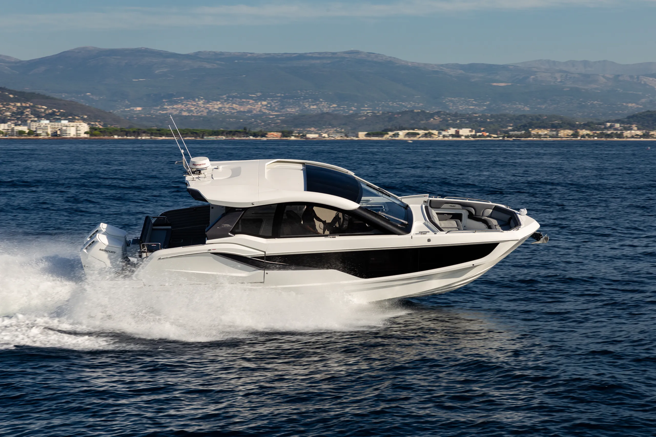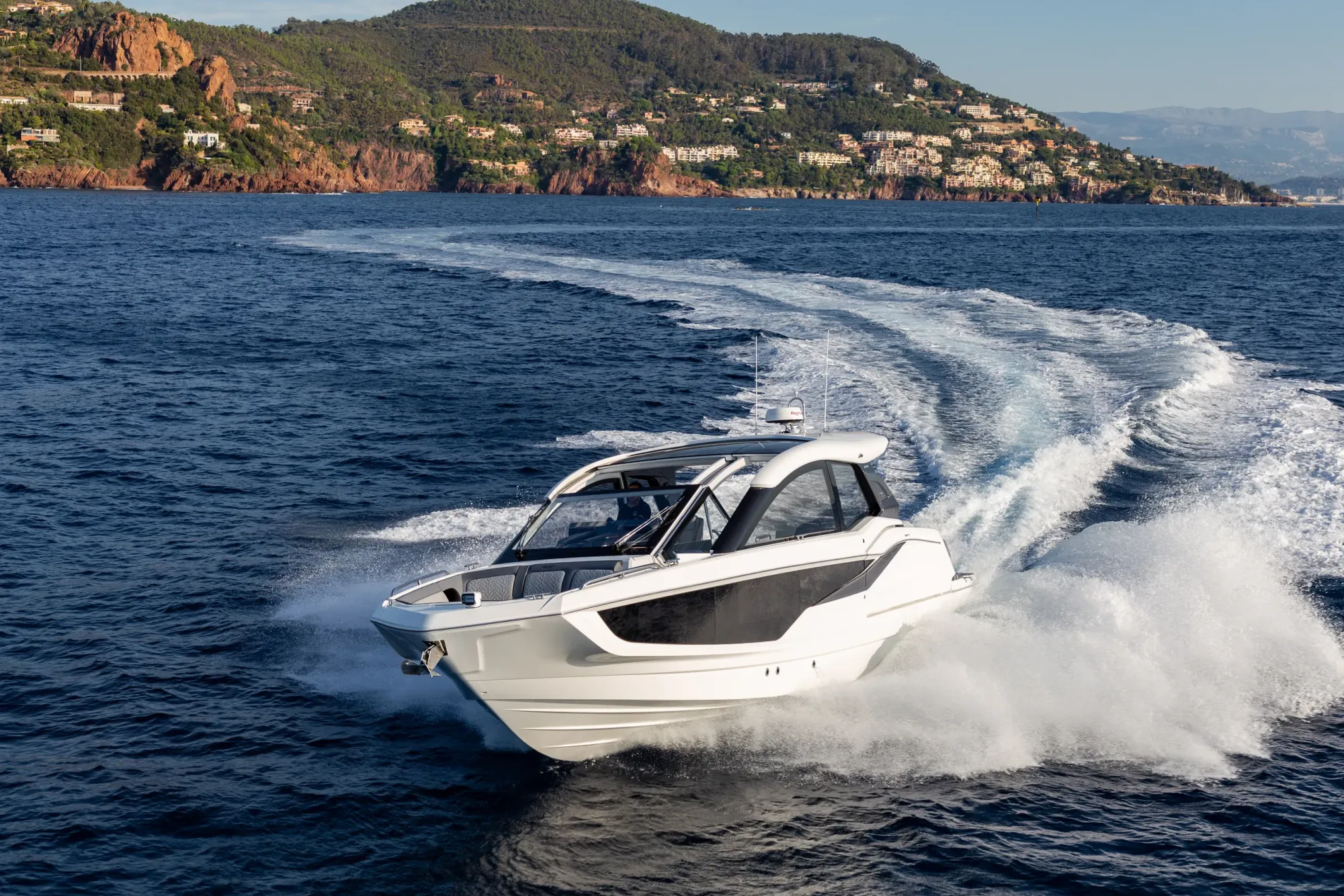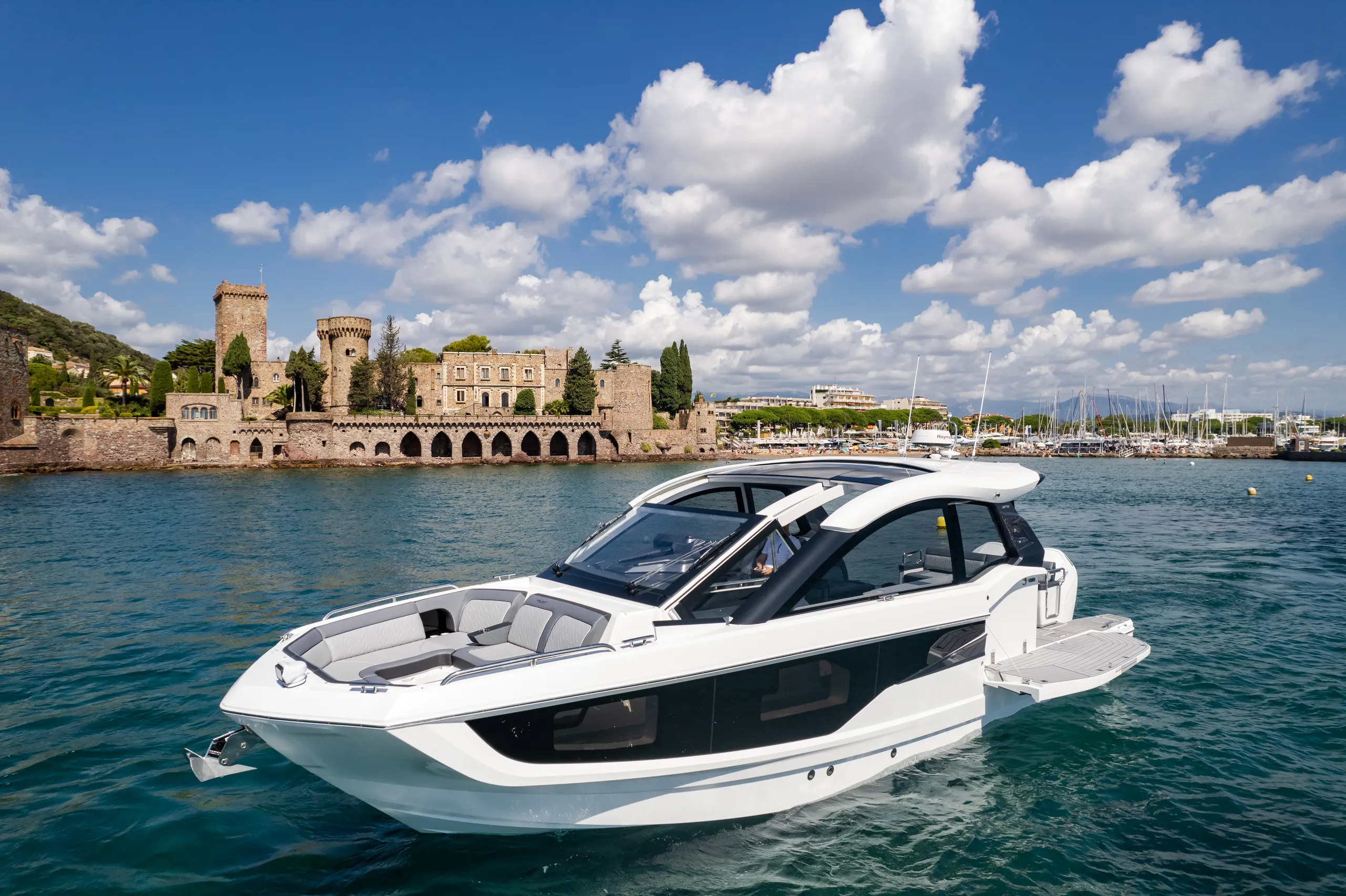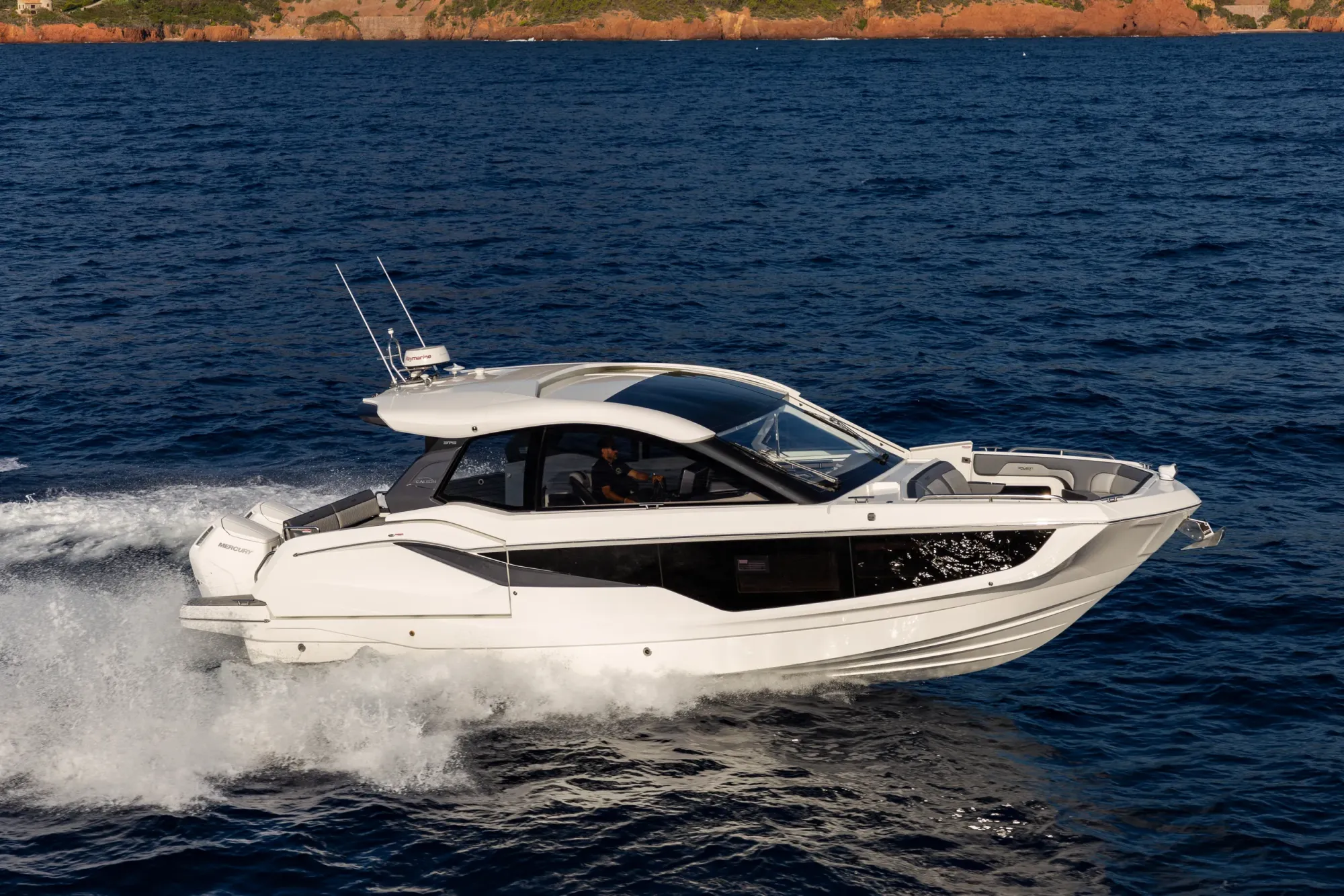 Questa imbarcazione da giorno ricca di caratteristiche attira l'attenzione grazie a un design ispirato alla quarta generazione di yacht Galeon, arricchito da un tocco di GTO. Con il suo profilo basso, proporzioni perfette e accenti sportivi, è destinata a distinguersi in qualsiasi marina.