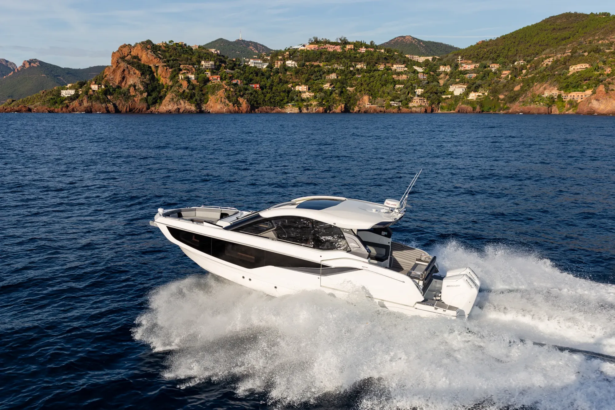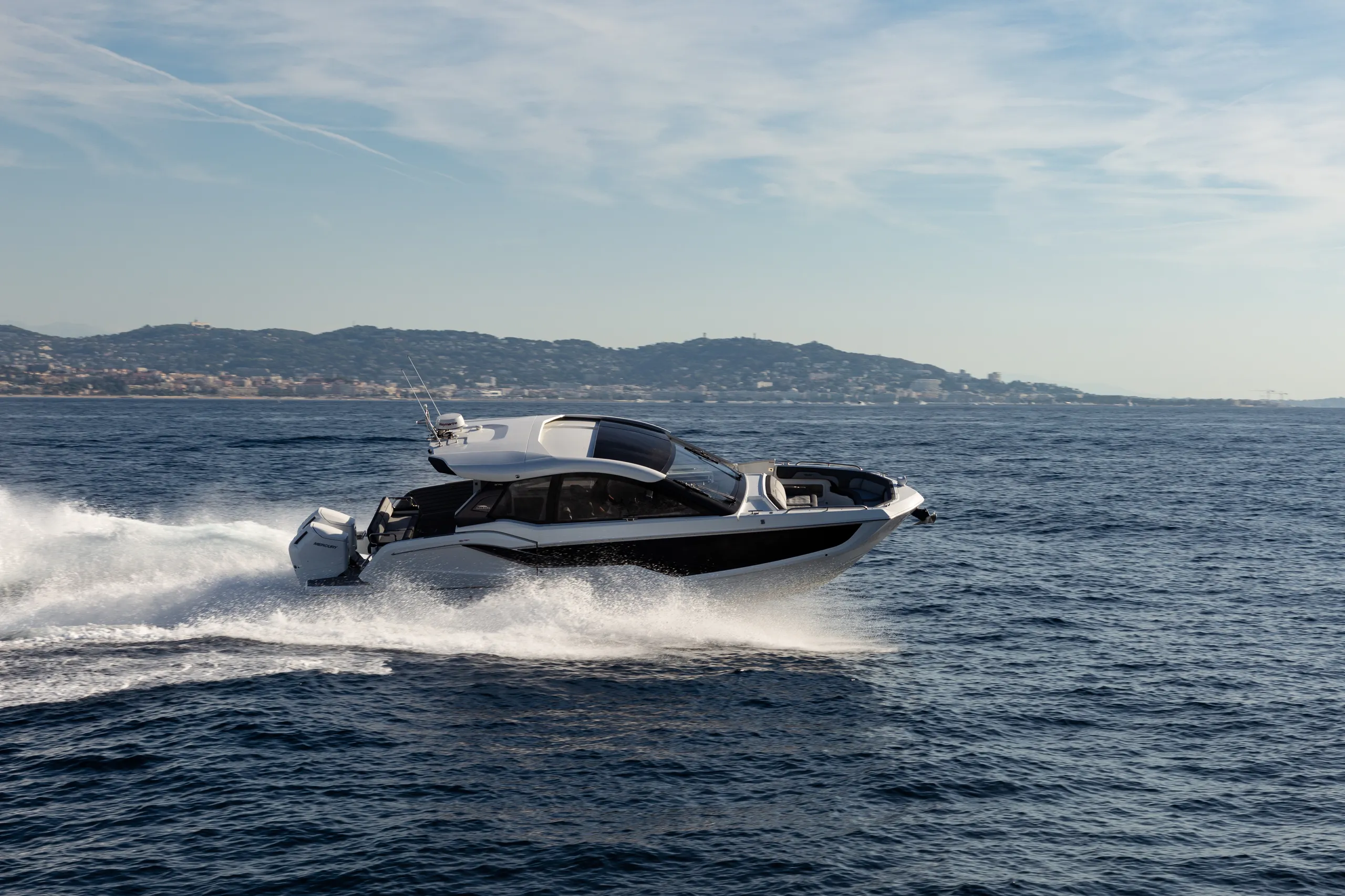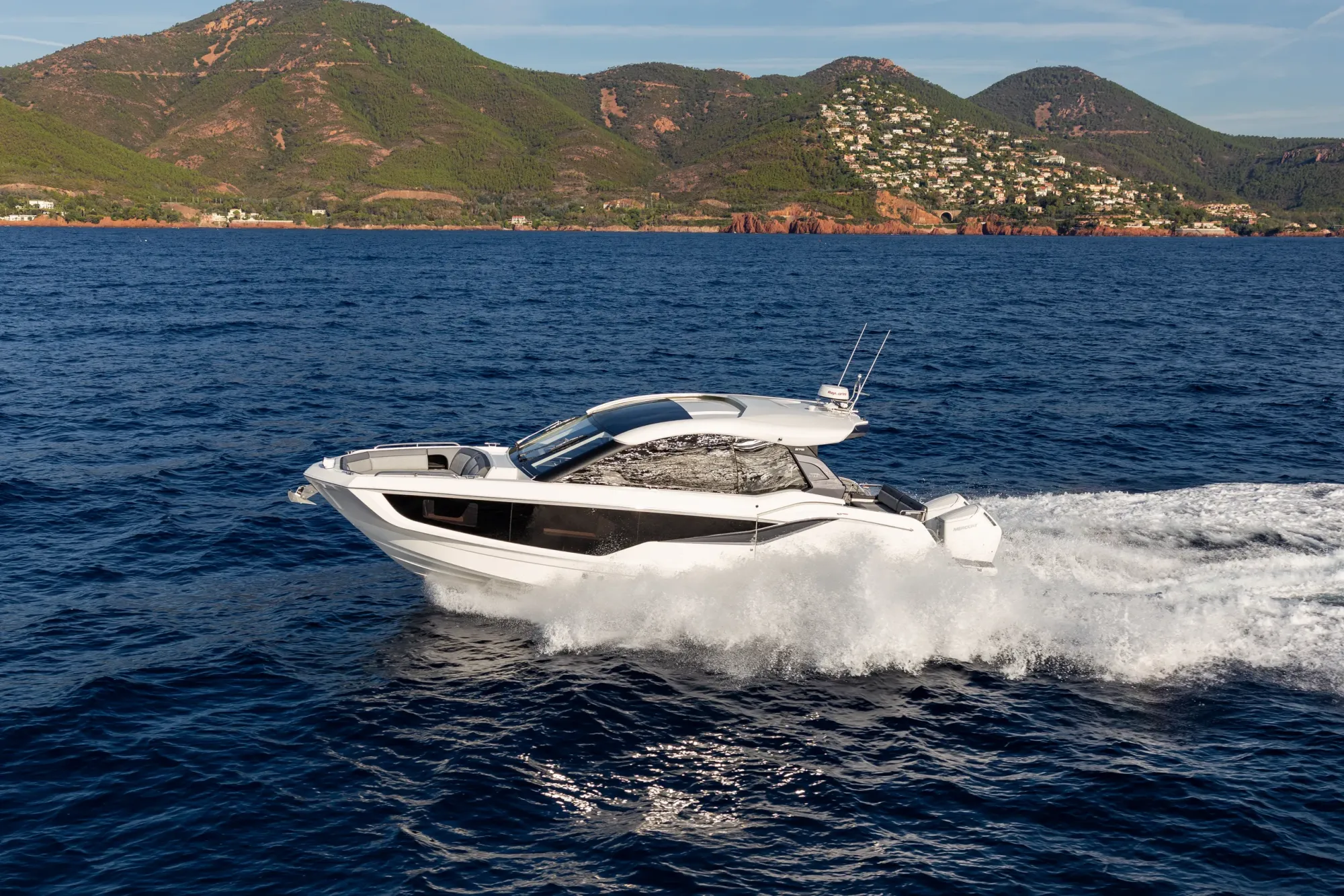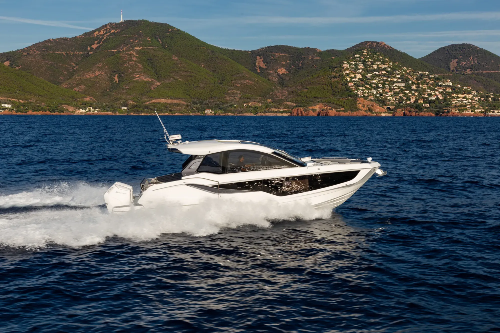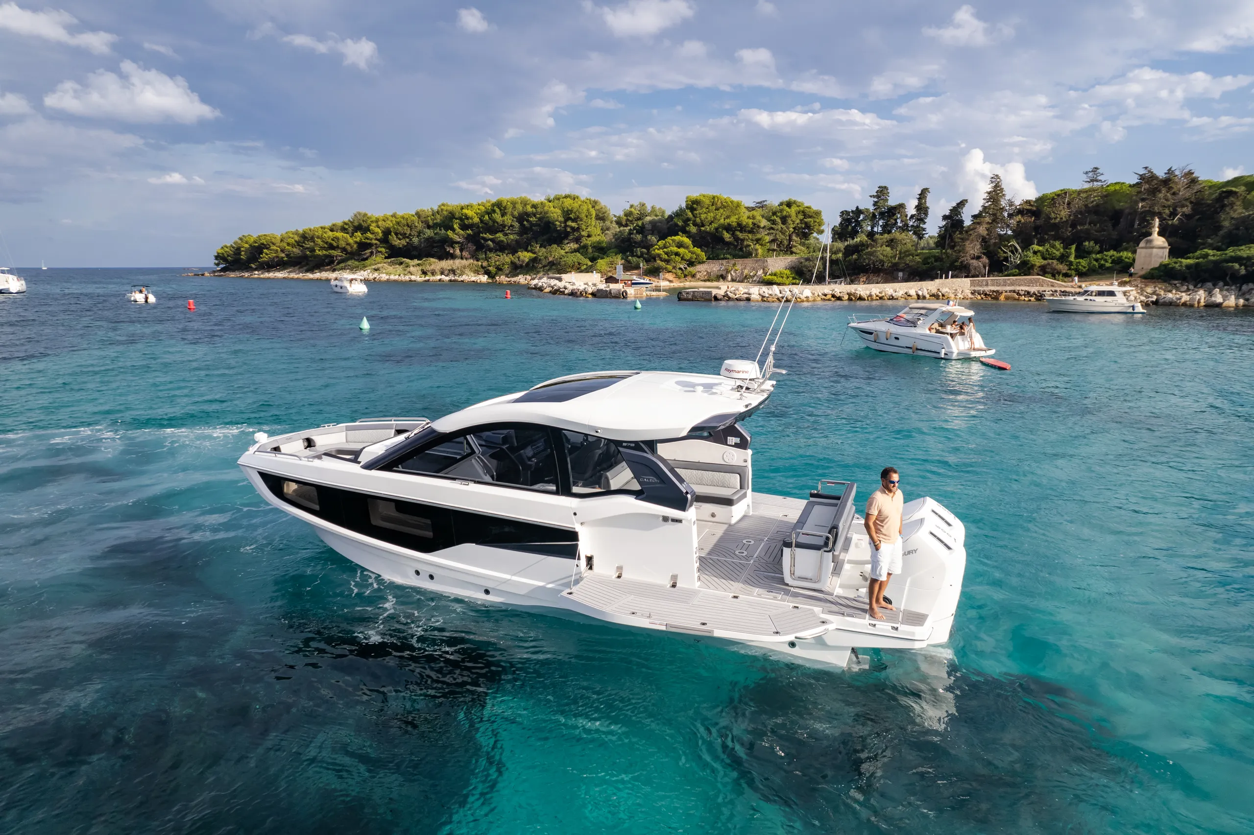 Questa imbarcazione da giorno ricca di caratteristiche attira l'attenzione grazie a un design ispirato alla quarta generazione di yacht Galeon, arricchito da un tocco di GTO. Con il suo profilo basso, proporzioni perfette e accenti sportivi, è destinata a distinguersi in qualsiasi marina.