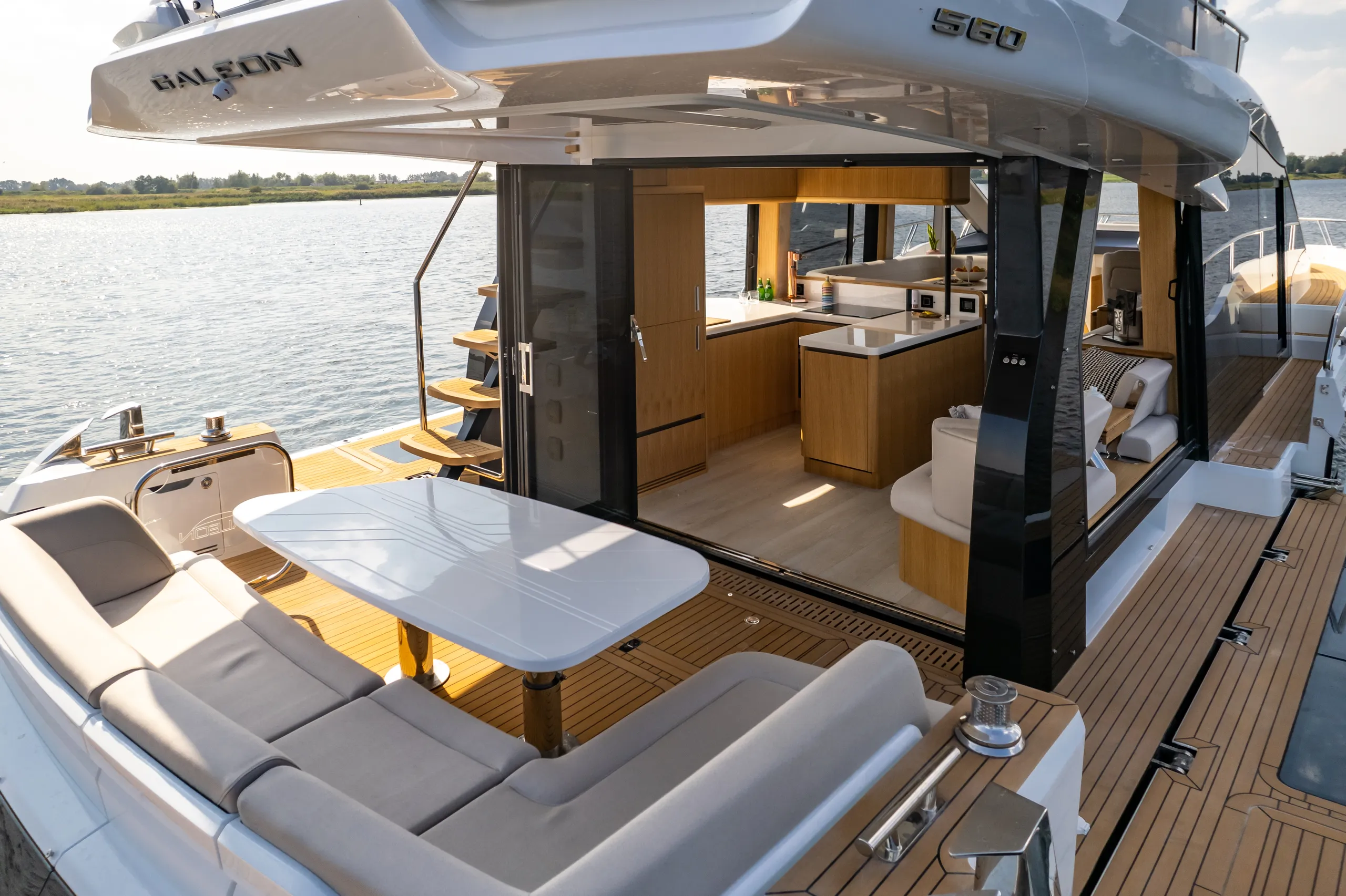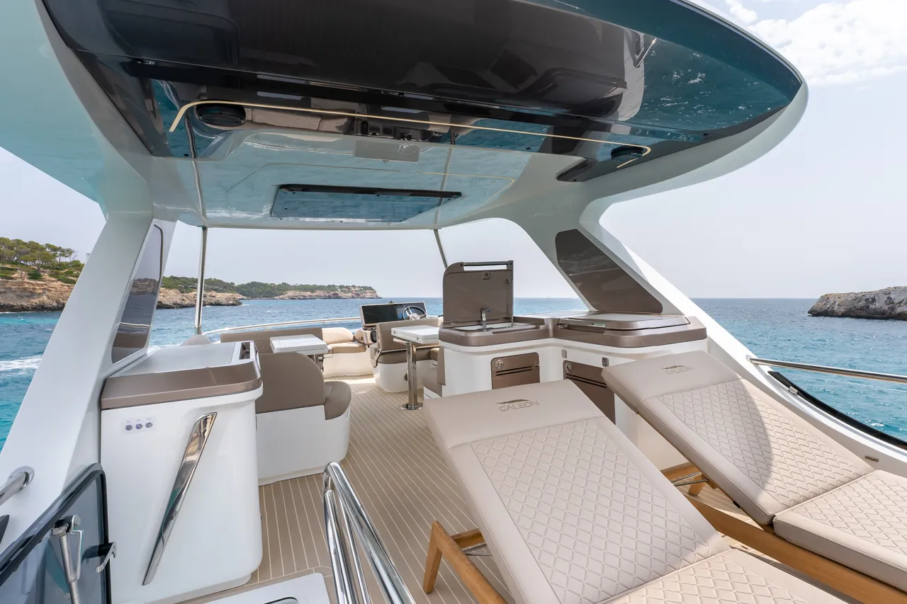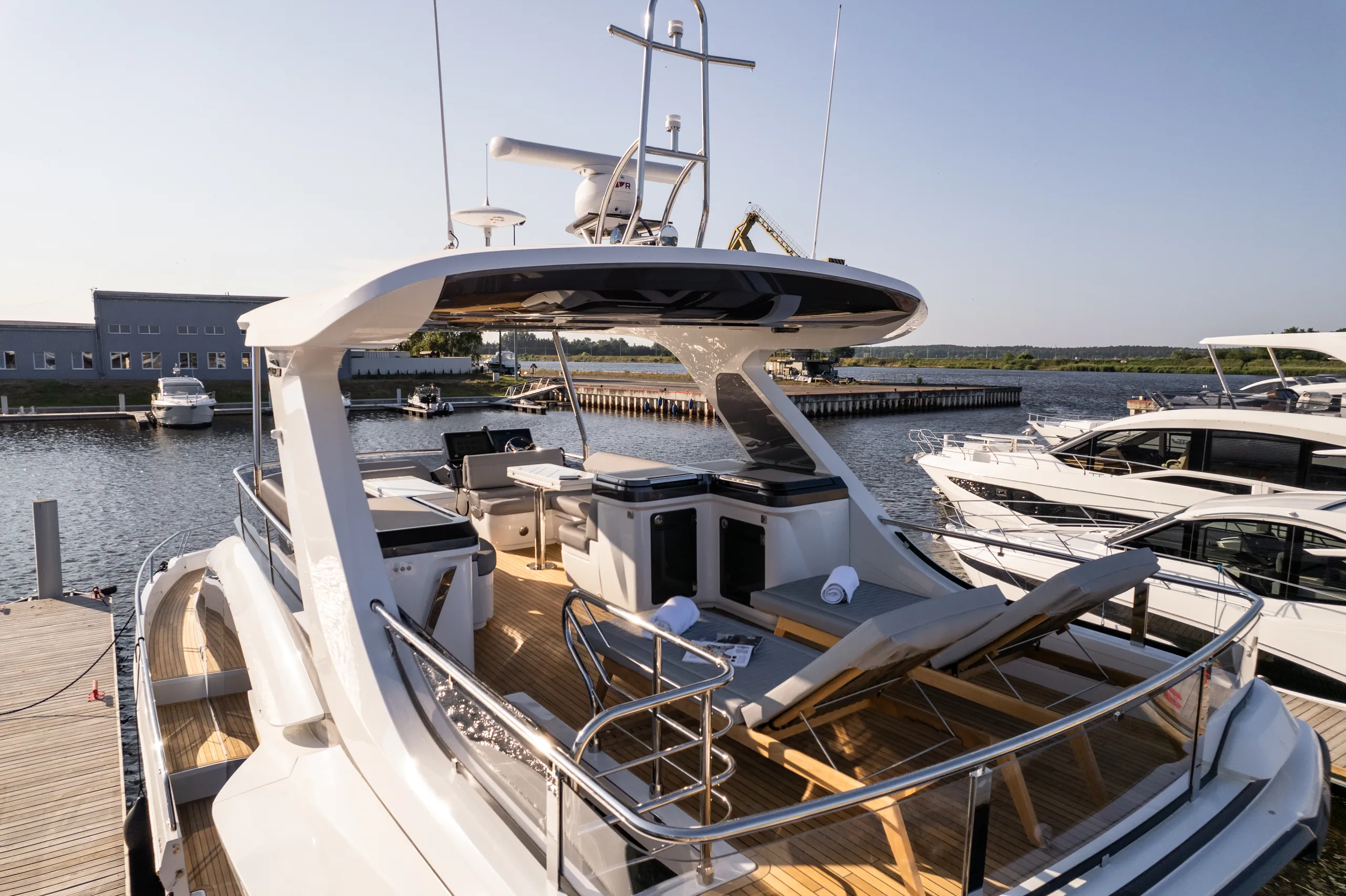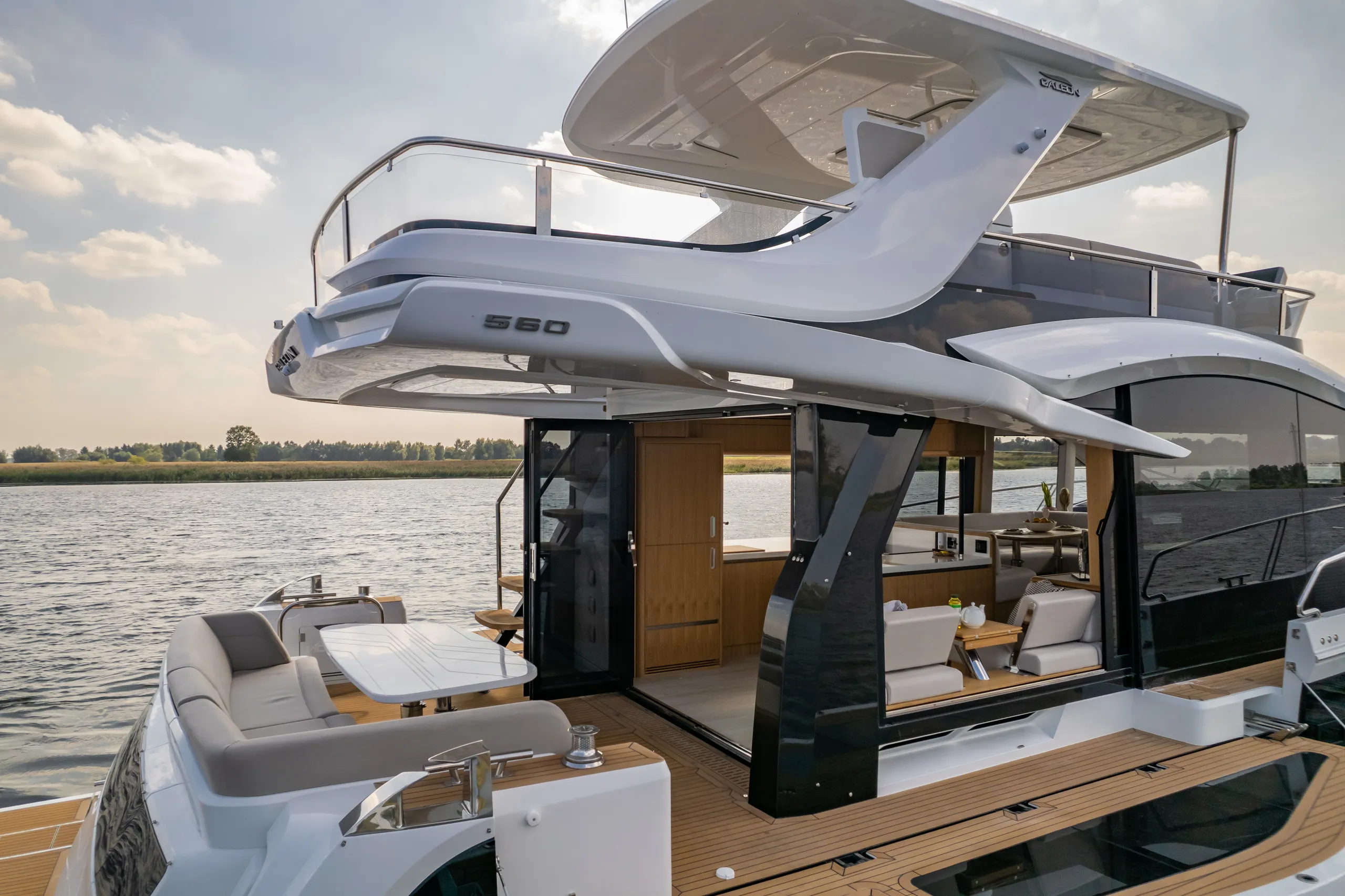 The 560 FLY bridges the gap in Galeon’s portfolio between the award-winning 500 series and the highly innovative 640 and 650 models. The long-awaited premiere is expected to directly address the needs of customers who appreciated the technical prowess of the 500 FLY yet desire more space on board and the bespoke luxury of the 640/650 models while still maintaining a manageable size.