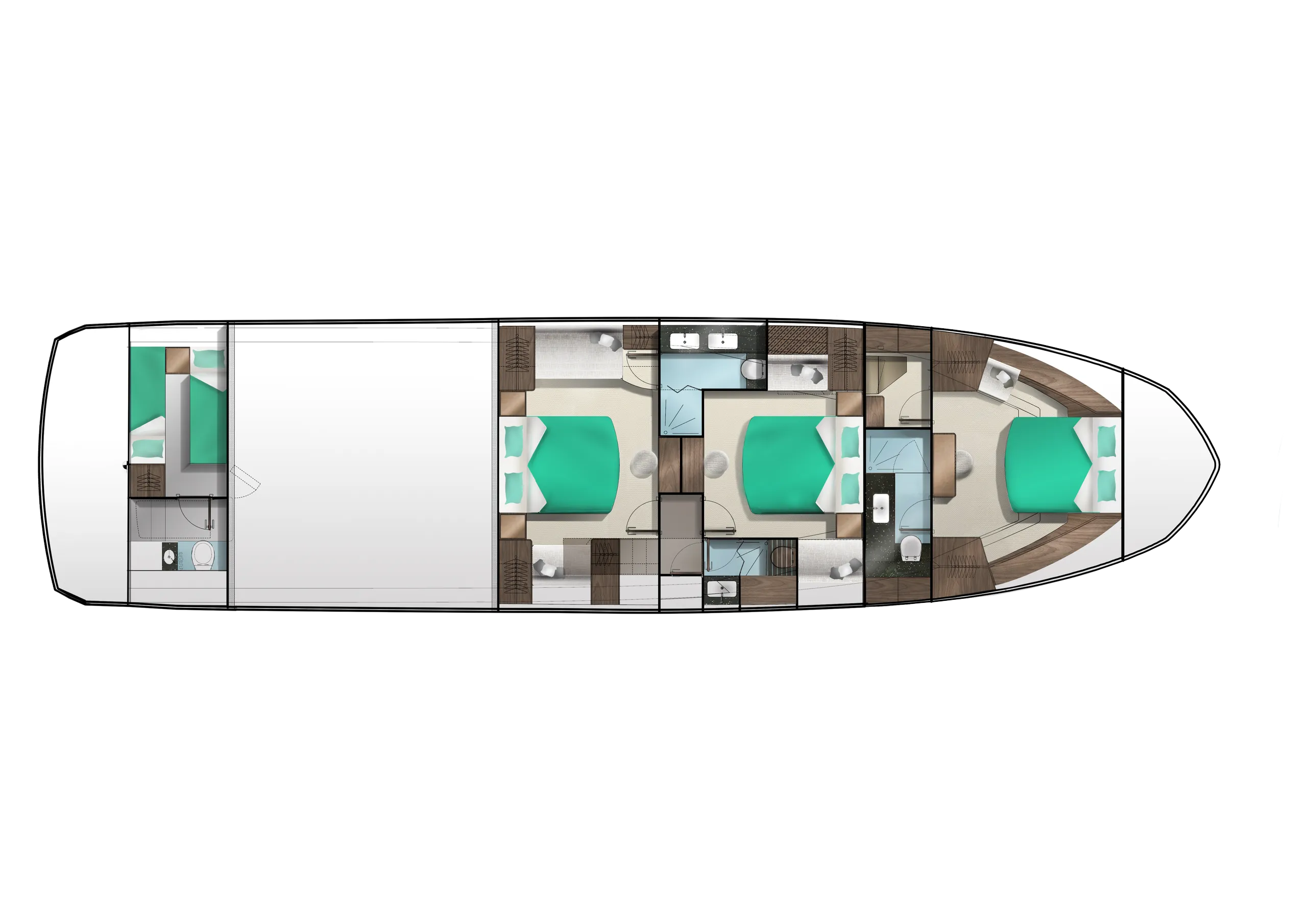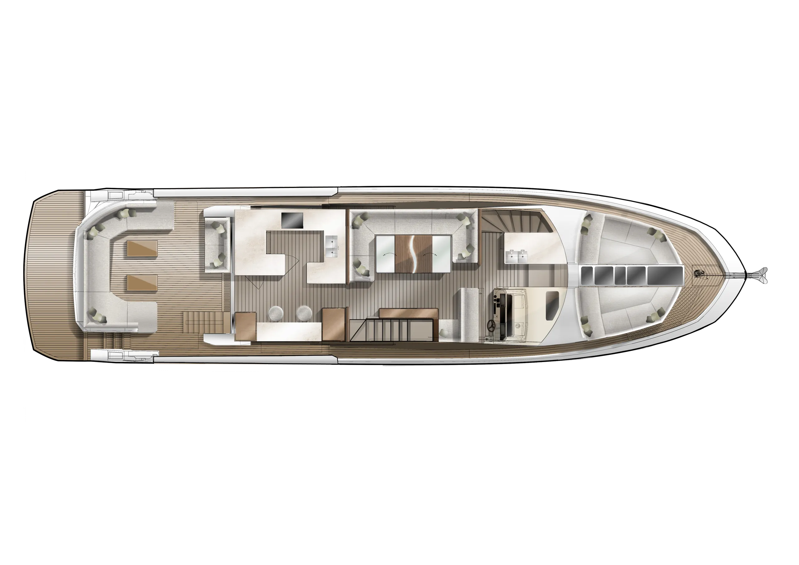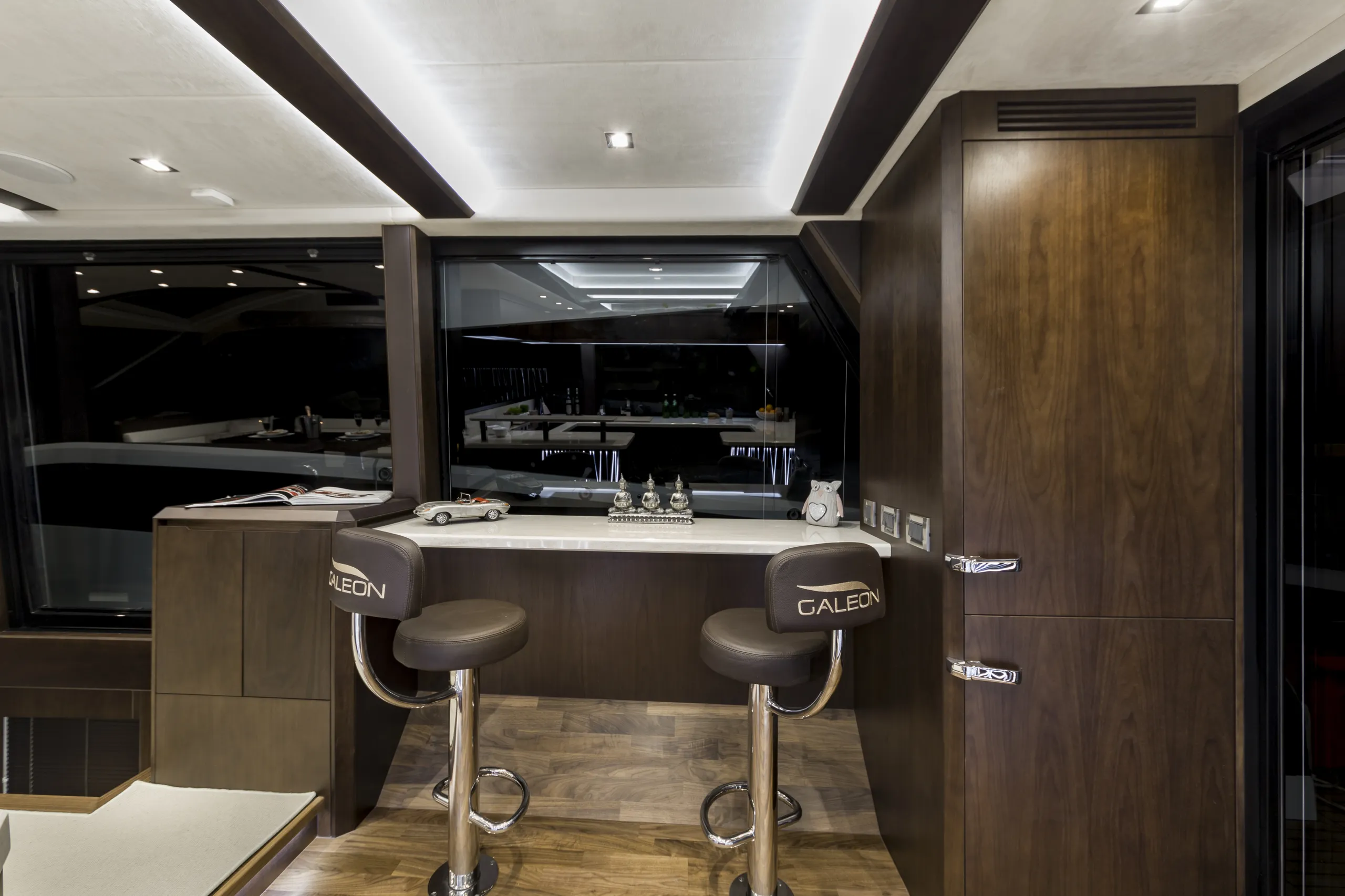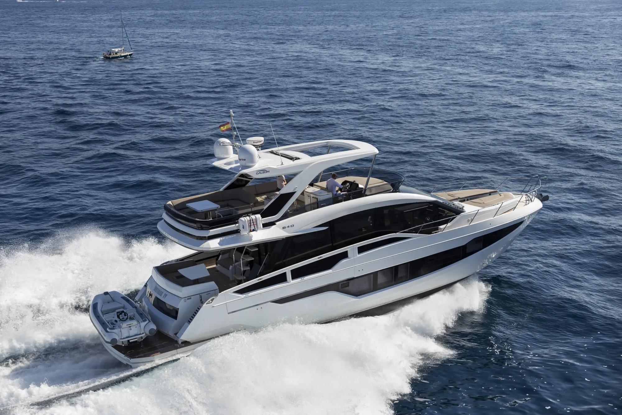 The 640 FLY will be a game changer, once again offering solutions never before seen in this class. This transformer yacht will revolutionize the segment with its innovative approach to layout and space distribution. This transformer model will follow a new design path to allow for bigger volume and better space distribution, all while maintaining the great exterior appearance Galeon models are known for.