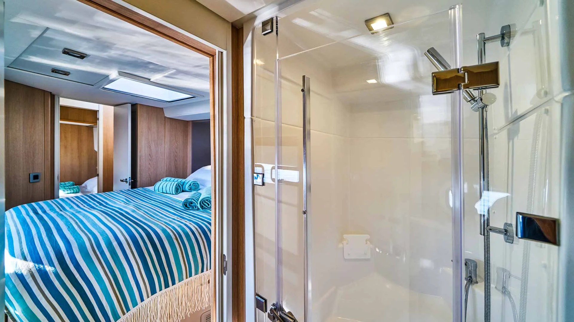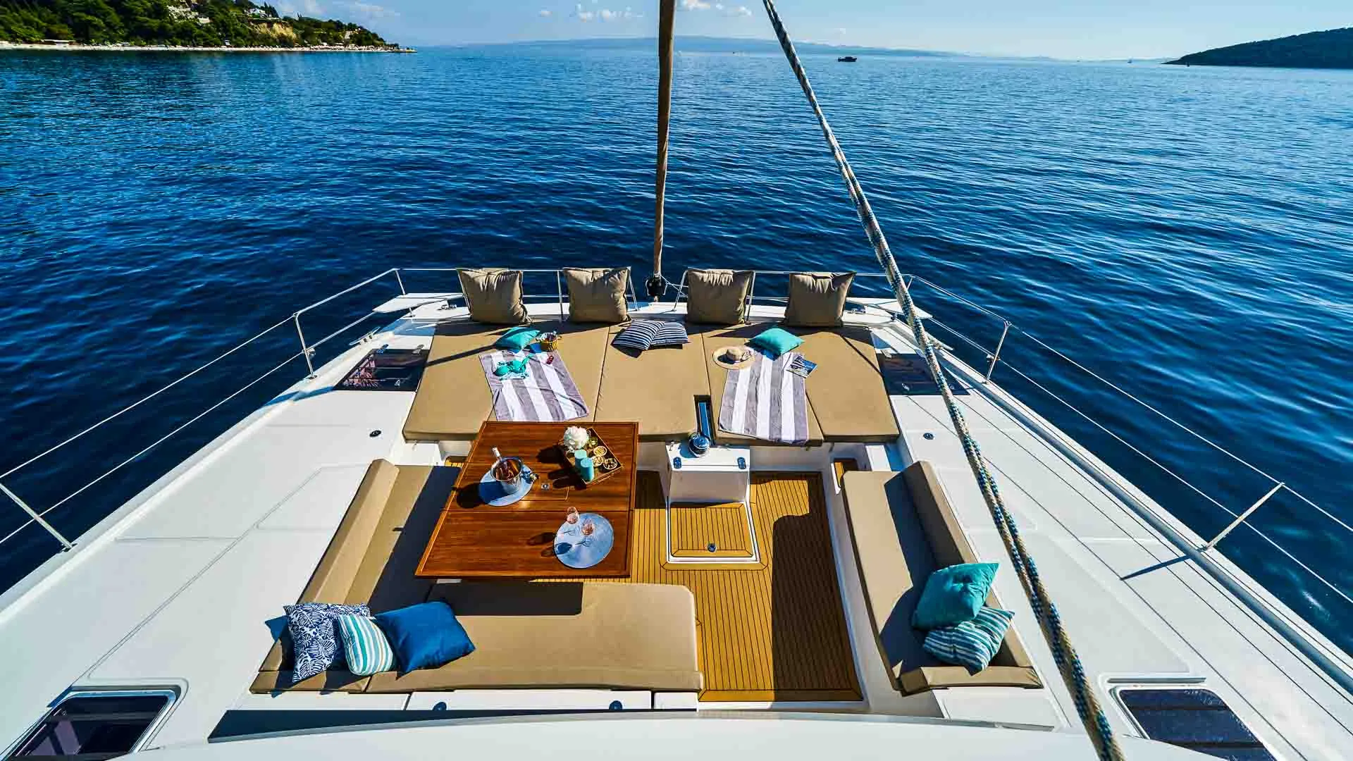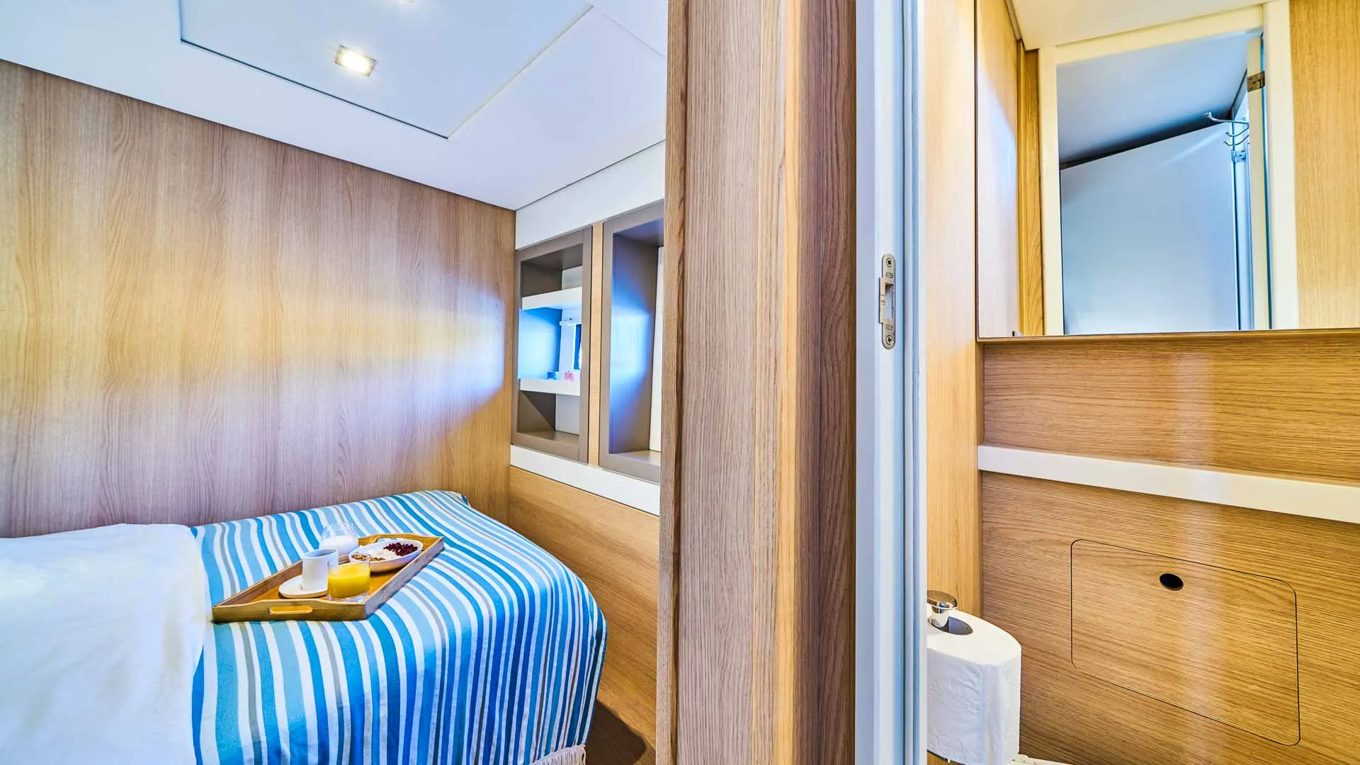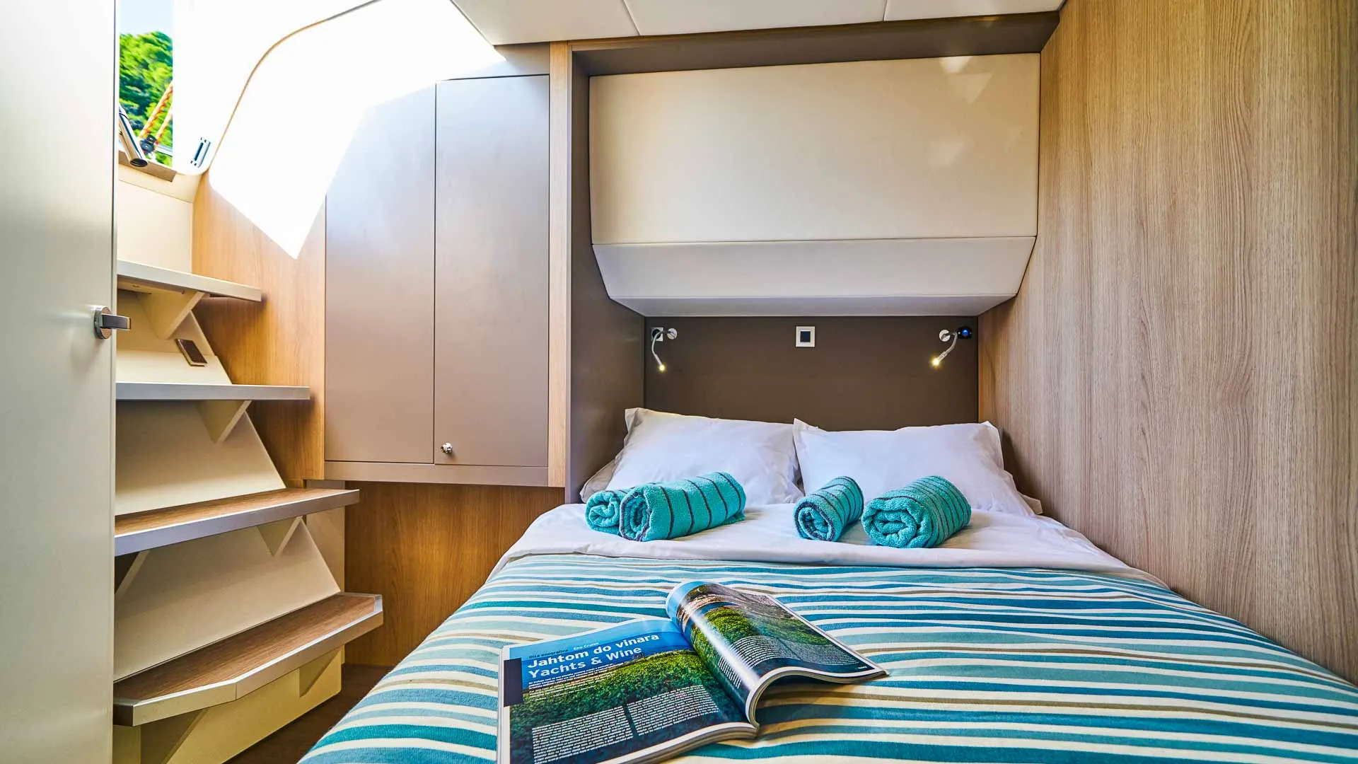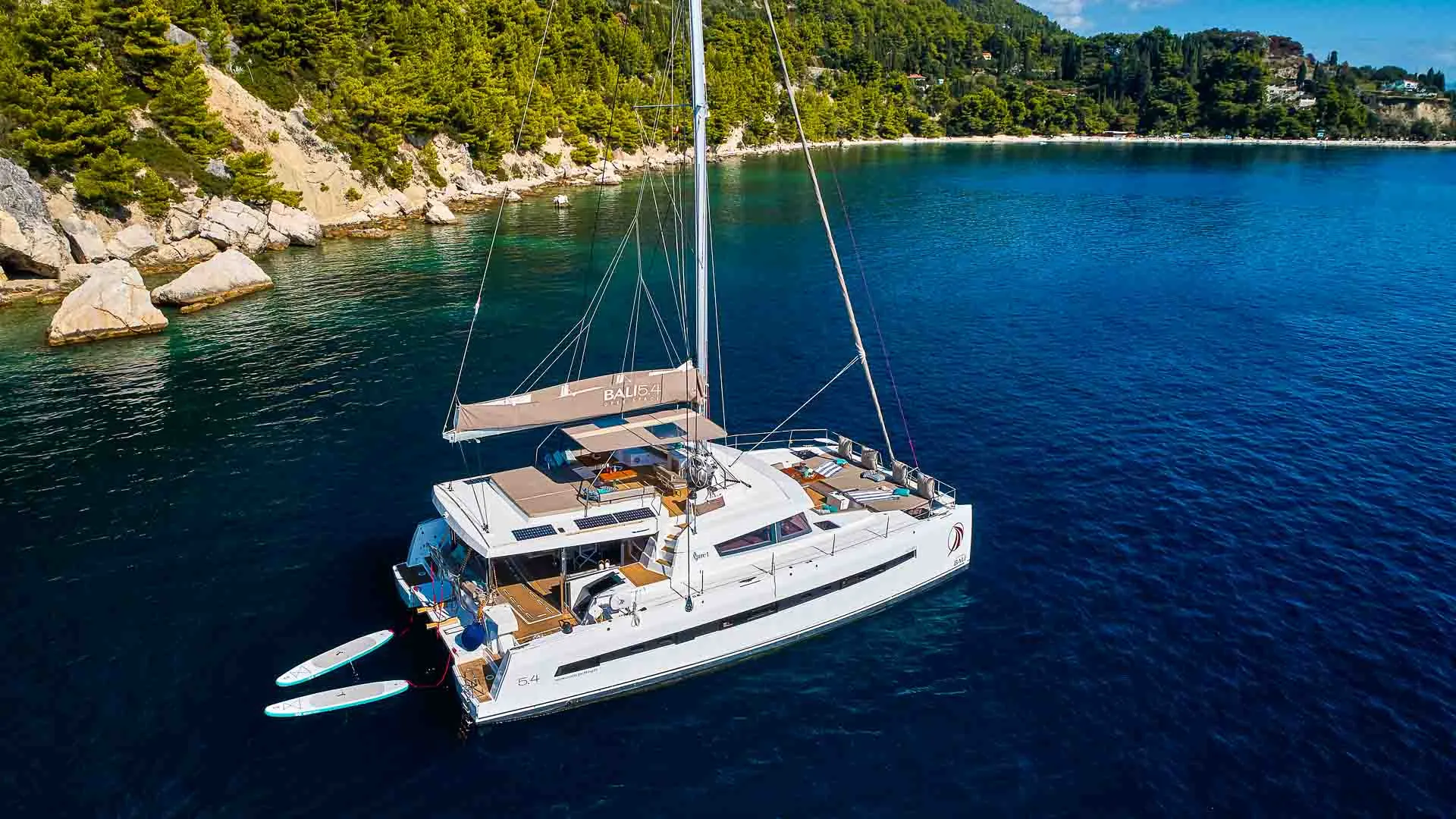 Bali 5.4 jest zaprojektowany, aby pomieścić grupę 12 gości w sześciu kabinach (pięć dwuosobowych, jedna z łóżkiem piętrowym) oraz dedykowaną załogę składającą się z dwóch osób. Ten luksusowy katamaran Bali zapewnia wyjątkowy poziom samowystarczalności.