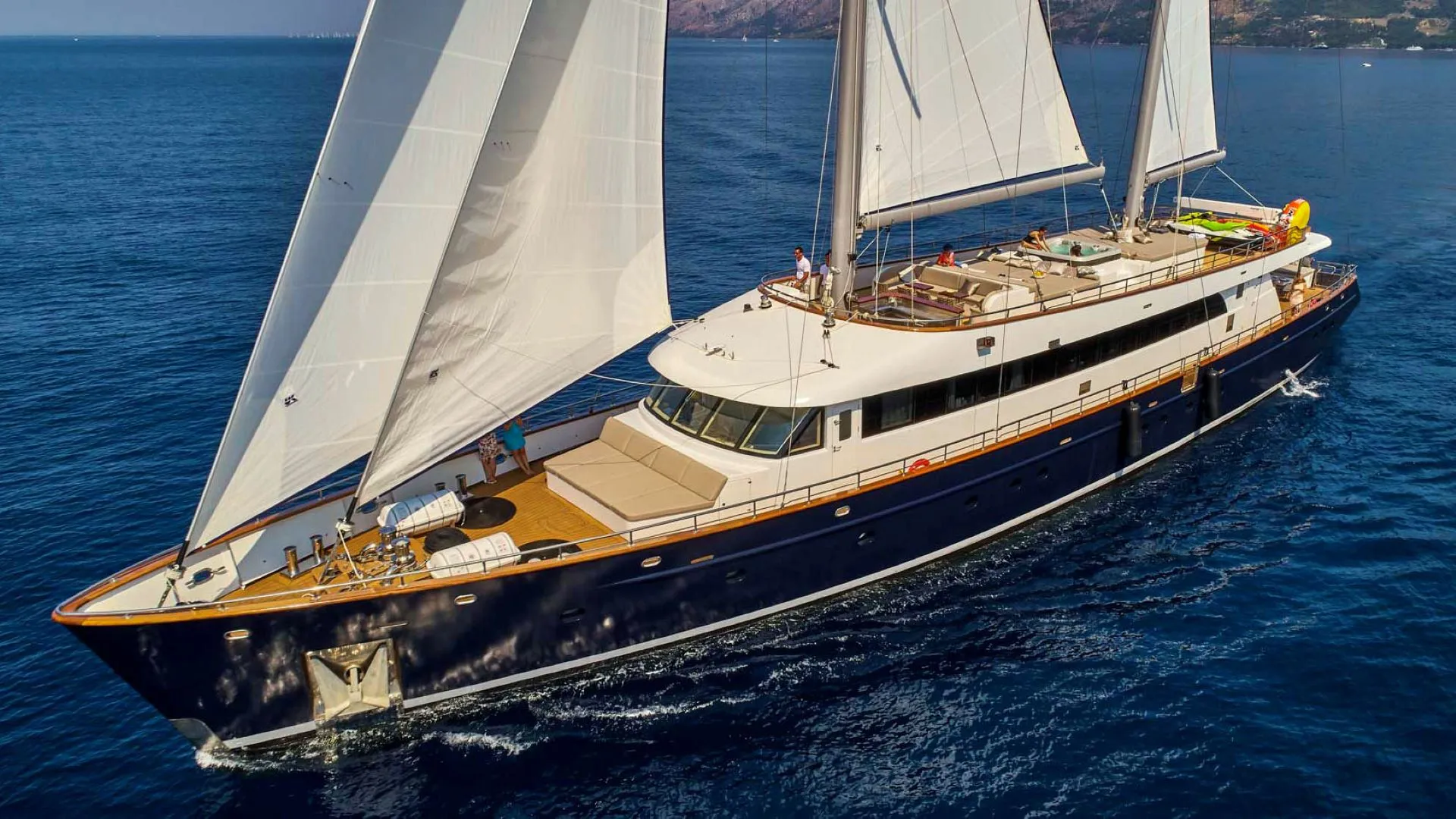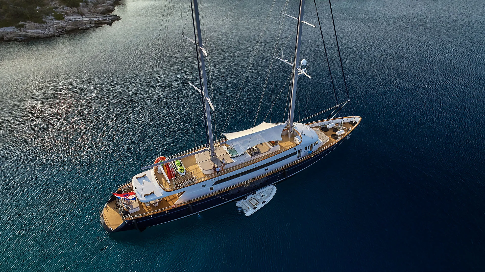 Luksusowy jacht żaglowy Dalmatino doskonale łączy nowoczesny luksus z tradycyjnymi cechami. Ten imponujący jacht z niebieskim kadłubem zapewni niezapomniane chwile rejsu dla maksymalnie 12 gości. Profesjonalna i troskliwa załoga doda królewskiego smaku Twojej adriatyckiej przygodzie żeglarskiej na jachcie Dalmatino.