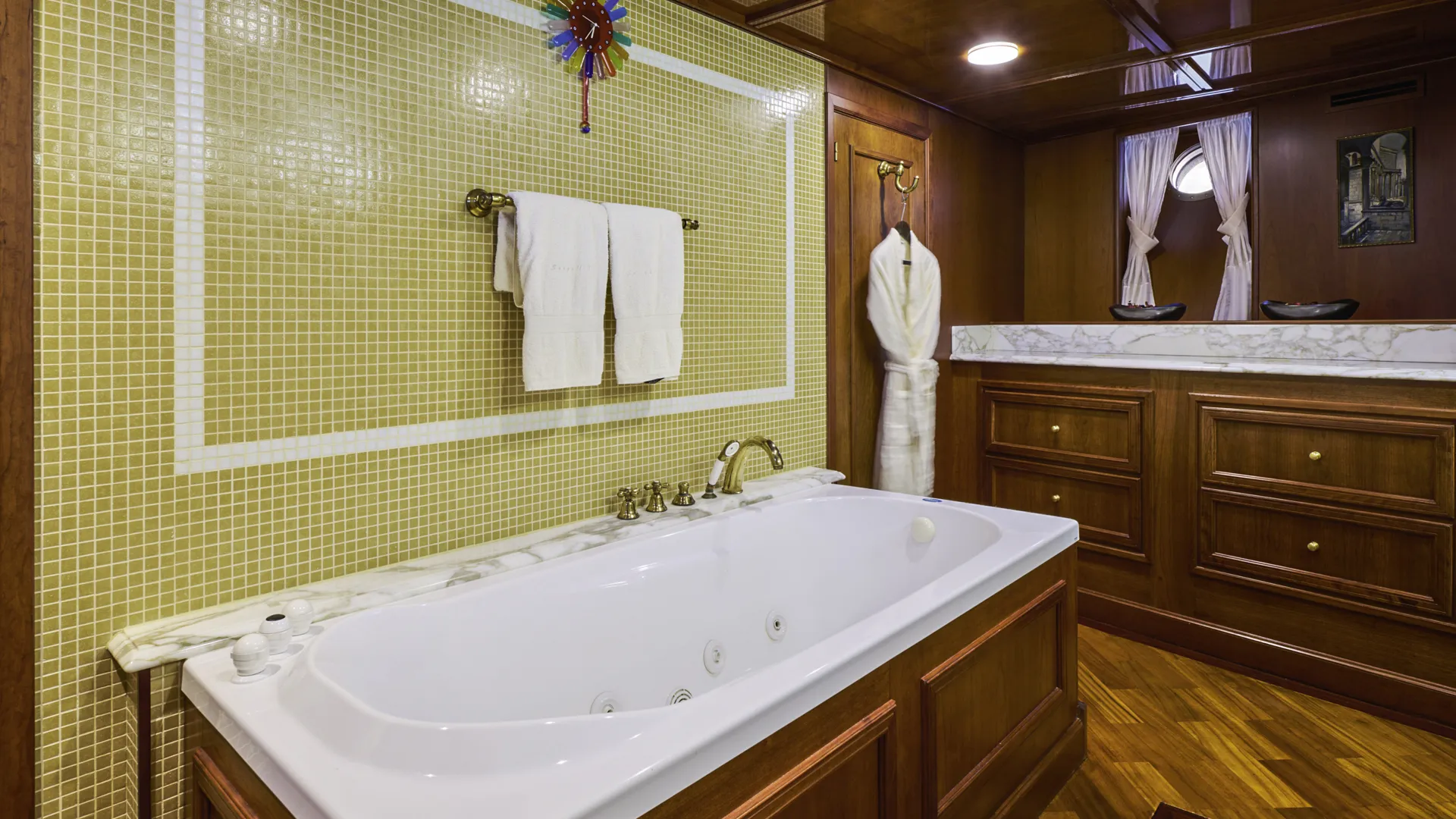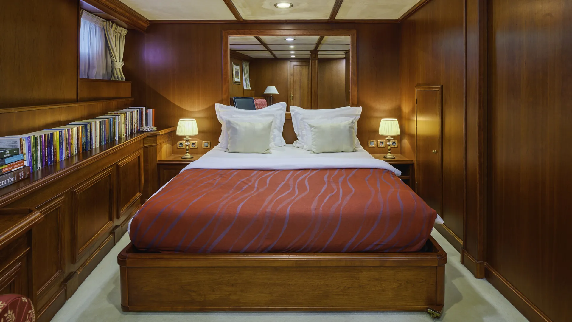 Górny pokład tego pięknego klasycznego jachtu oferuje wspaniałą klasyczną jadalnię, imponujący salon wzbogacony sofami Chesterfield oraz bar dla dżentelmenów. W rzeczy samej, Seagull to idealny jacht czarterowy dla rodziny i przyjaciół, z możliwością zakwaterowania w 5 podwójnych i 2 bliźniaczych kabinach, mieszczących do 12 gości. Z pewnością, jej układ z 7 kabinami stanowi nowoczesne dzieło sztuki.