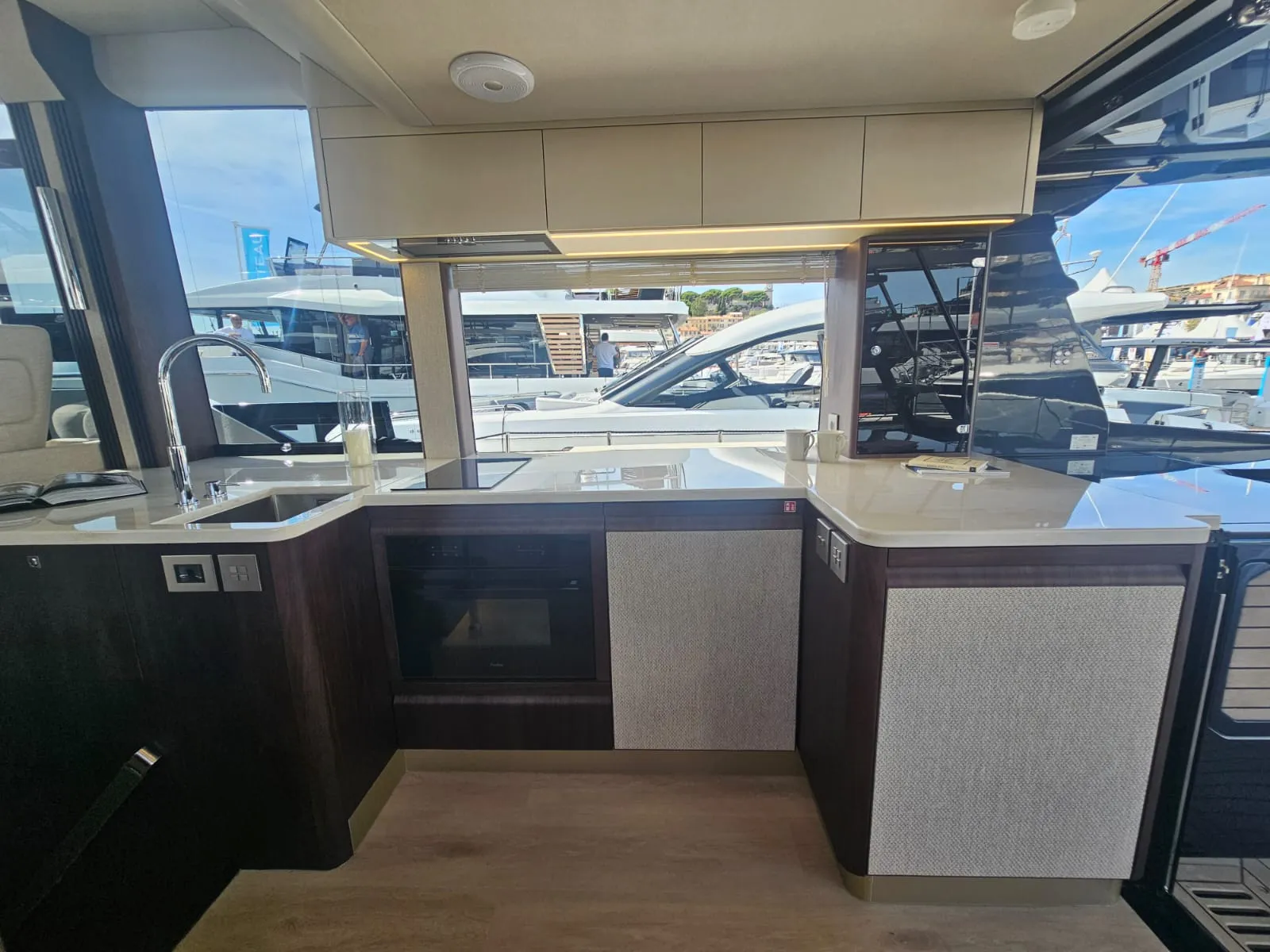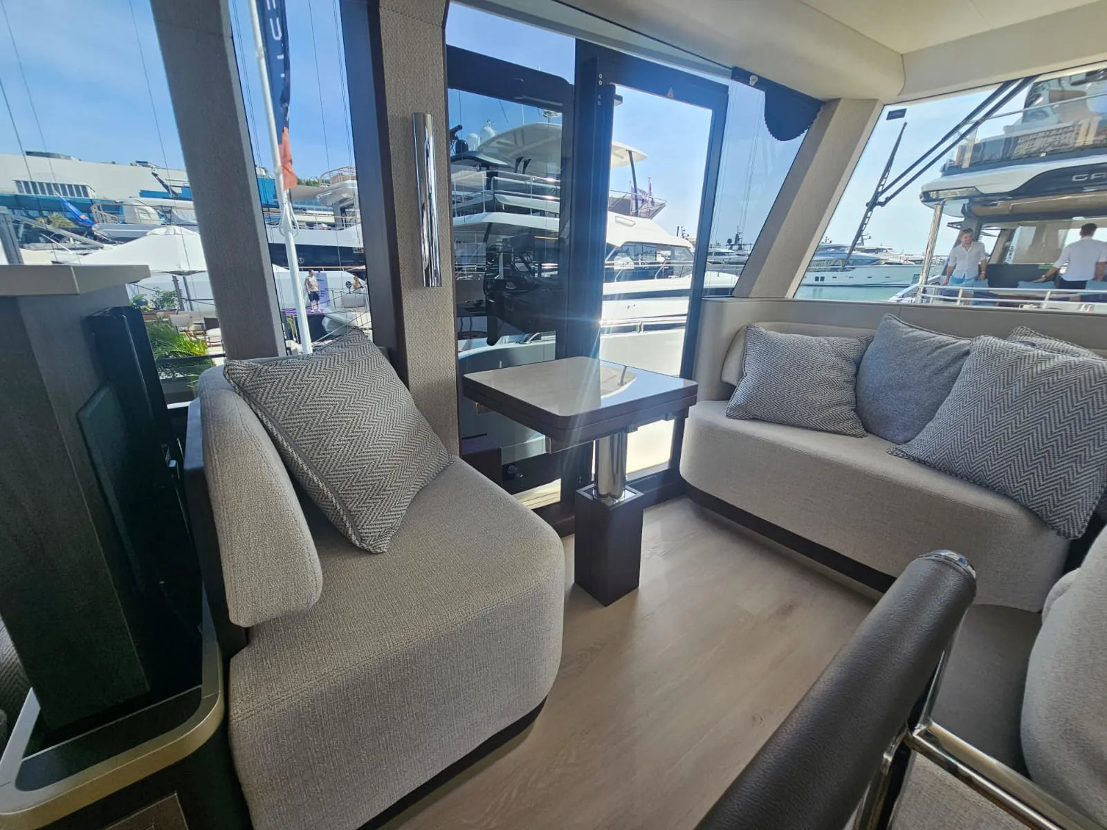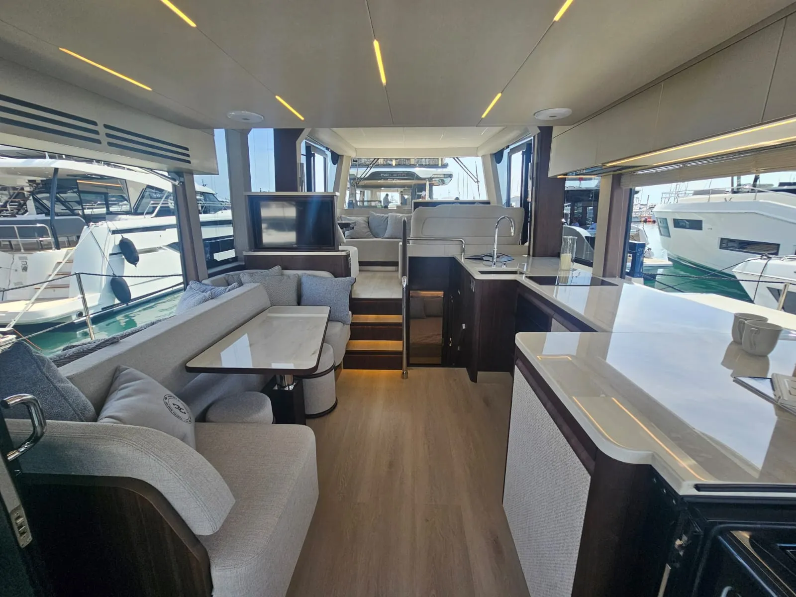 Jej superštruktúra umiestnená v prednej časti odhaľuje rozsiahlu, multifunkčnú zadnú palubu — priestor pre dobrodružné vybavenie alebo pokojnú vonkajšiu lounge. Na vrchu sa rozľahlý flybridge stáva spoločenským srdcom s U-tvarovanou pohovkou, vyhradenou jedálenskou zónou, mokrým barom s grilom a predným kormidlom, ktoré udržuje kapitána v konverzácii.