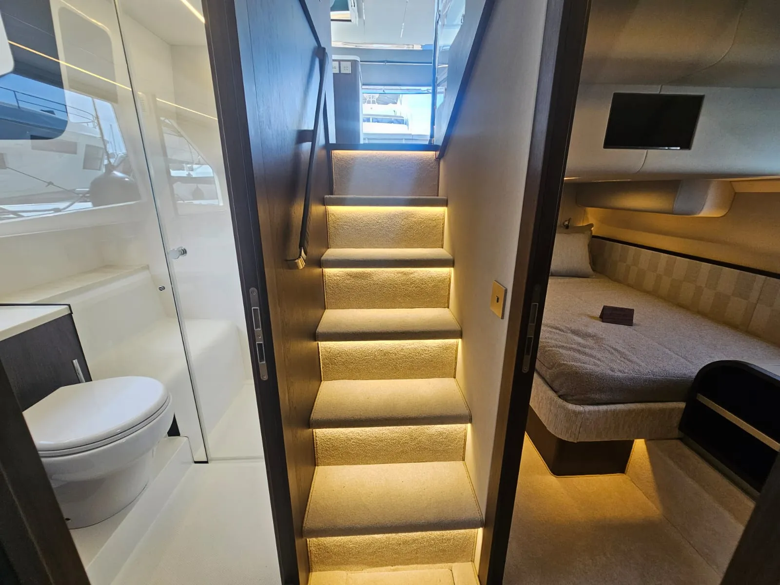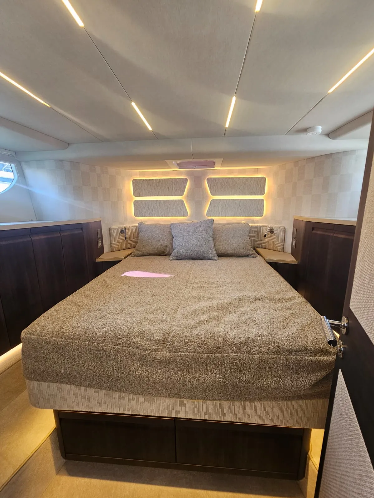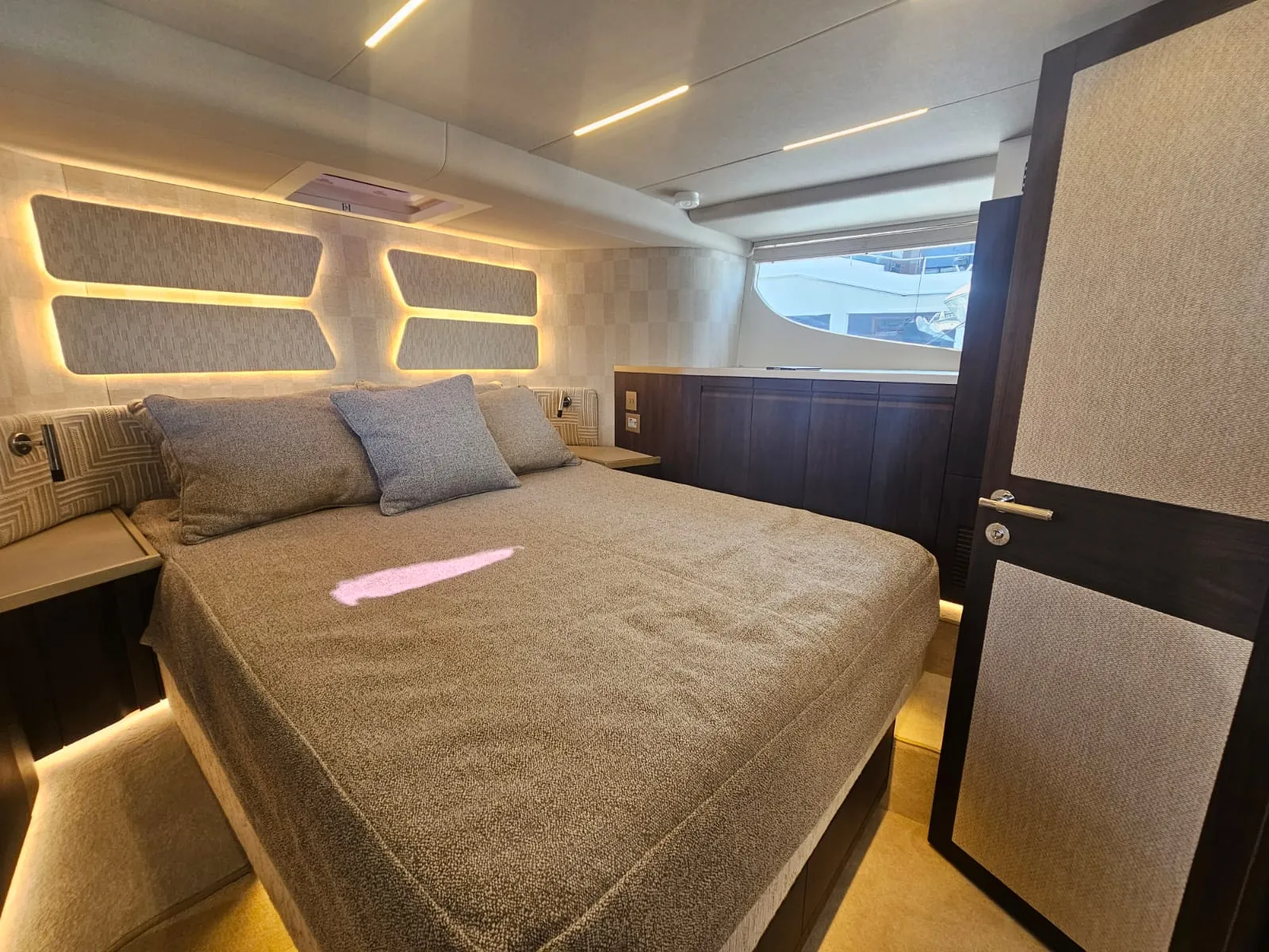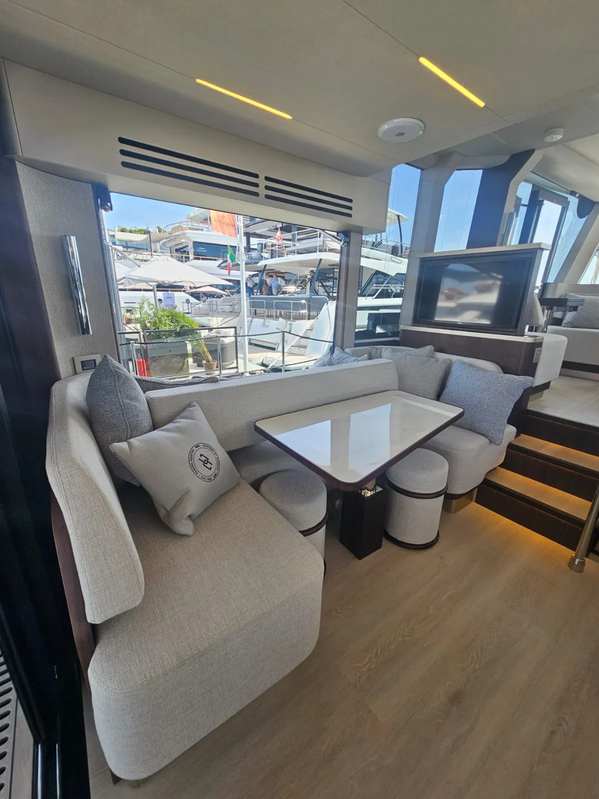 Jej superštruktúra umiestnená v prednej časti odhaľuje rozsiahlu, multifunkčnú zadnú palubu — priestor pre dobrodružné vybavenie alebo pokojnú vonkajšiu lounge. Na vrchu sa rozľahlý flybridge stáva spoločenským srdcom s U-tvarovanou pohovkou, vyhradenou jedálenskou zónou, mokrým barom s grilom a predným kormidlom, ktoré udržuje kapitána v konverzácii.