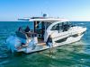 Na palube sa tento veľký víkendový čln odlišuje množstvom inteligentných, modulárnych prvkov, ktoré zvyšujú pôžitok pri kotvení aj počas plavby. Spoločenský kokpit s veľkou L-kovovou pohovkou sa mení na priestrannú opaľovaciu plochu a takmer bezproblémovo sa spája so salónom vo vnútri, zatiaľ čo bočná plavecká plošina vytvára skutočnú terasu s výhľadom na more na úrovni vody. Vpredu priestranné lehátko s nastaviteľným operadlom a voliteľnou slnečnou clonou ponúka súkromné útočisko, a široké chodníky plus vysoké bočné steny zaisťujú bezpečný pohyb po lodi pre všetkých na palube.