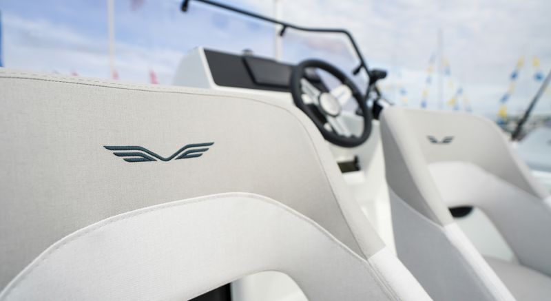Pod rozľahlou prednou palubou kabína inteligentne využíva objem trupu, poskytuje dvojité lôžko, úložný priestor a námorné toalety, pričom nábytok môže byť voliteľne vybavený chladničkou. Premyslené detaily, ako je úroveň výbavy PILOT EDITION s charakteristickou dekoráciou trupu, špeciálnym čalúnením, čiernymi zábradliami, LED osvetlením kokpitu, sedadlami s opierkami a zahrnutou prednou opalovacou plochou, ďalej zvyšujú komfort a estetiku, čím vytvárajú kompaktný, prepojený a vysoko všestranný víkendový čln.