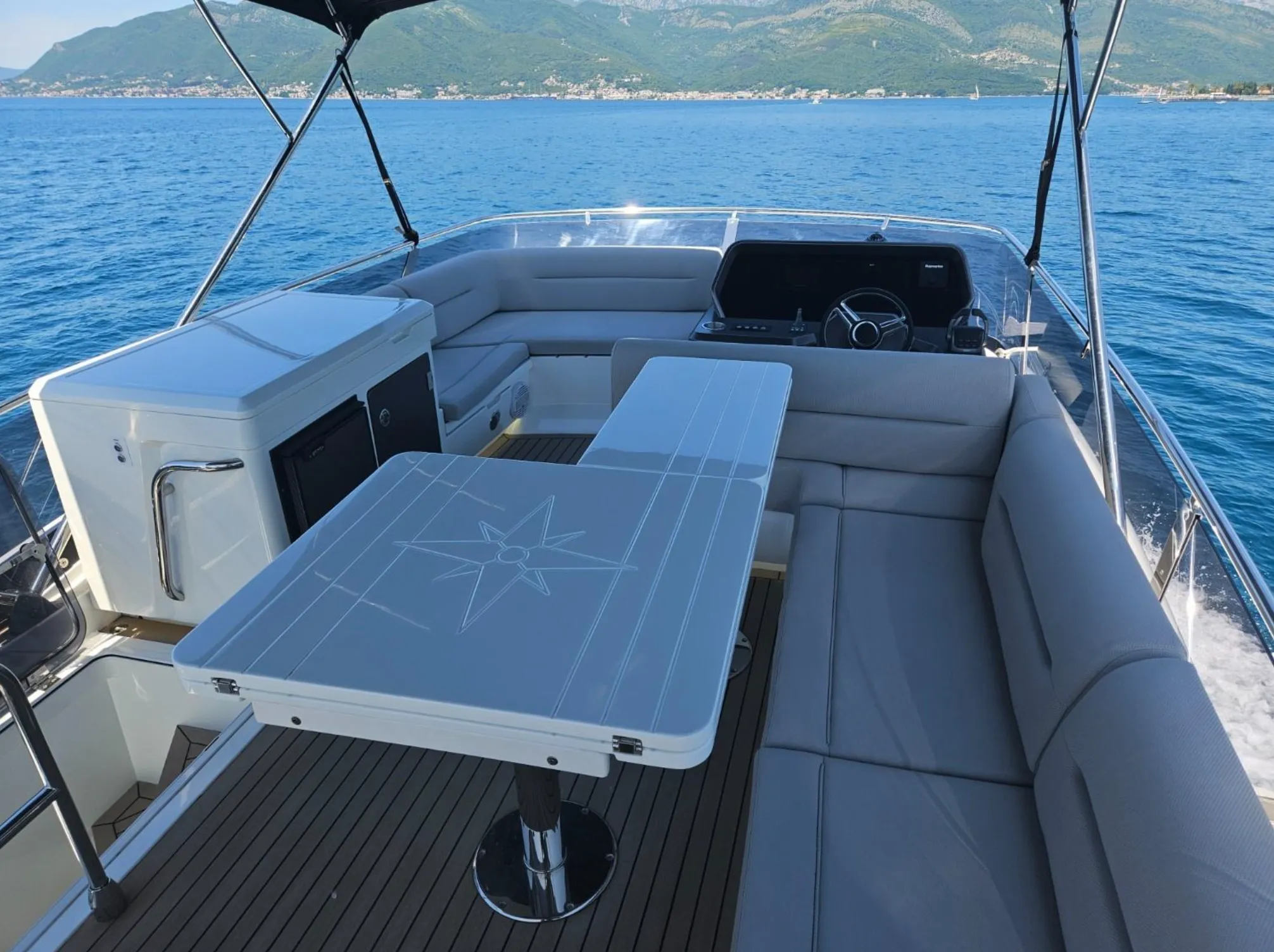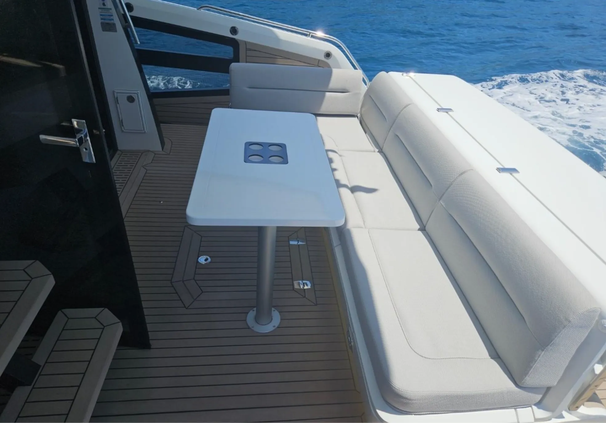 • Foldable fiberglass table in cocpit and flybridge
