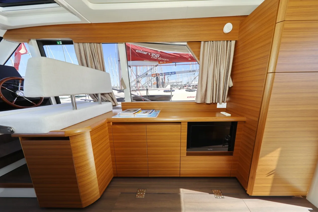 - Furniture in Golden Teak with dark laminated salon floor